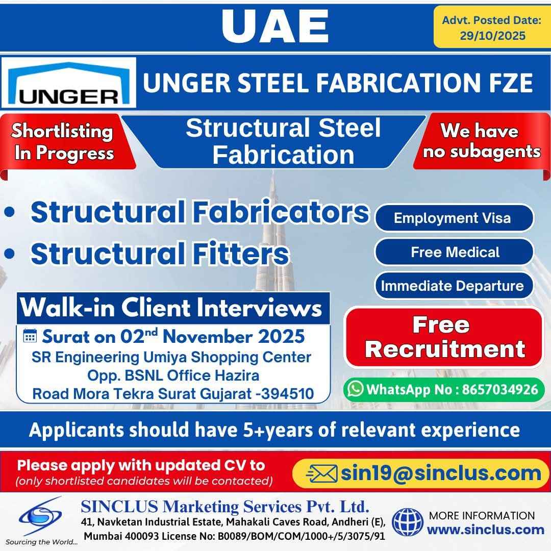 Interview 25th July JOB'S A leading steel fabrication workshop UAE