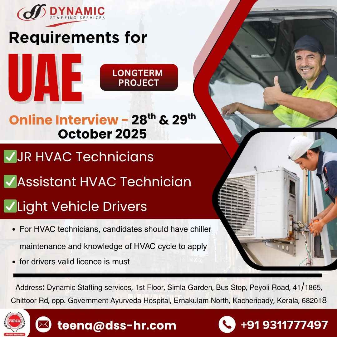 INTERVIEW ON 29TH JULY 2025 URGENT HIRING FOR TECHNICIANS UAE