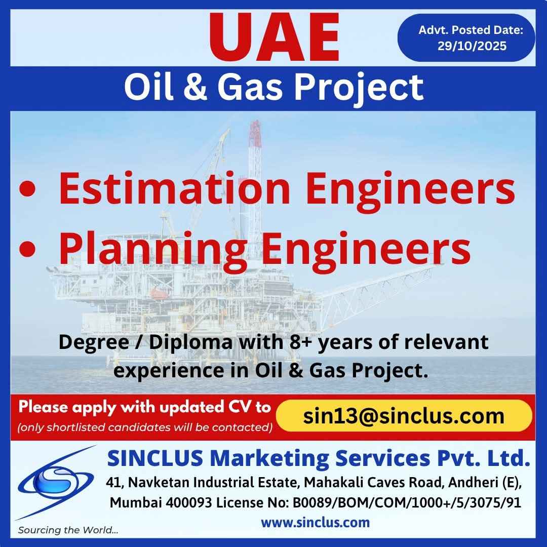 UAE: An International Company Requires For Their Petro-Chemical & Oil & Gas Construction Project
