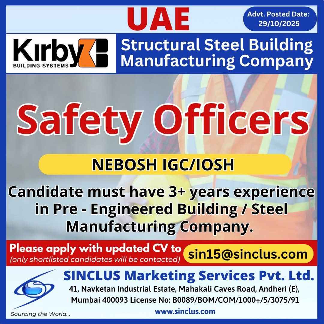URGENTLY REQUIRED FOR A FIRE & SAFETY COMPANY IN UAE