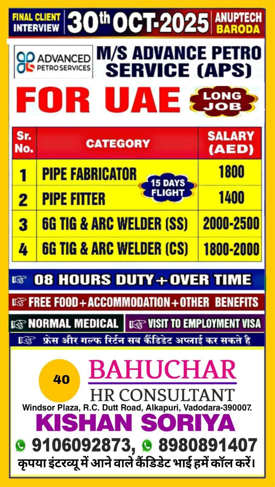 URGENT REQUIREMENT FOR UAE (An ADNOC Project)