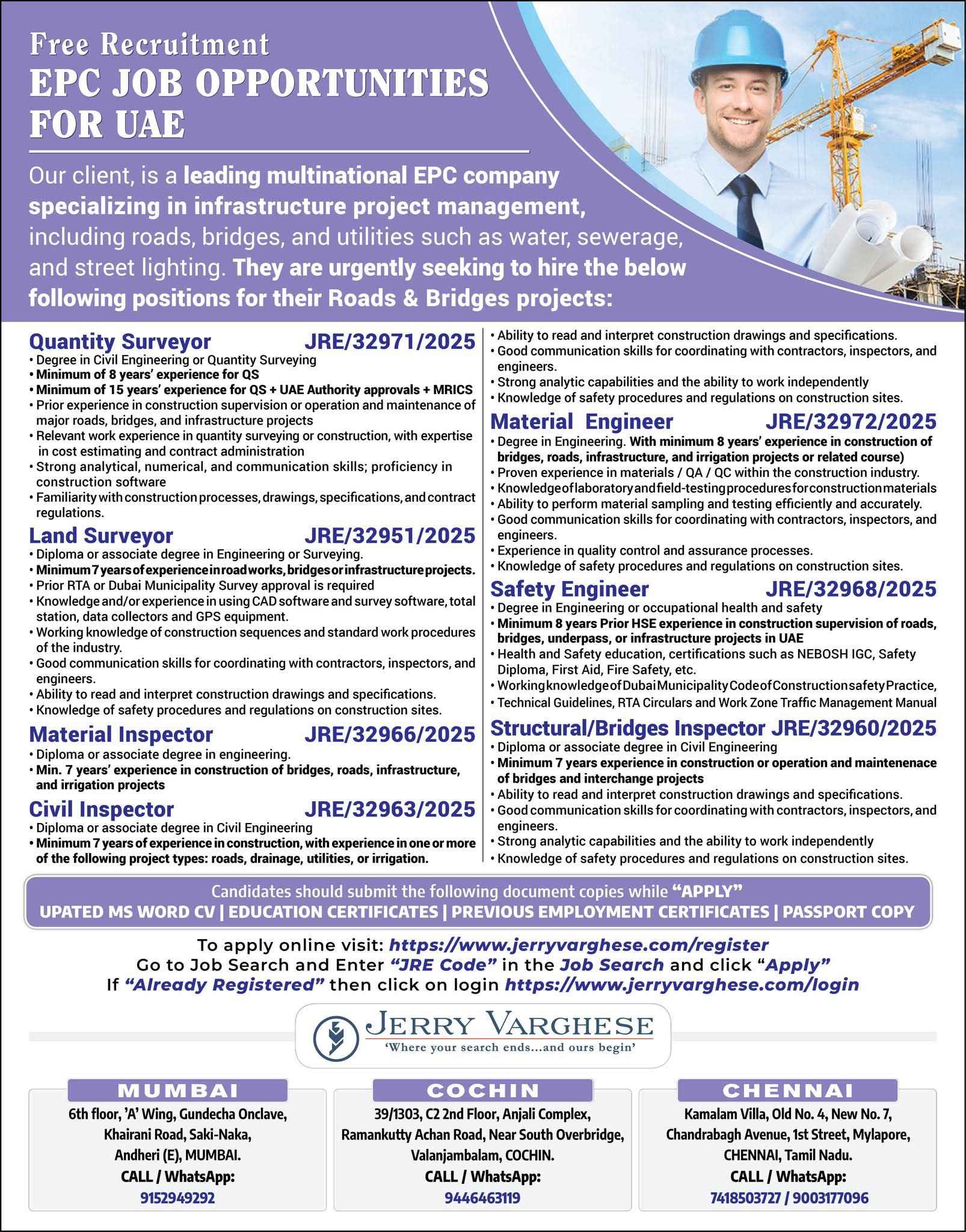 FREE RECRUITMENT | EPC JOB OPPORTUNITIES FOR UAE
