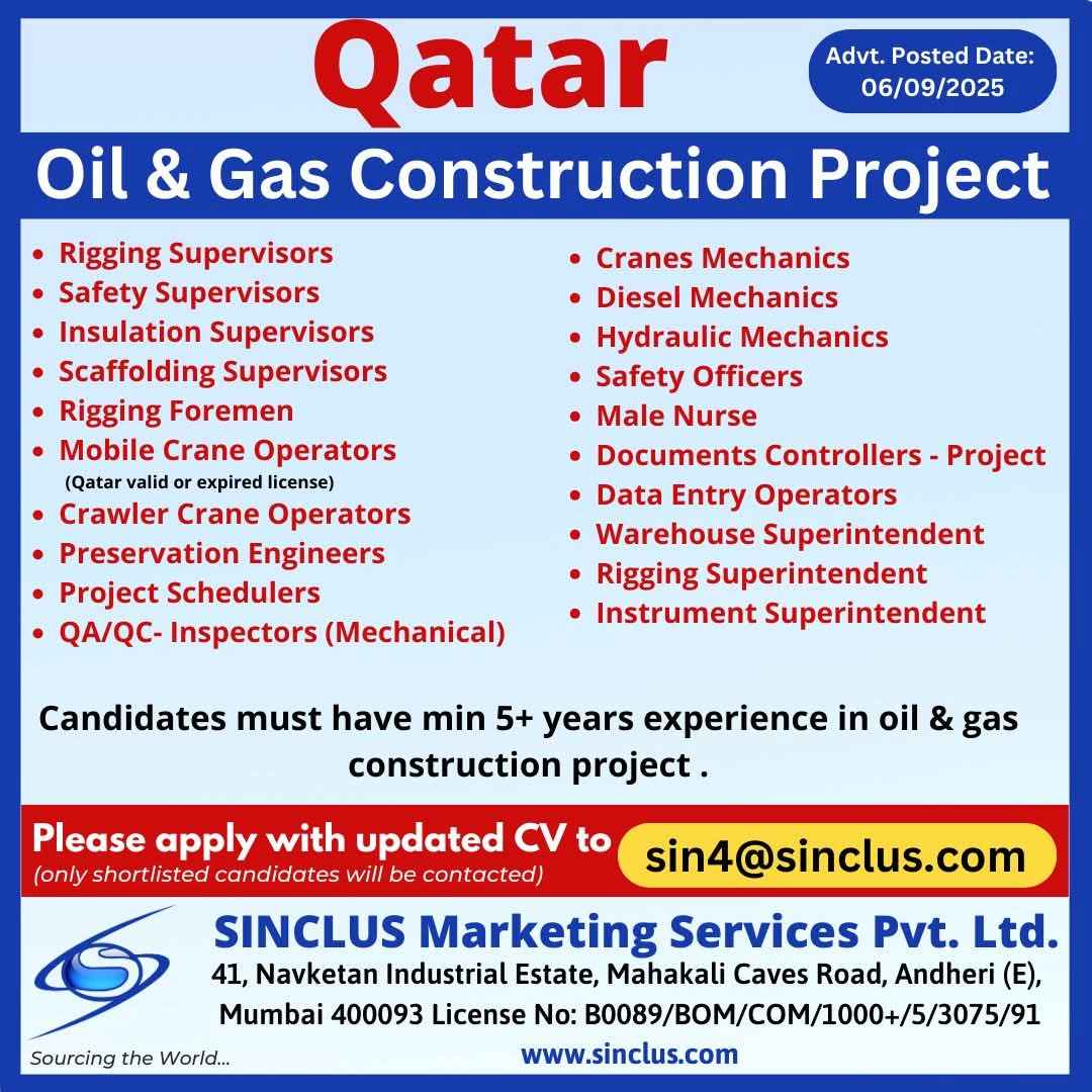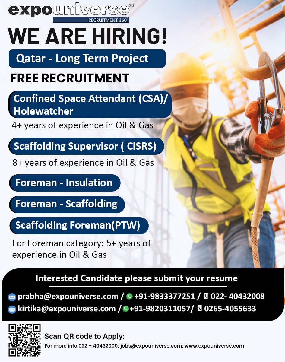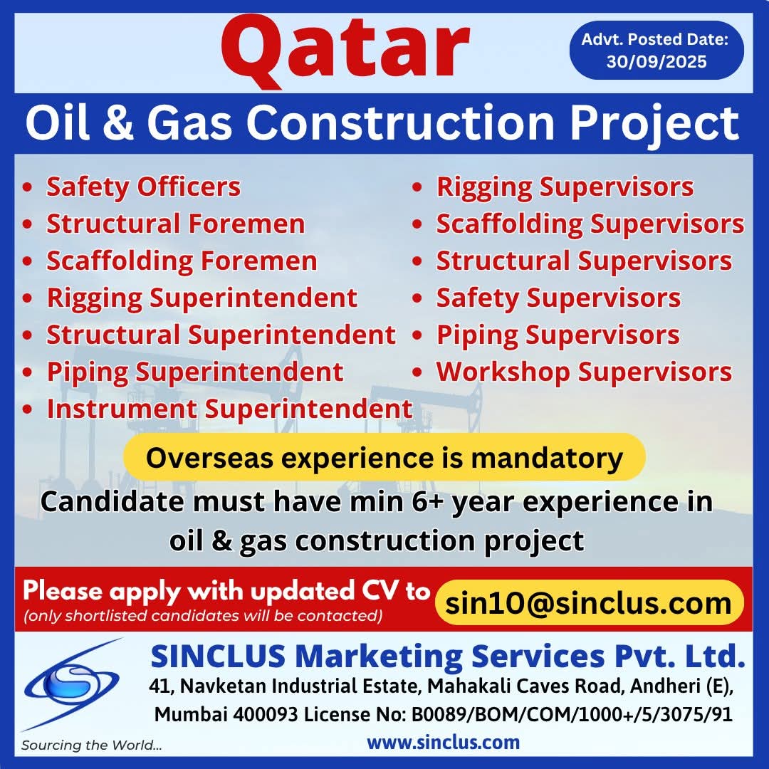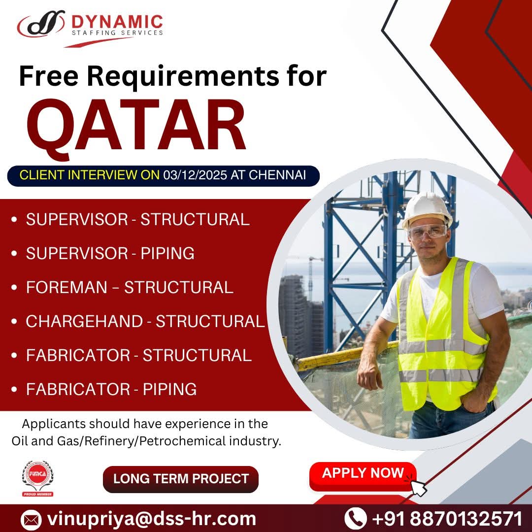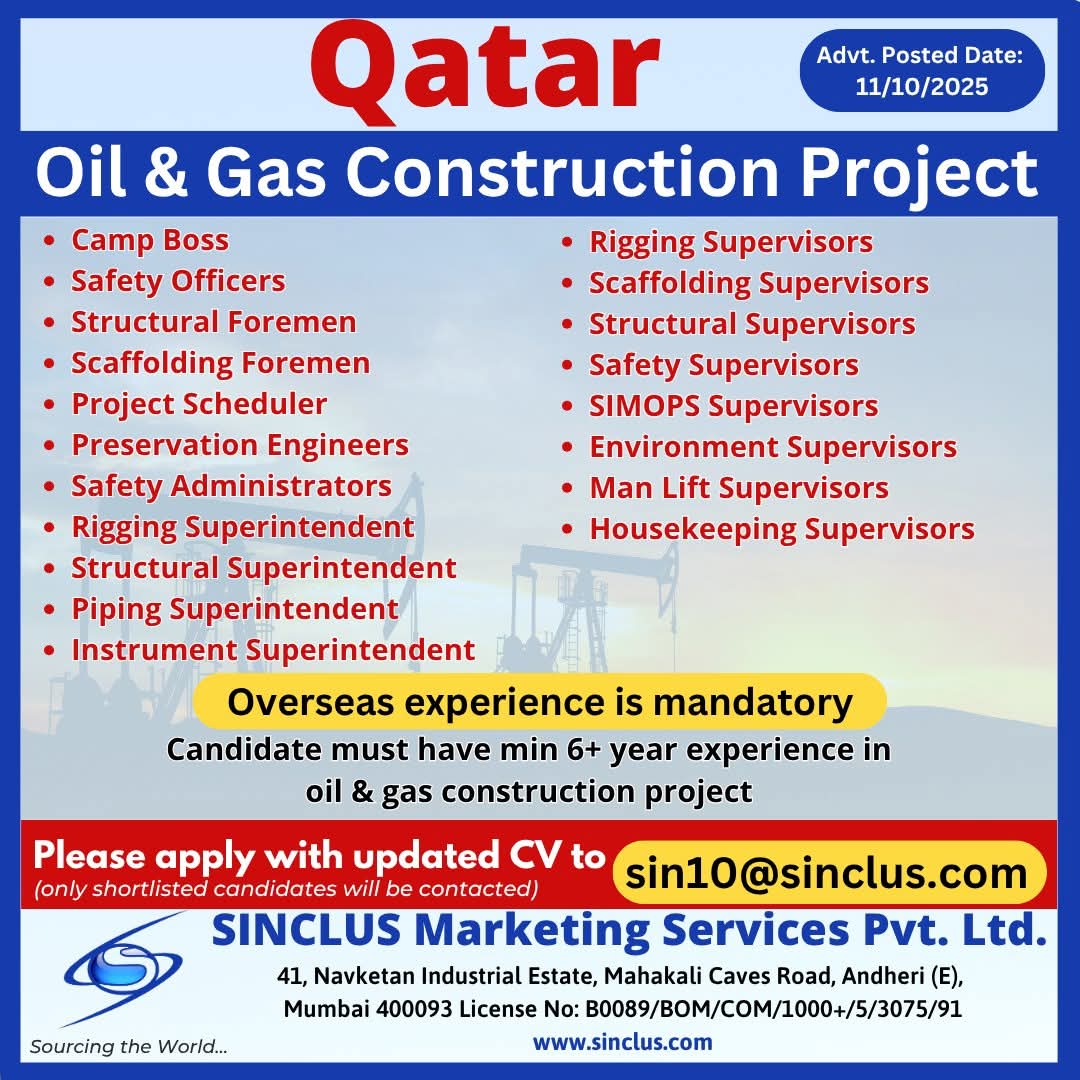 Urgent Requirement For Qatar Oil & gas construction