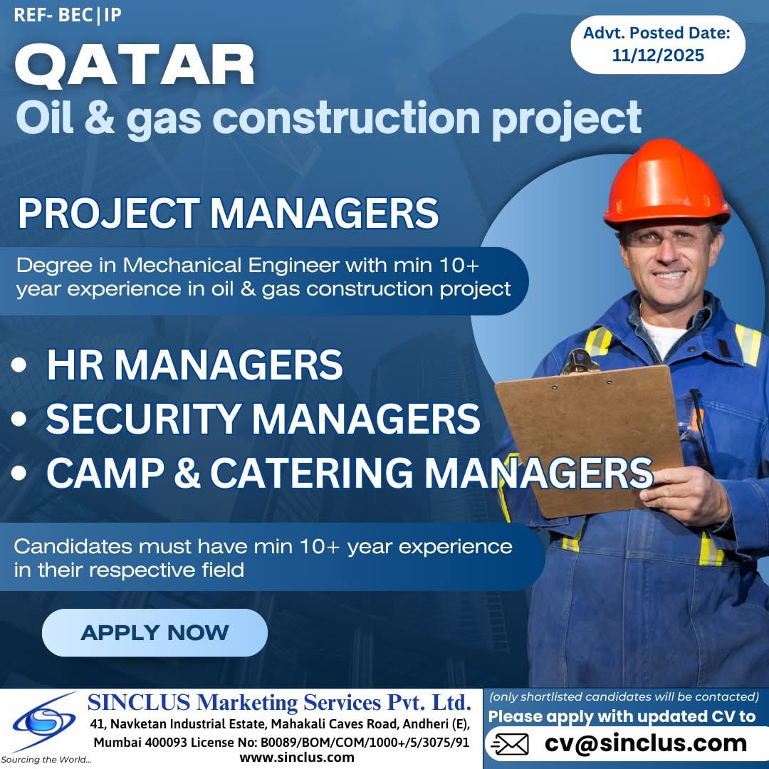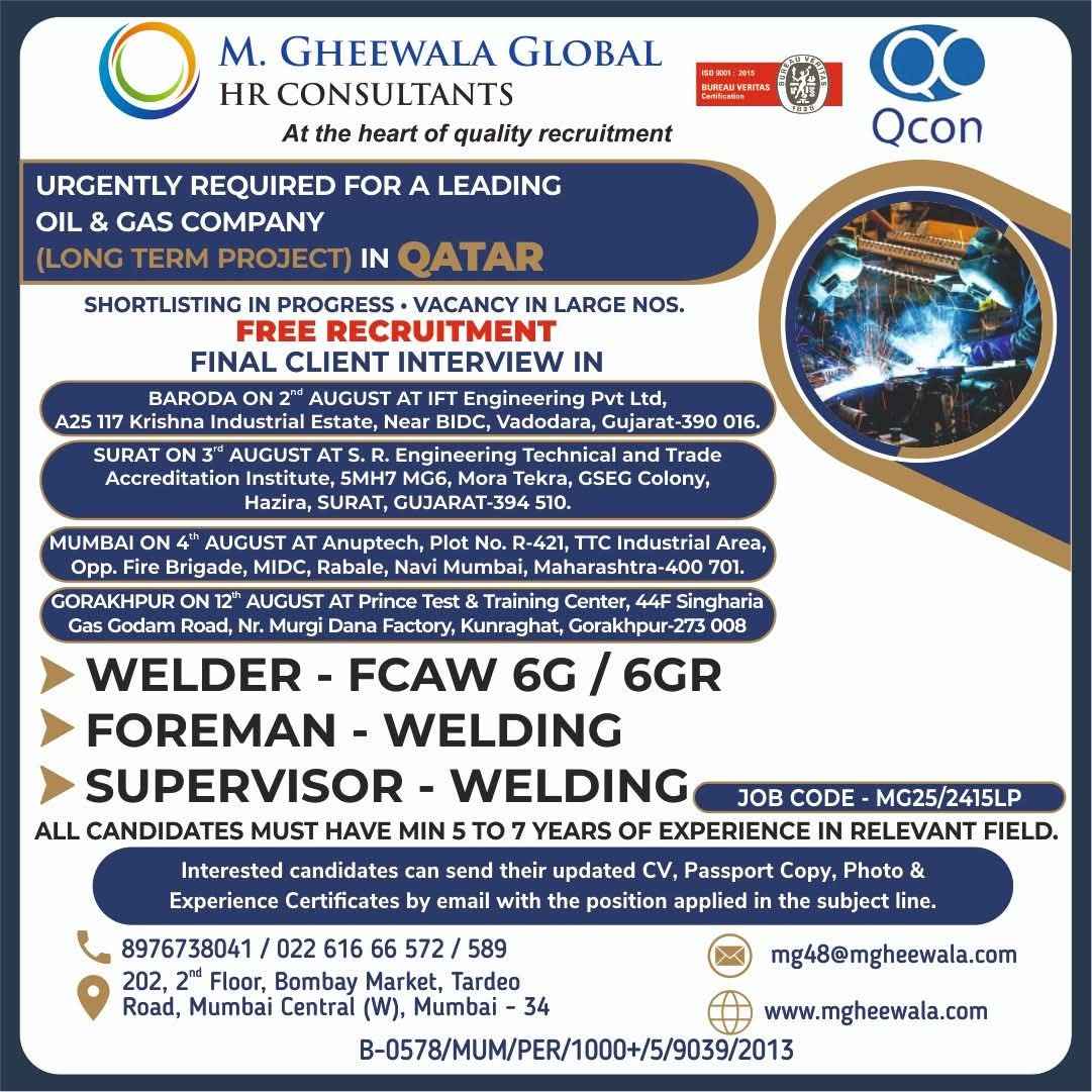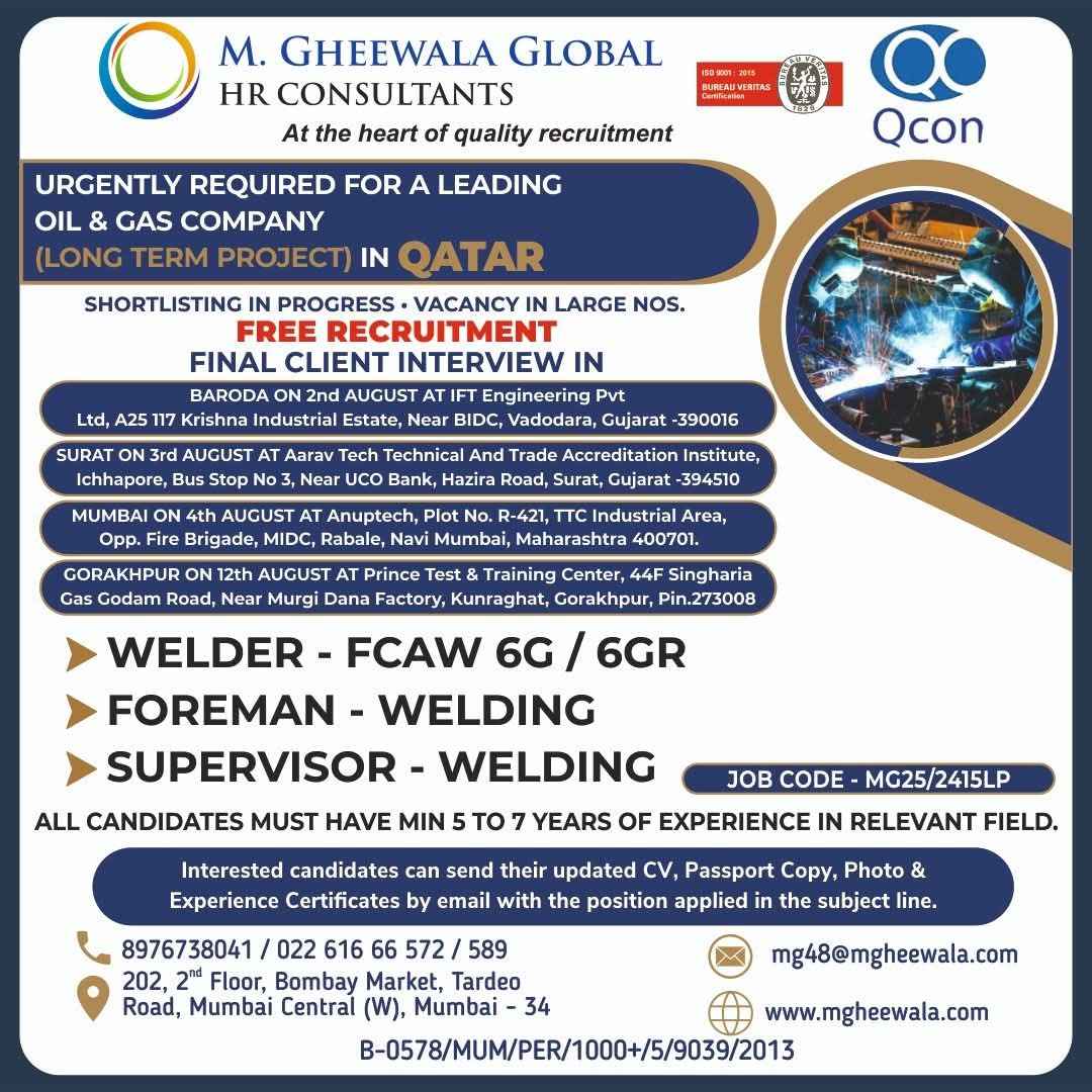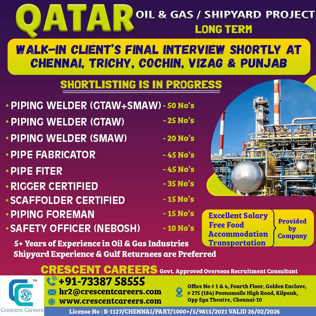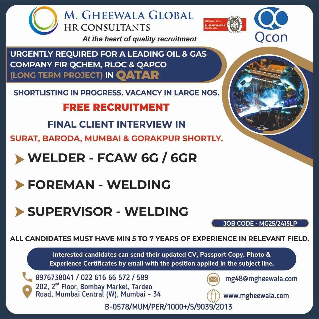 Urgent Requirement For Qatar Oil & gas construction