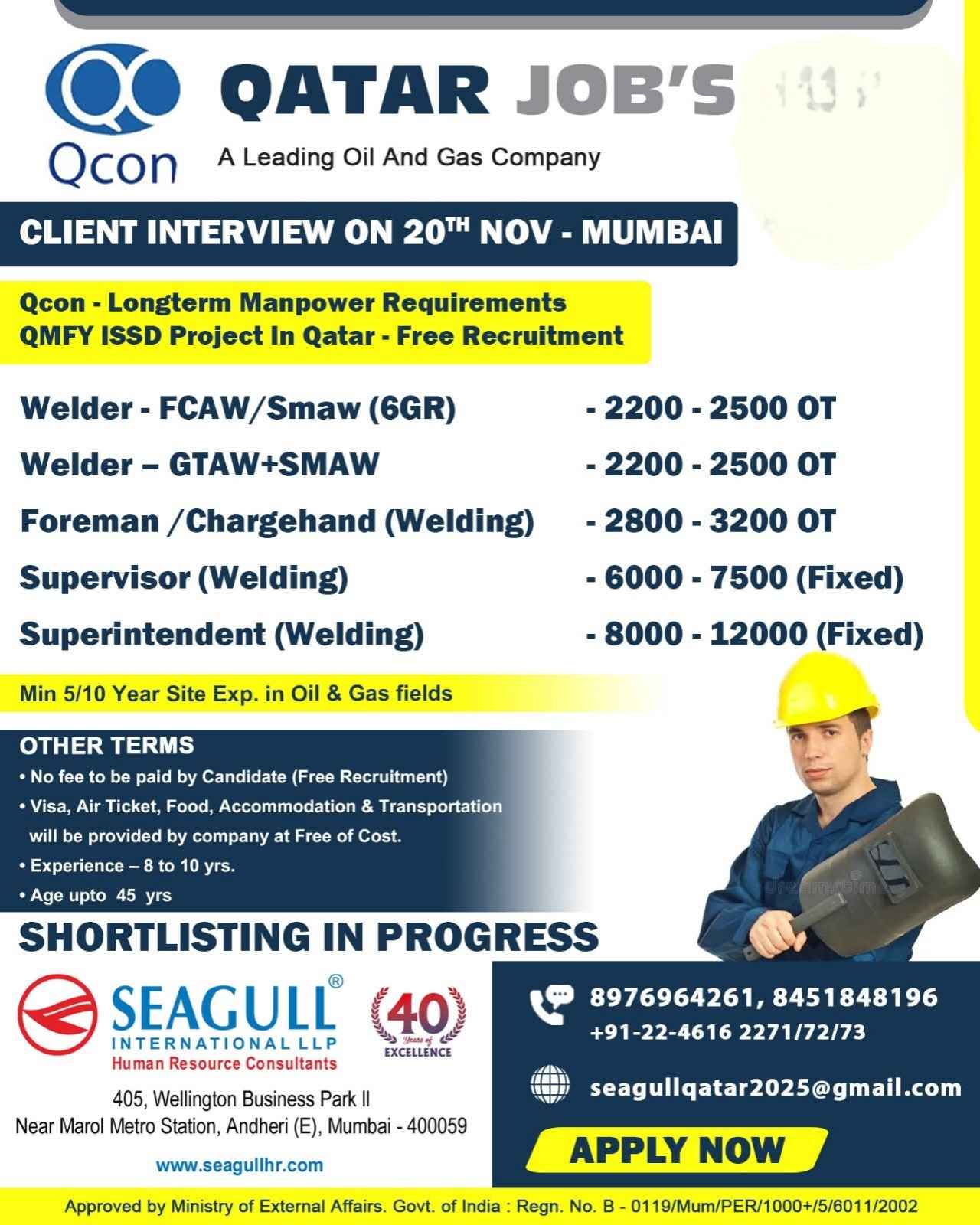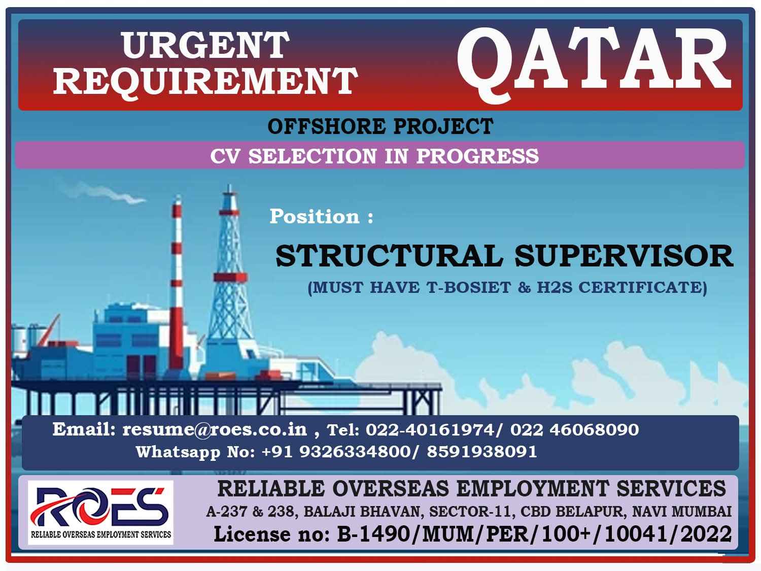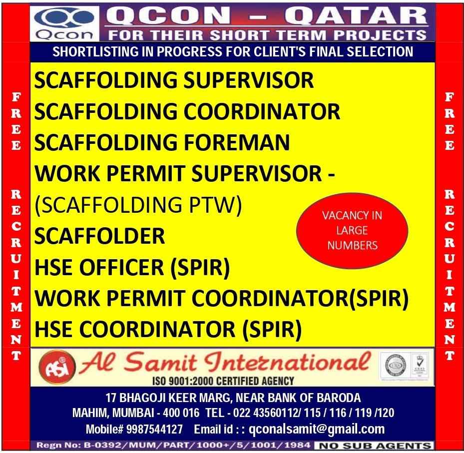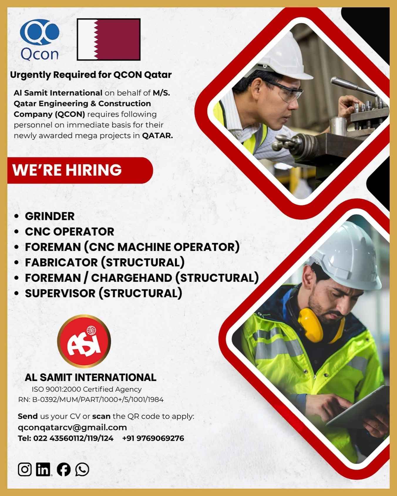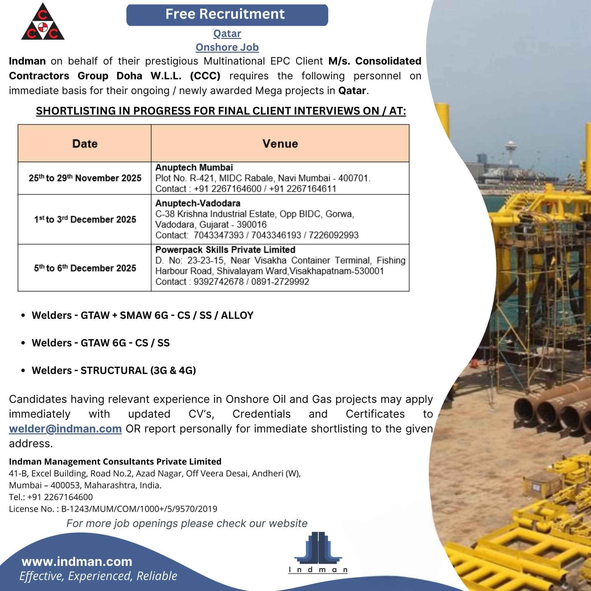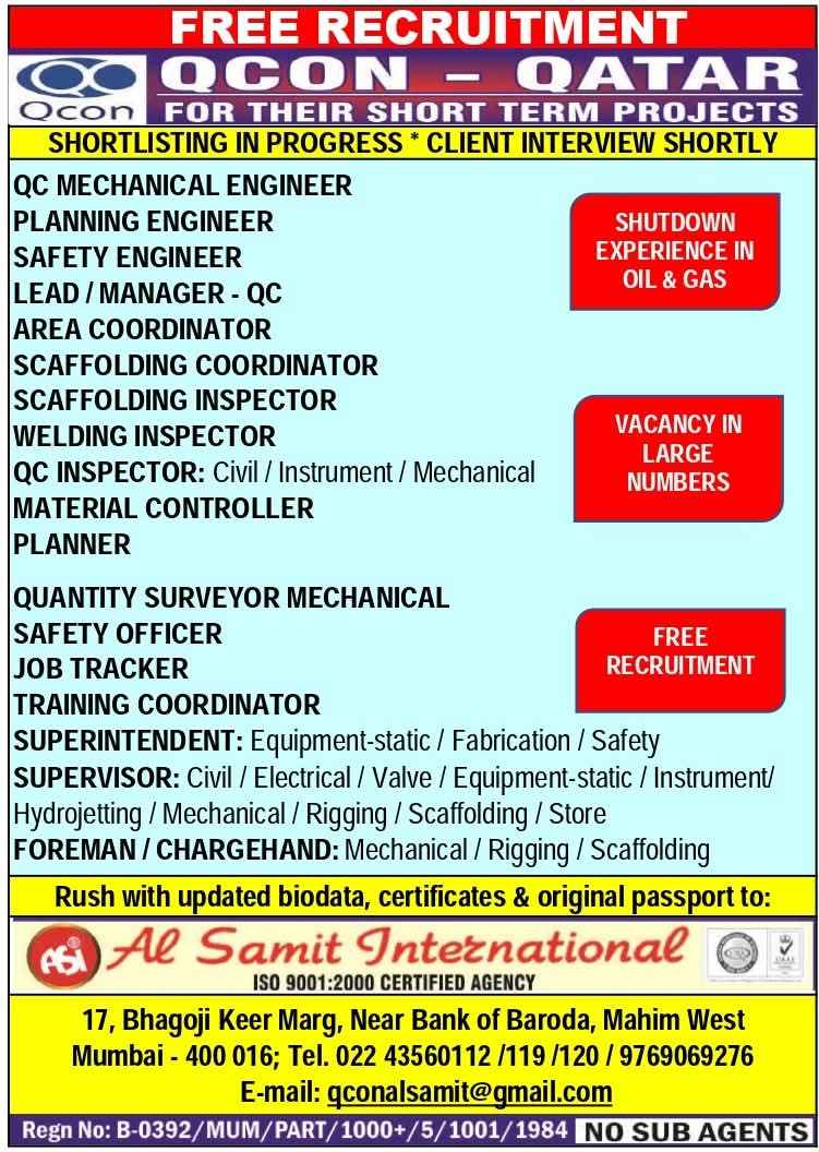 Urgent Requirement For Qatar Oil & gas construction