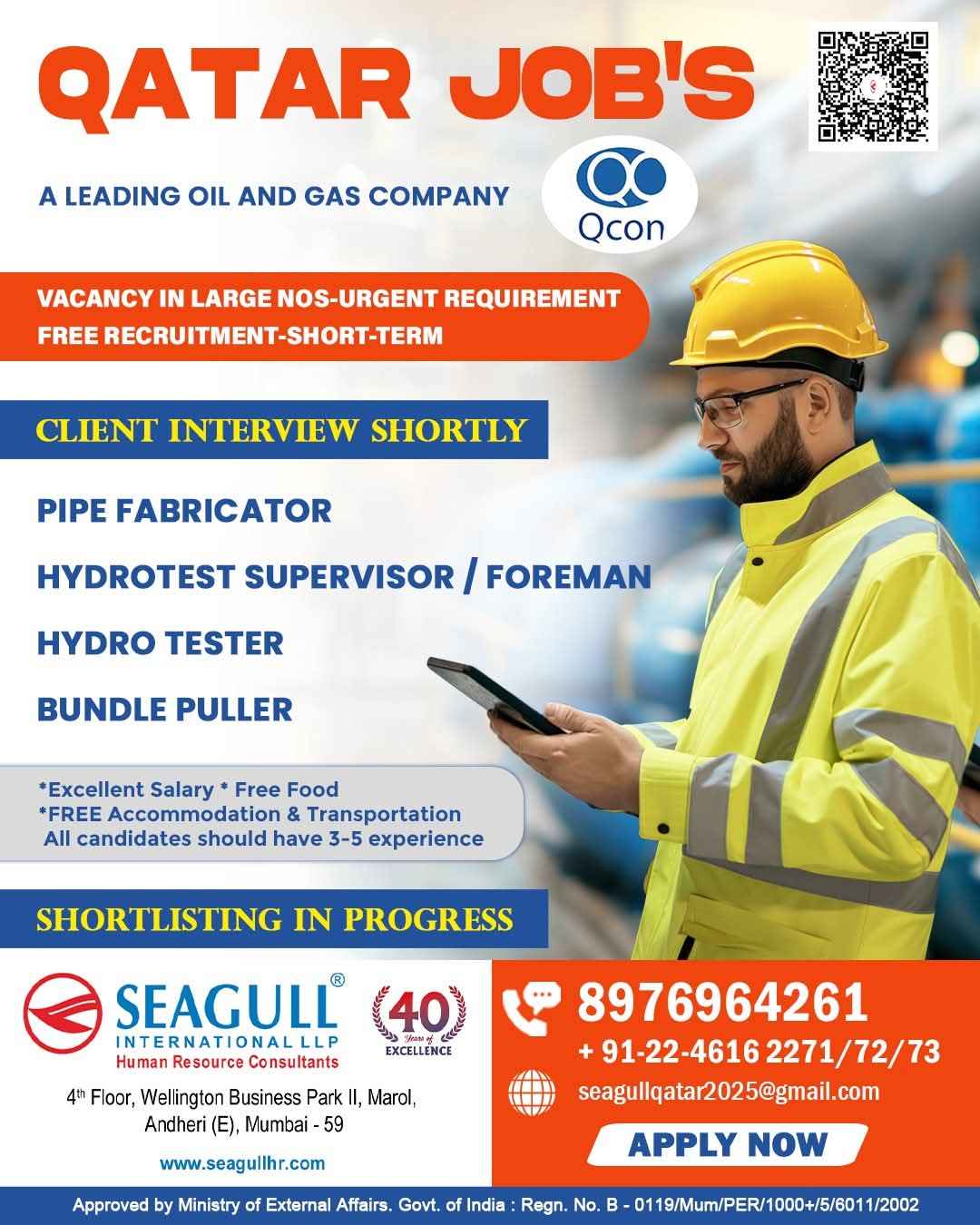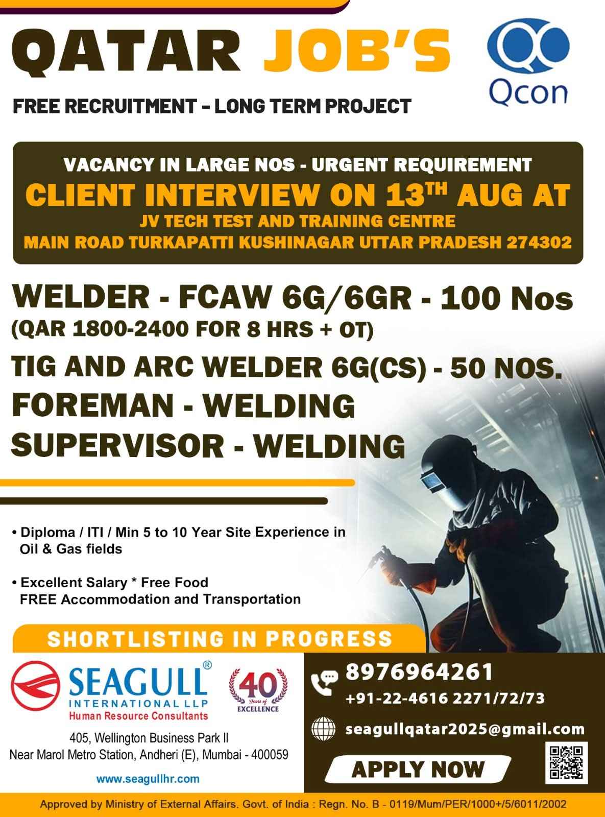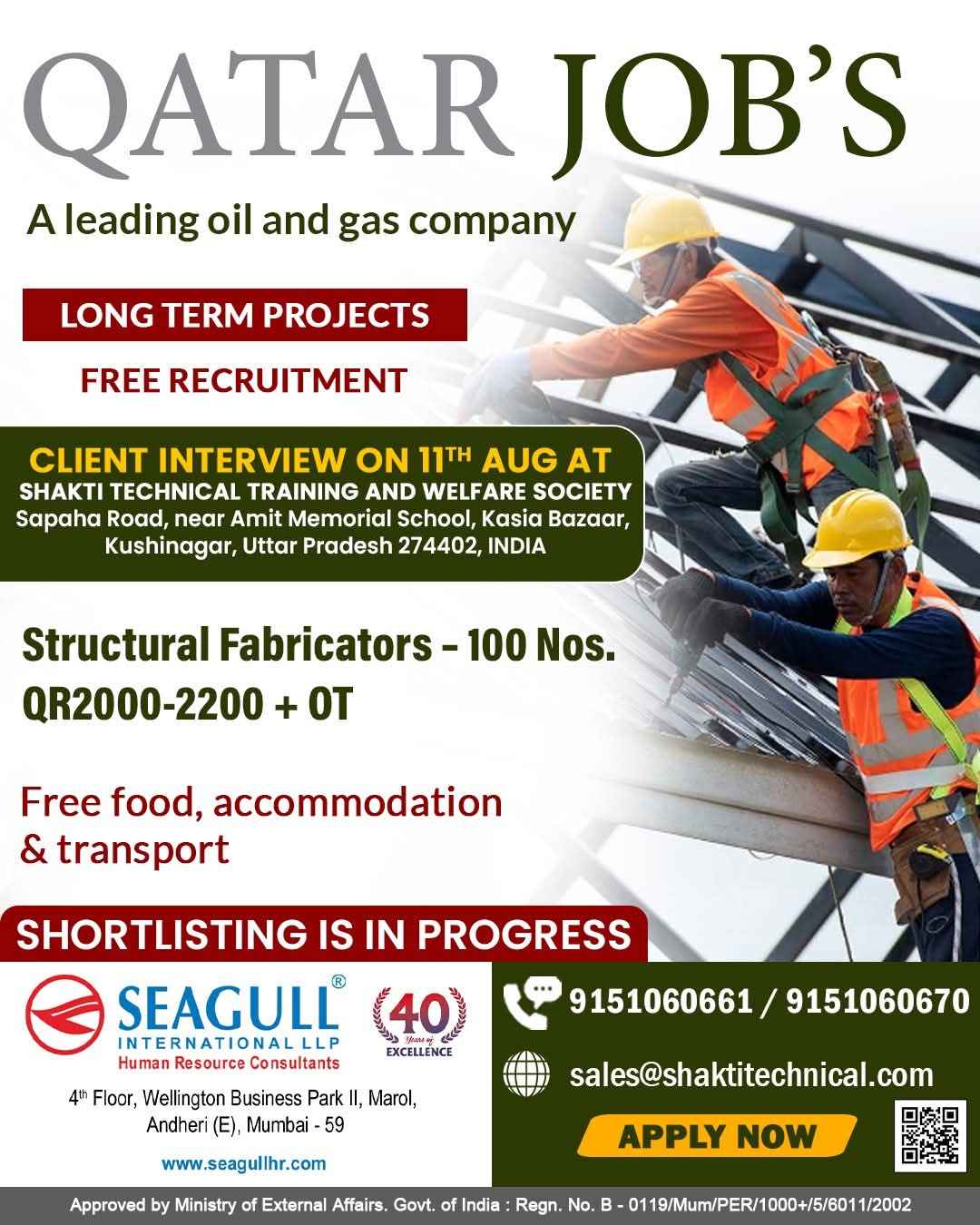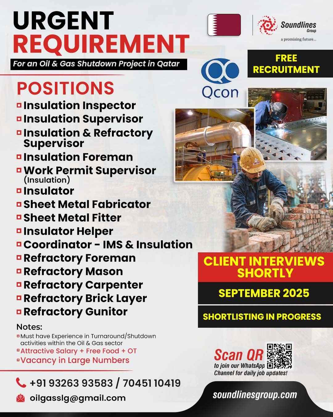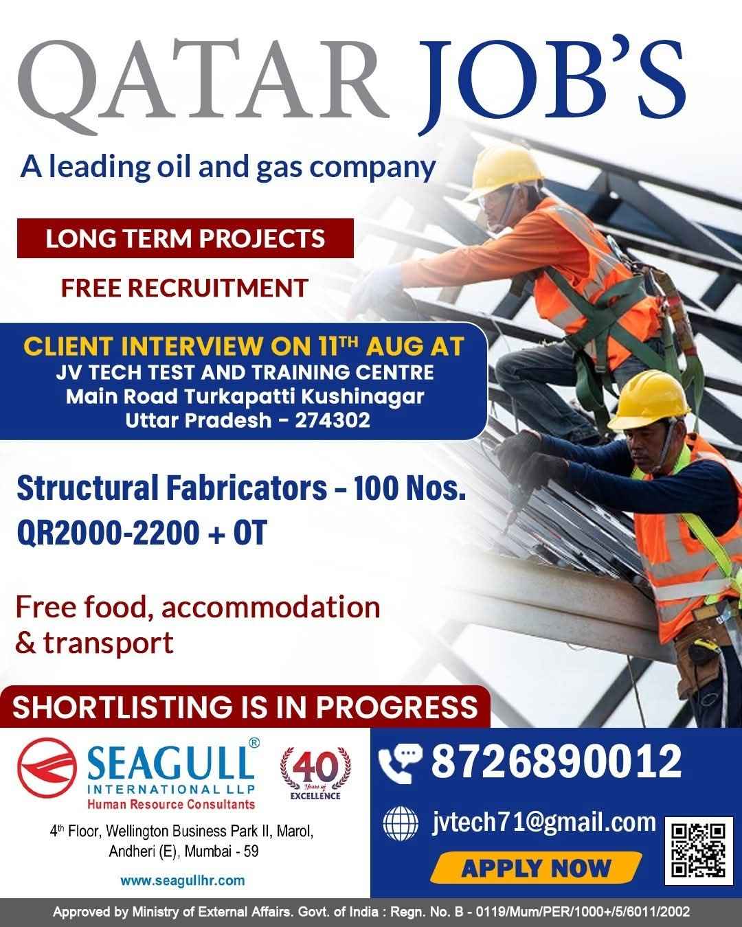 Urgent Requirement For Qatar Oil & gas construction