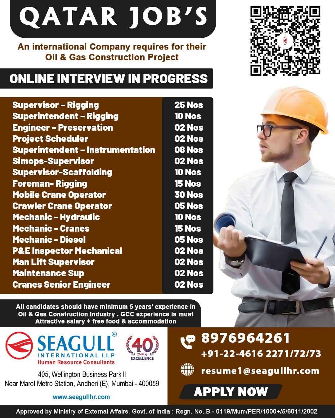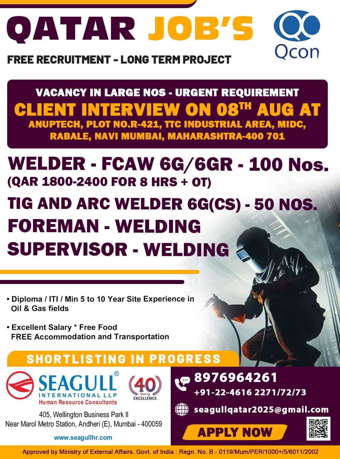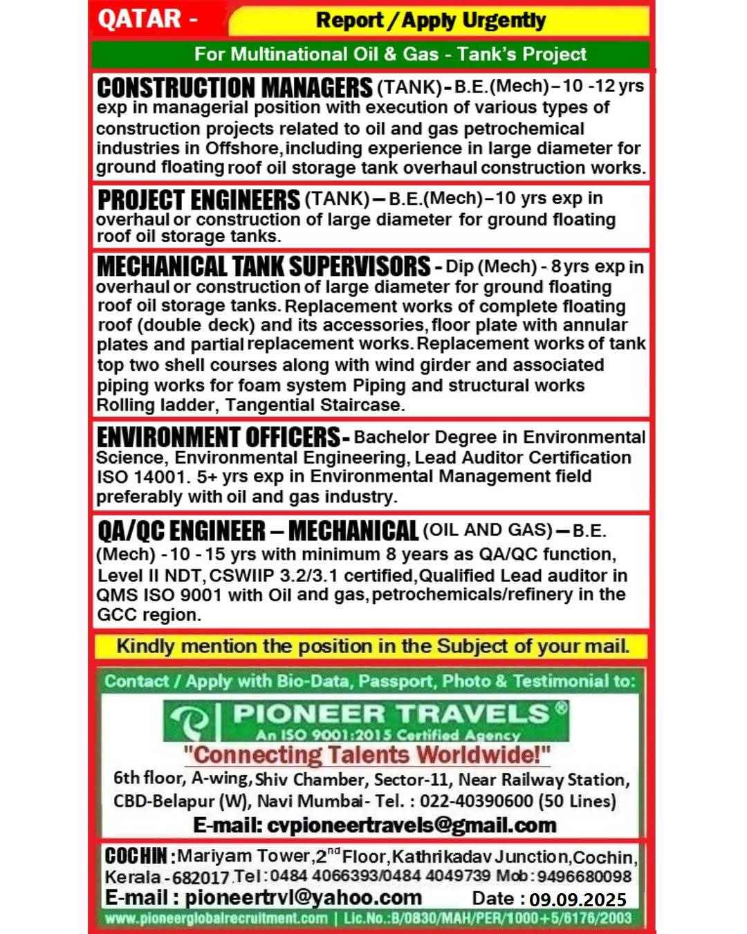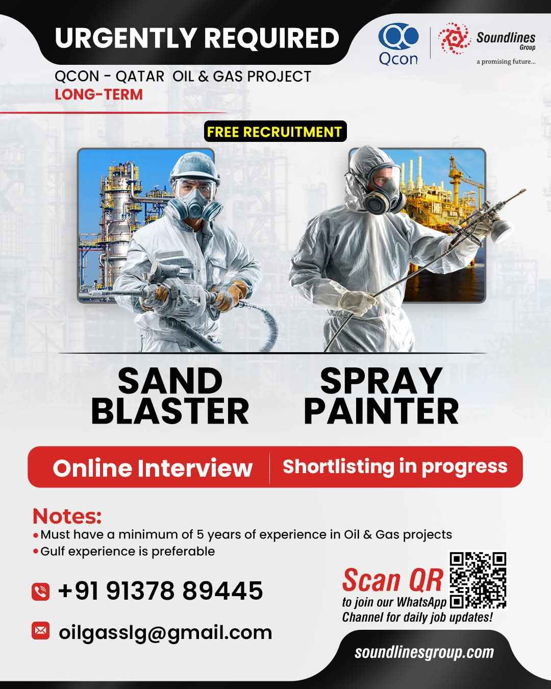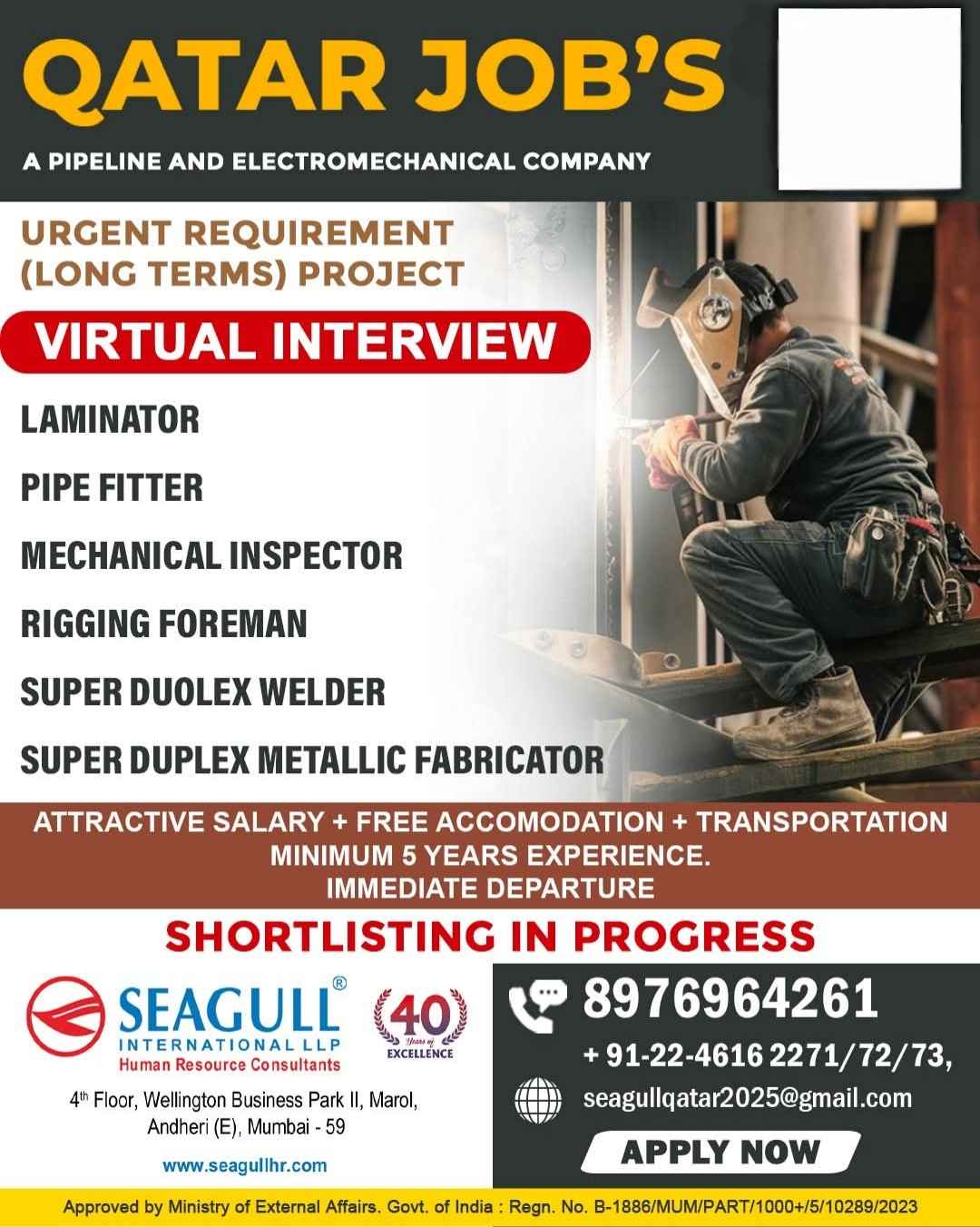 Urgent Requirement For Qatar Oil & gas construction