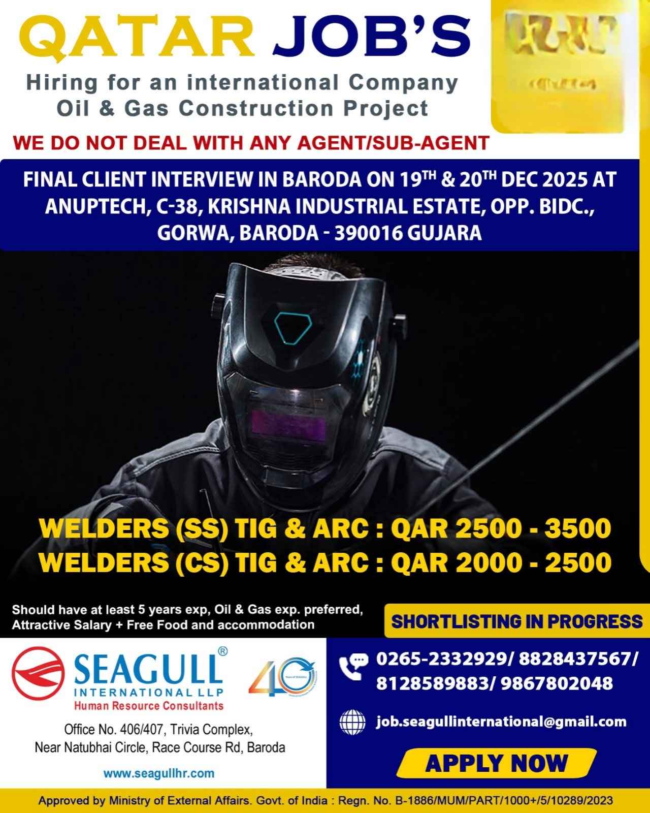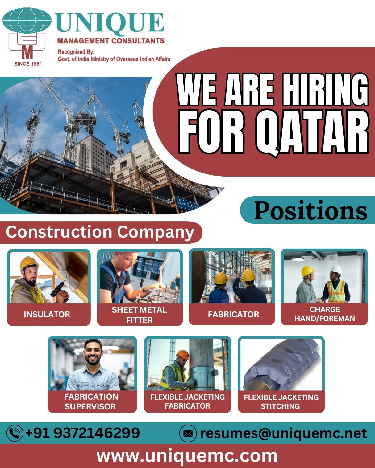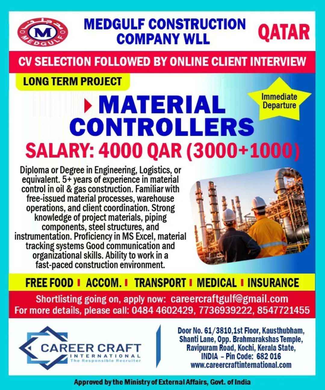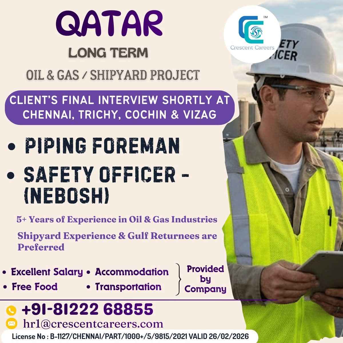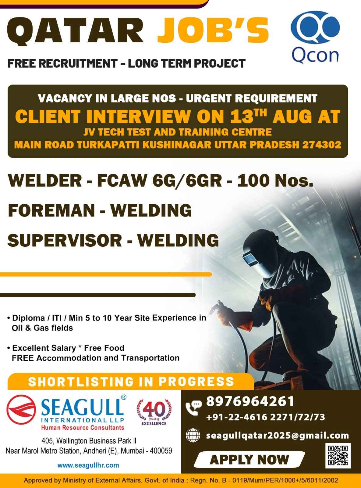 Urgent Requirement For Qatar Oil & gas construction