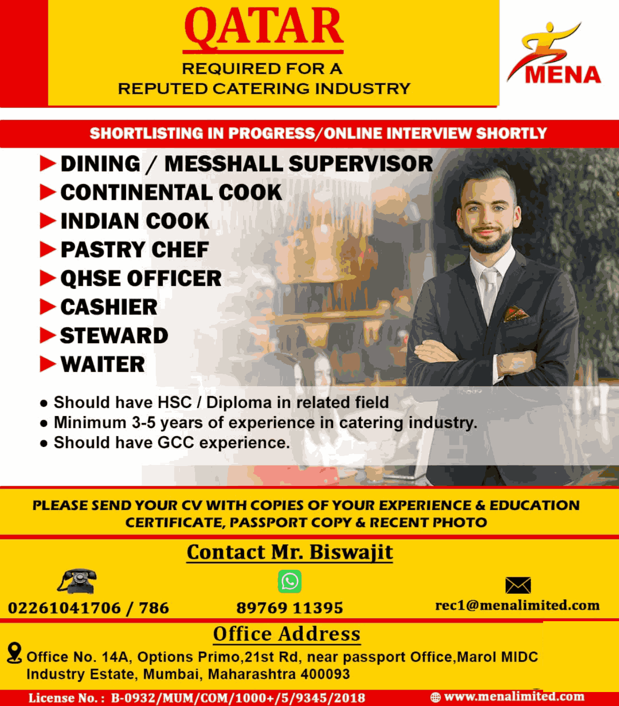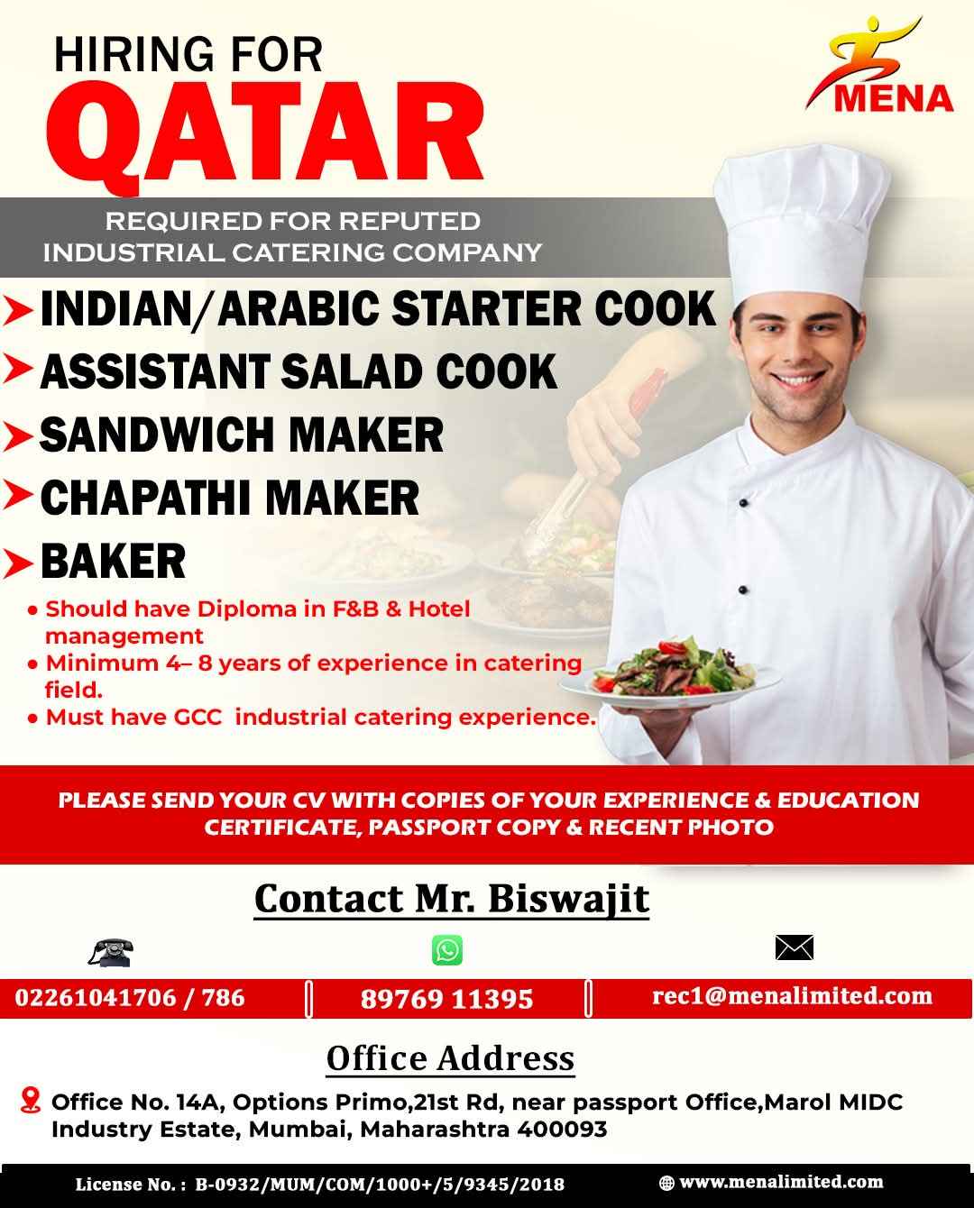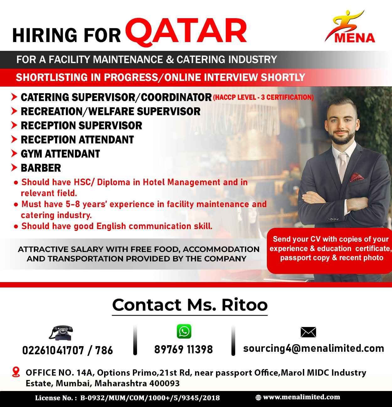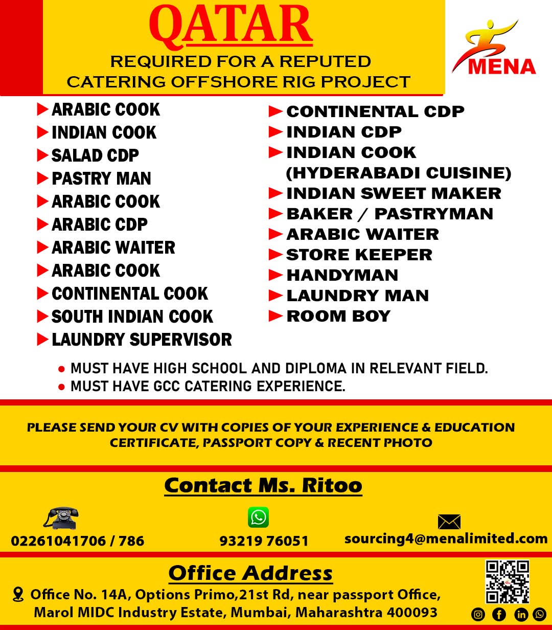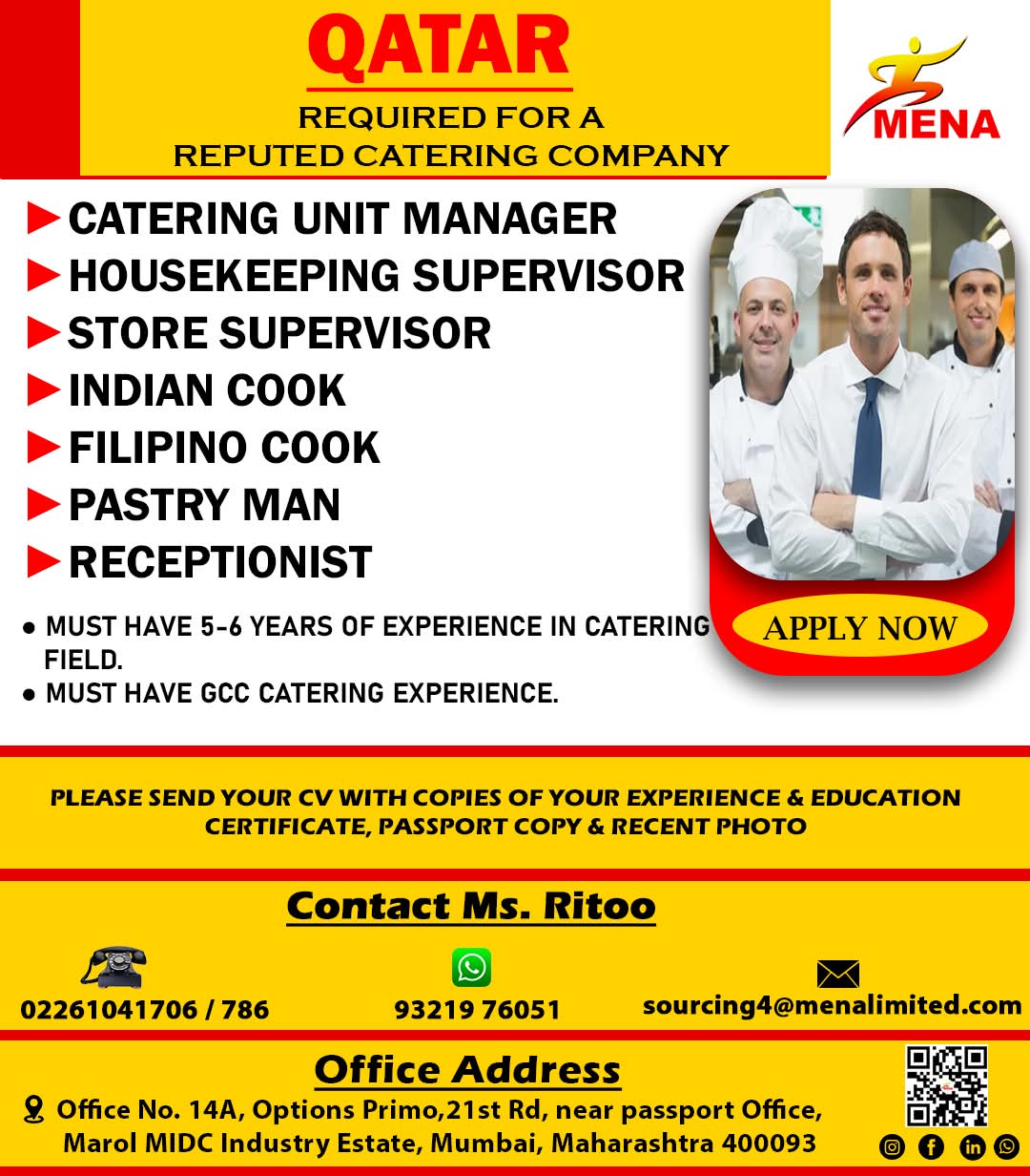 QATAR REQUIRED FOR A REPUTED CATERING INDUSTRY