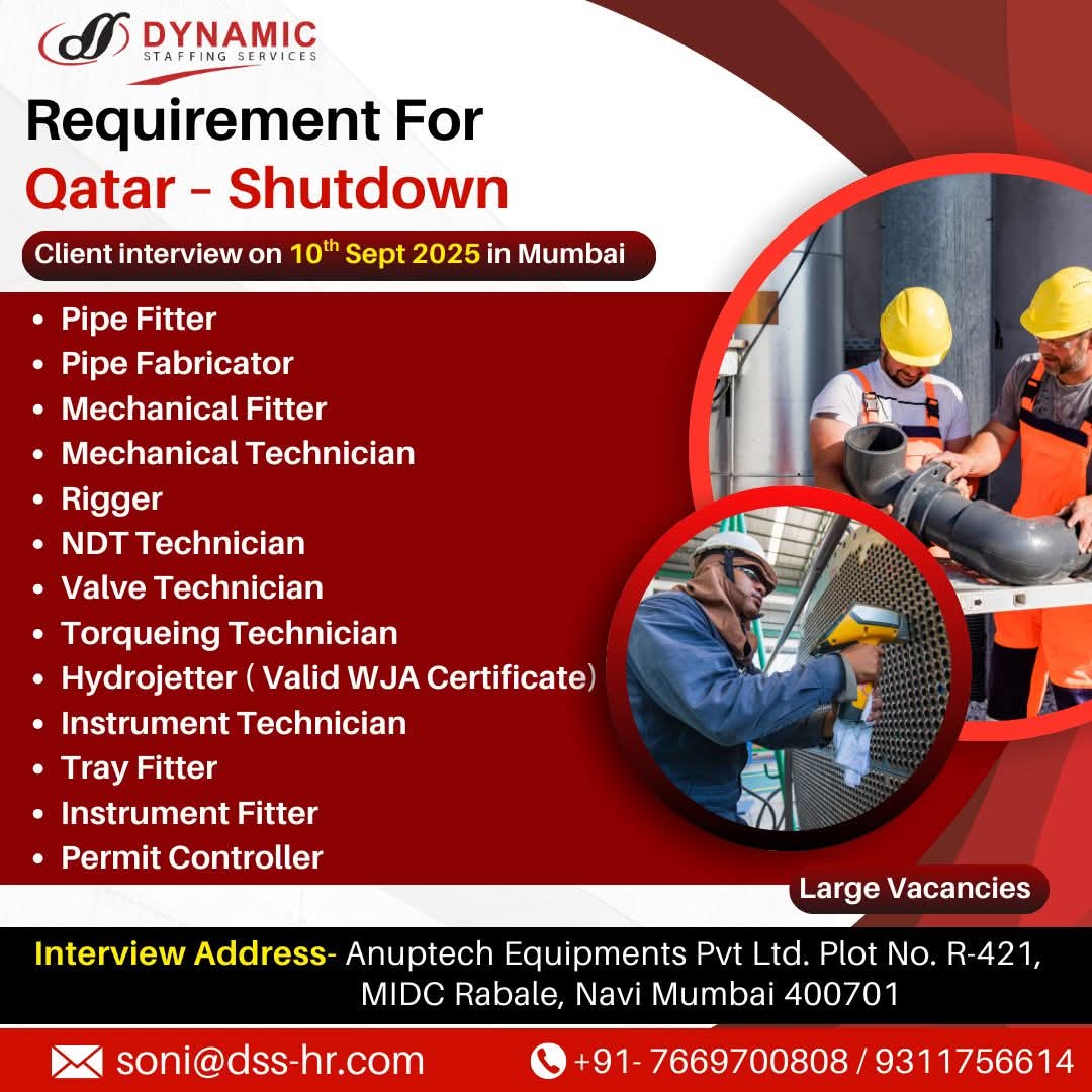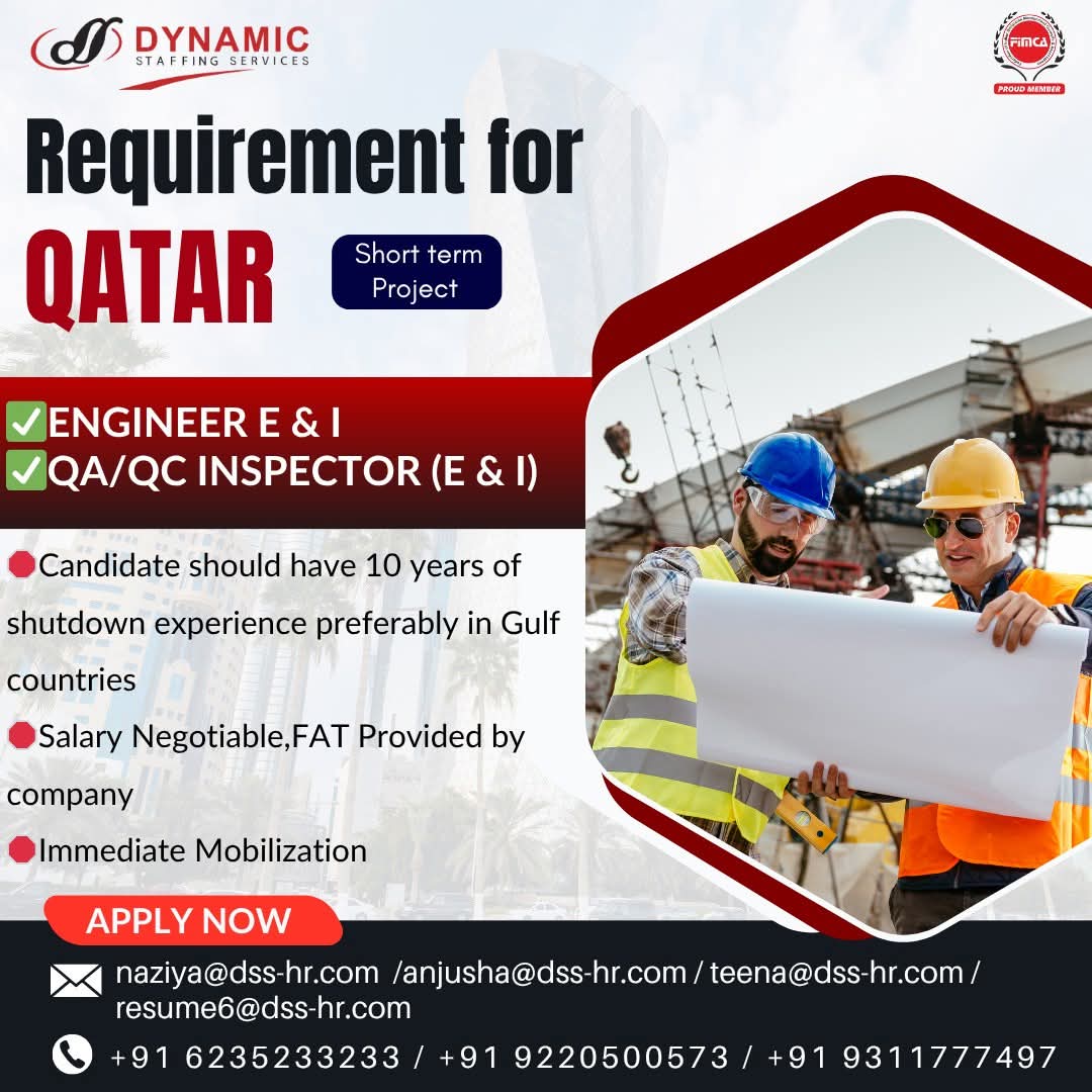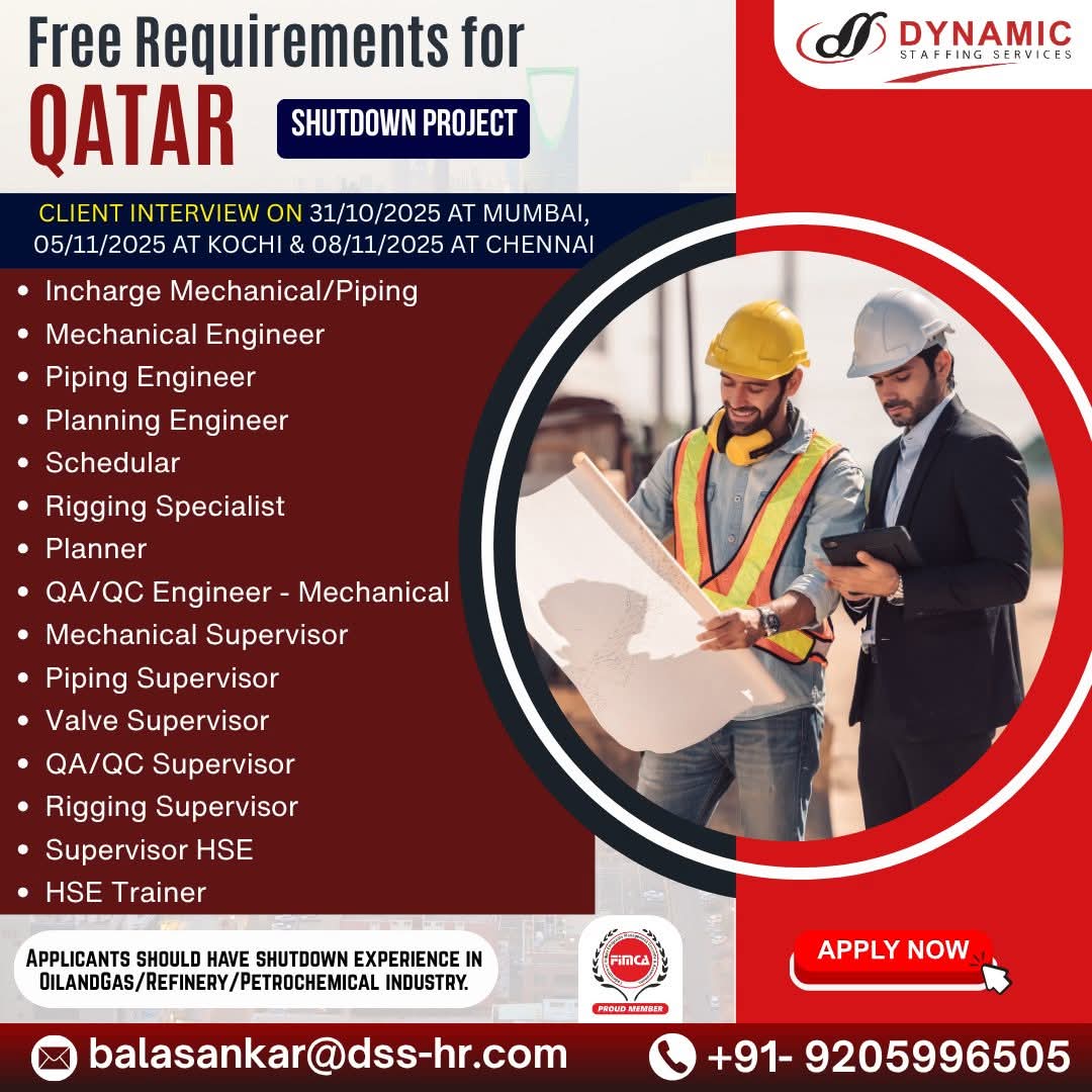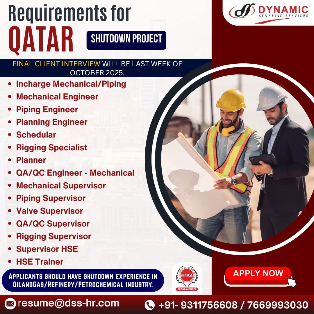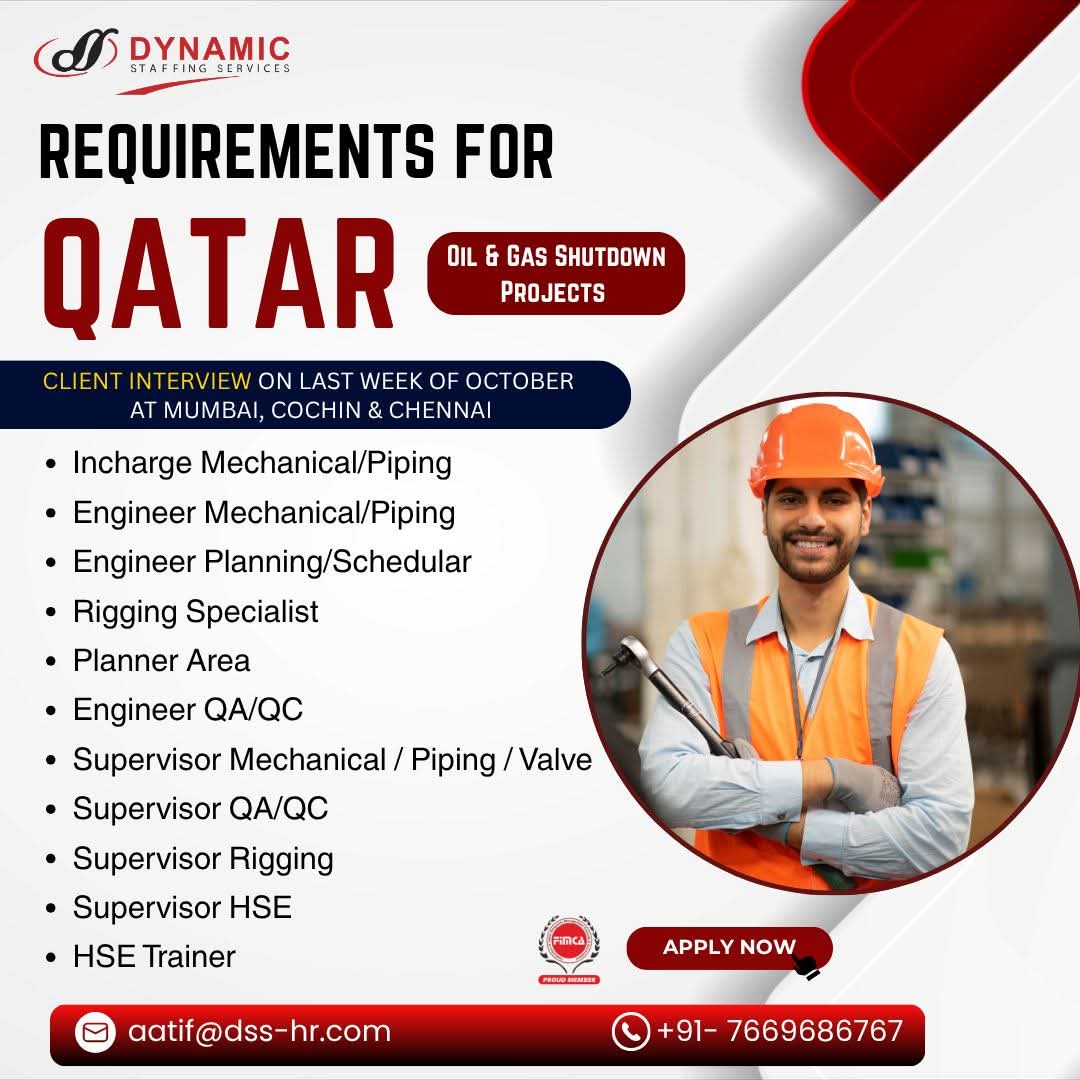 URGENTLY REQUIRED FOR A LEADING OIL & GAS COMPANY FOR THEIR SHUTDOWN PROJECT IN QATAR