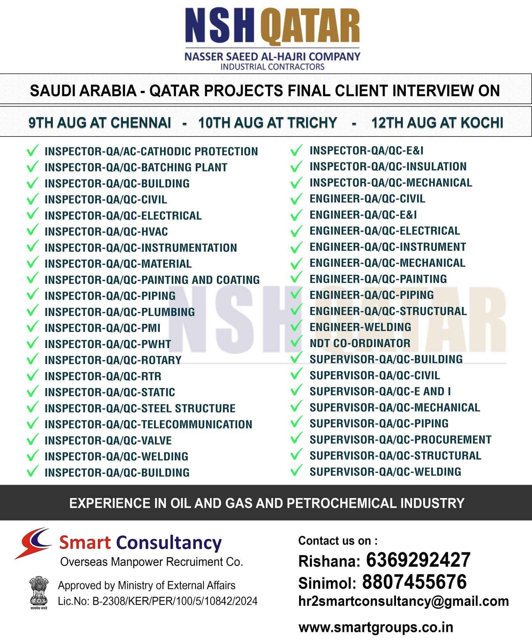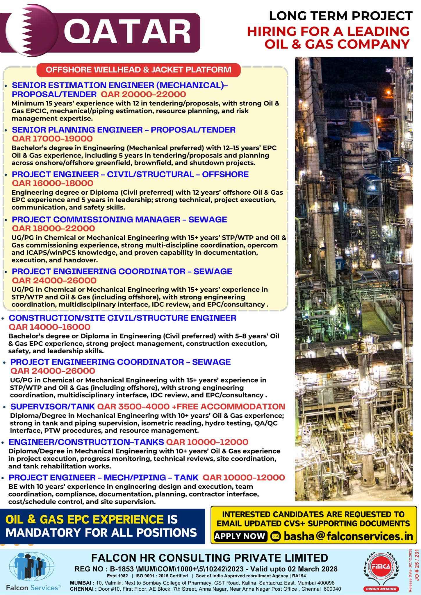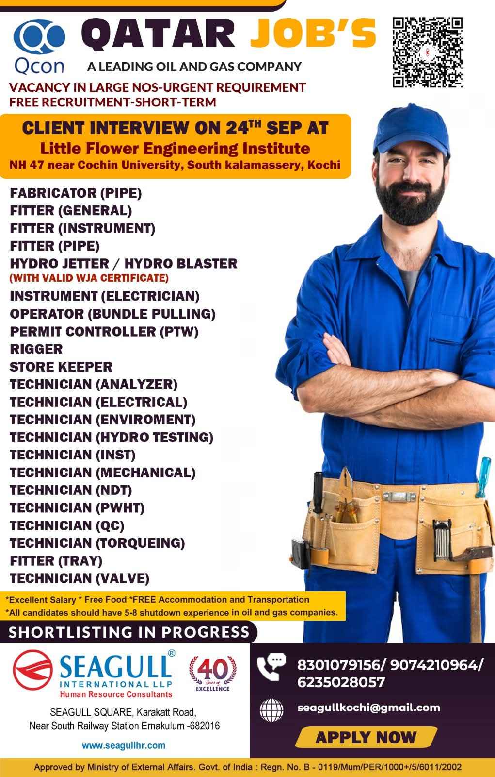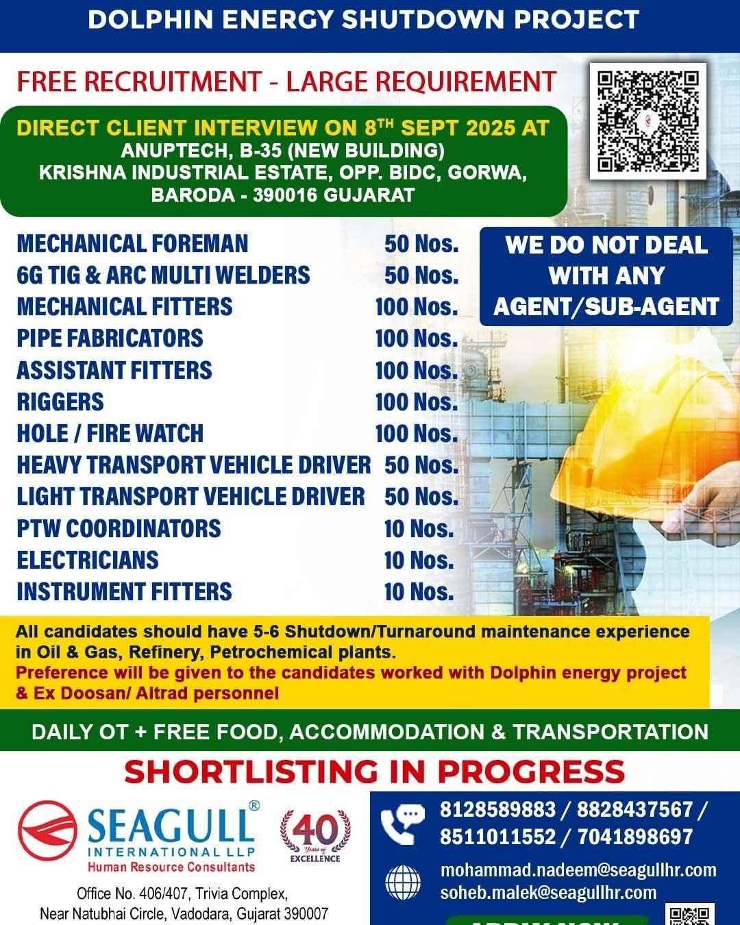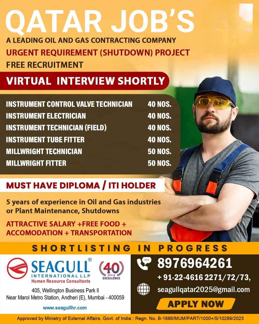 URGENTLY REQUIRED FOR A LEADING OIL & GAS COMPANY FOR THEIR SHUTDOWN PROJECT IN QATAR