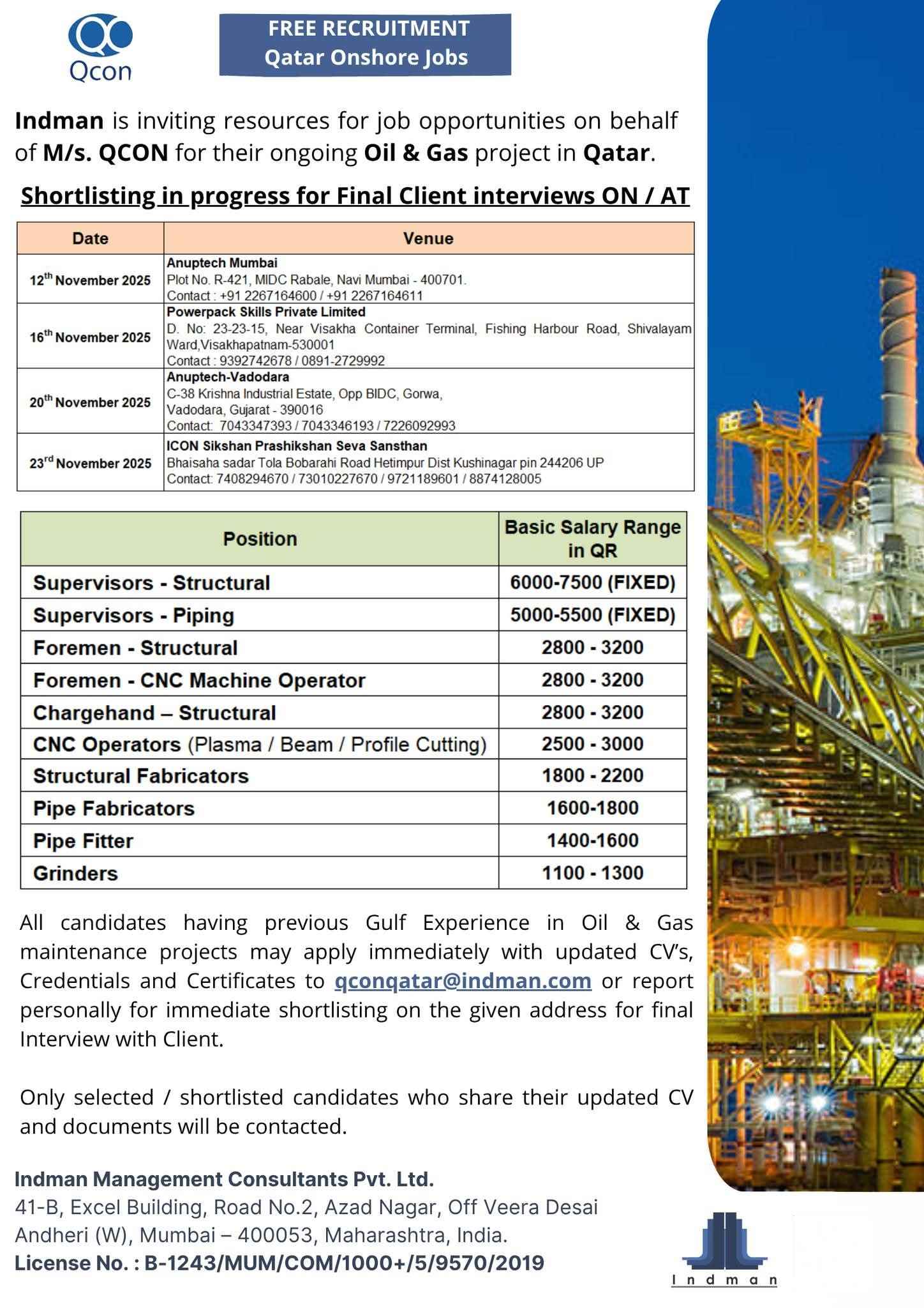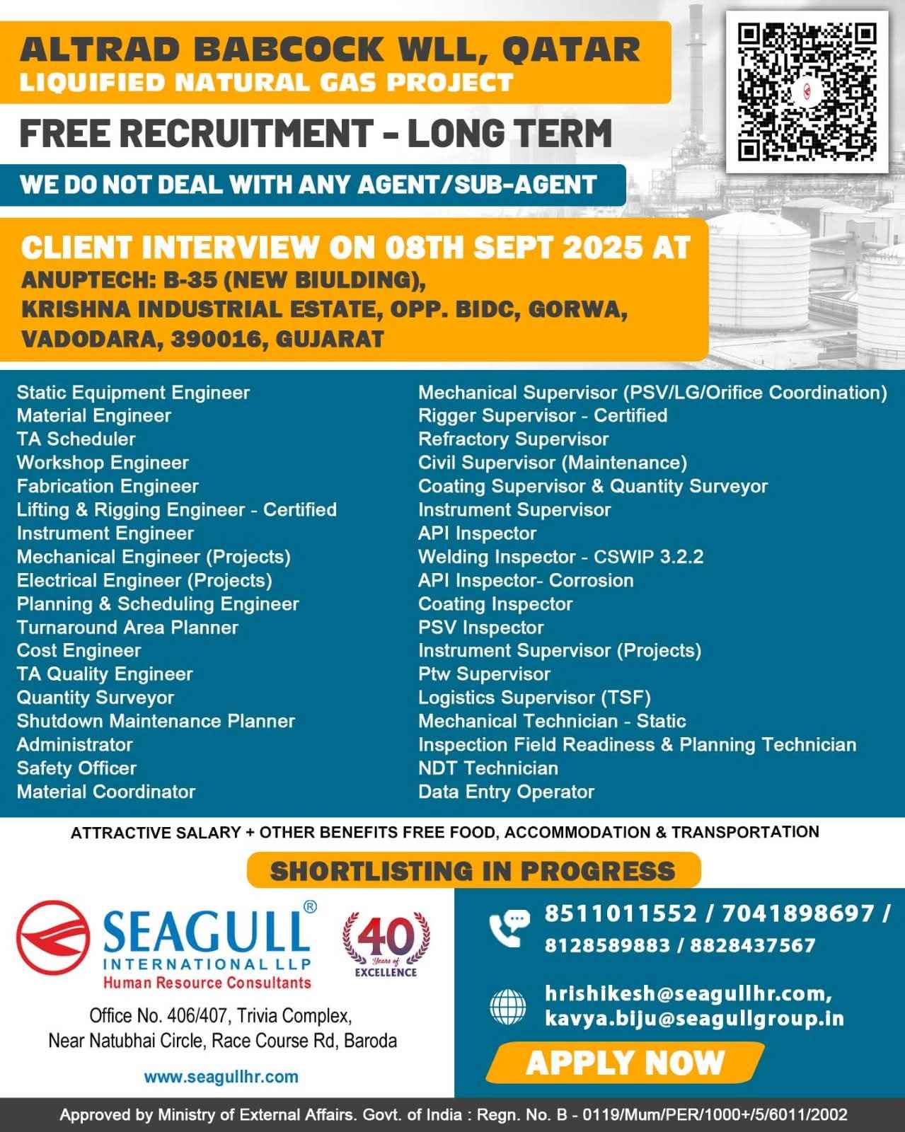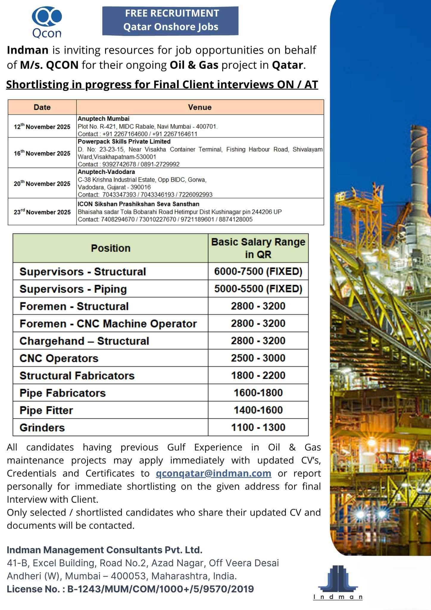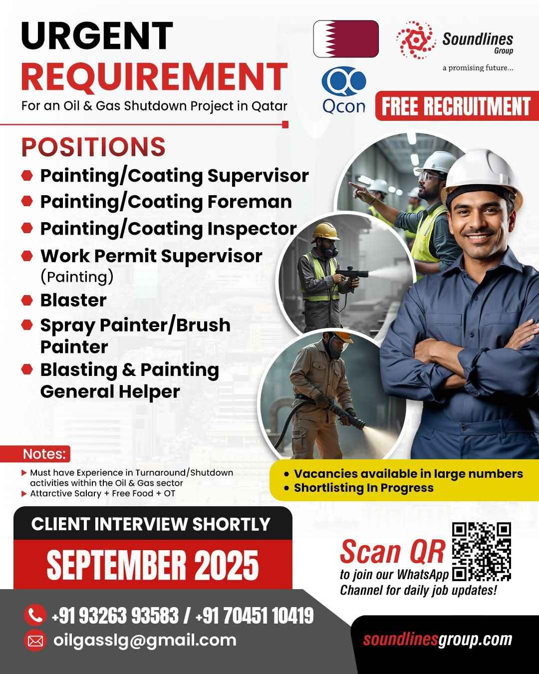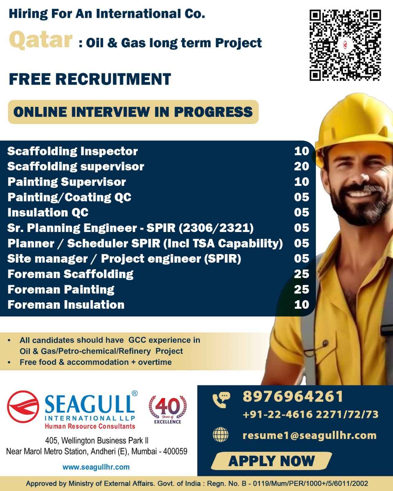 URGENTLY REQUIRED FOR A LEADING OIL & GAS COMPANY FOR THEIR SHUTDOWN PROJECT IN QATAR