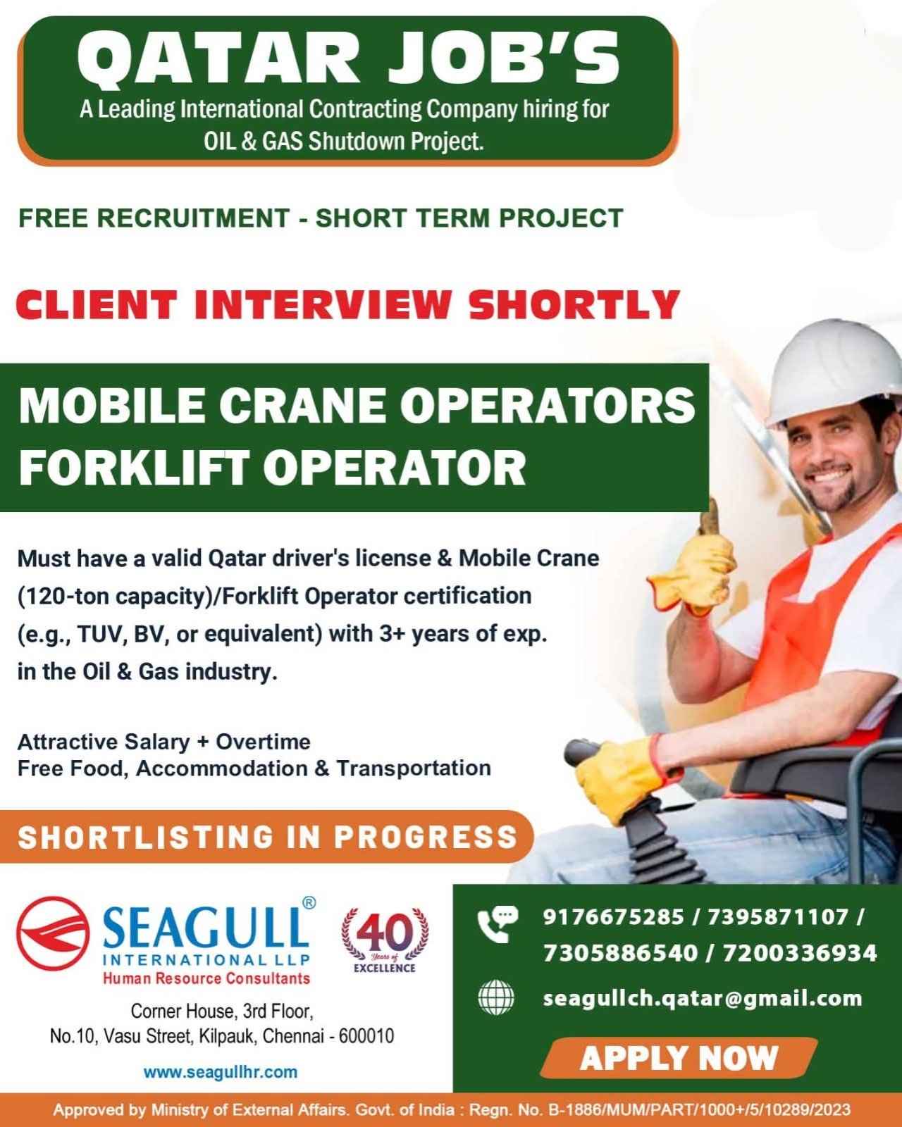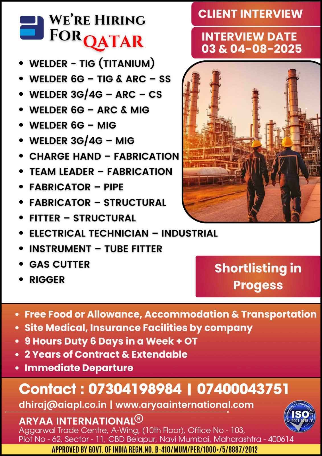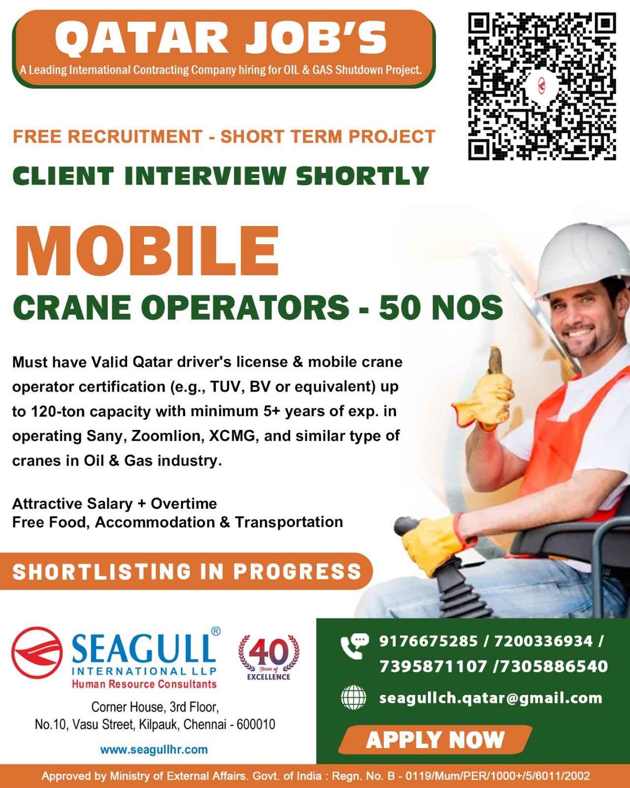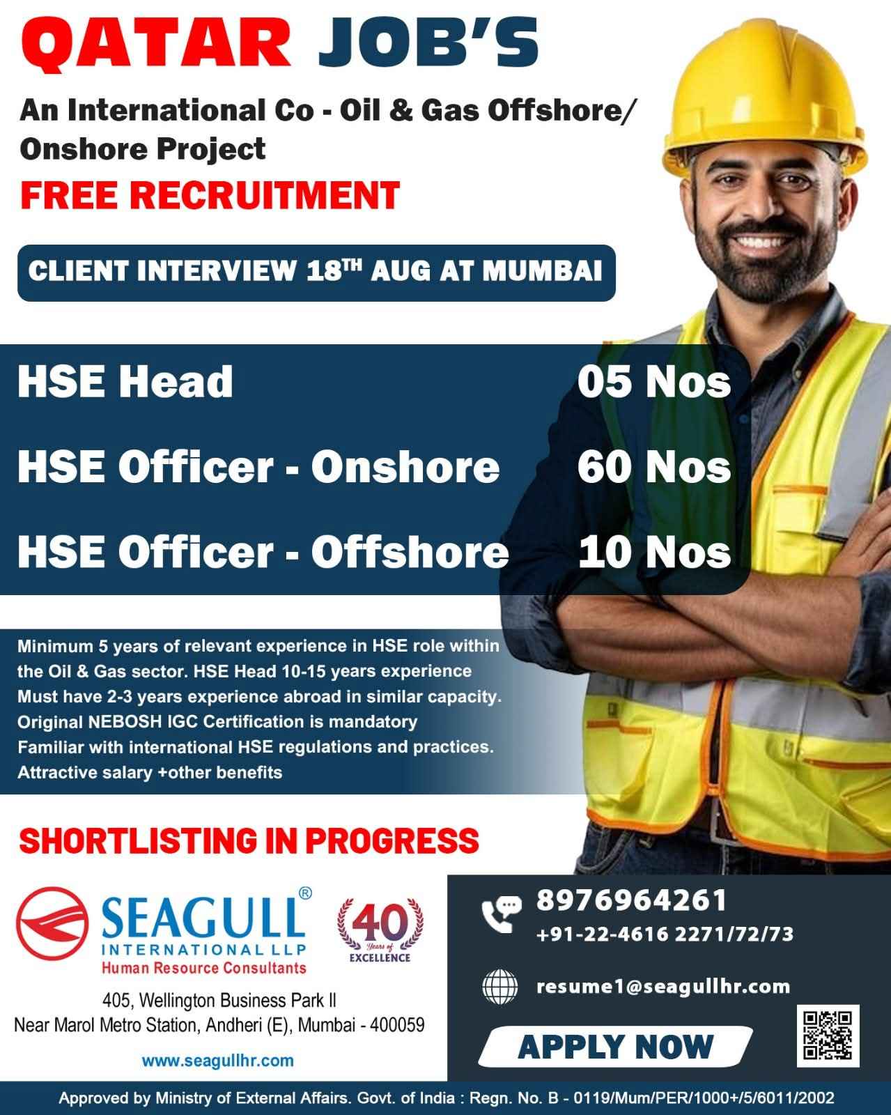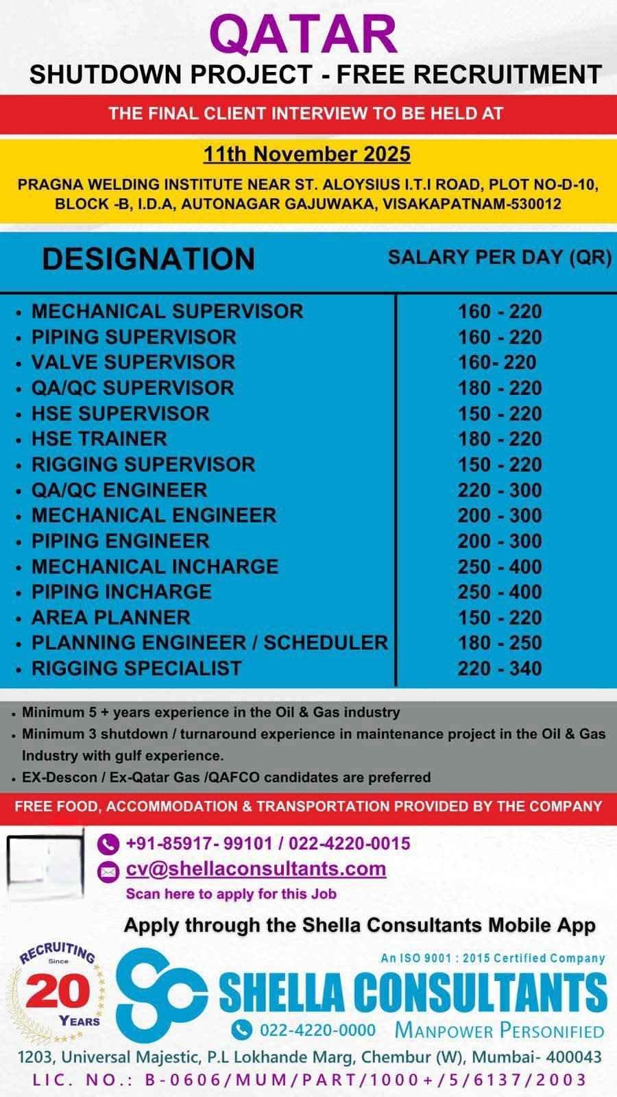 URGENTLY REQUIRED FOR A LEADING OIL & GAS COMPANY FOR THEIR SHUTDOWN PROJECT IN QATAR
