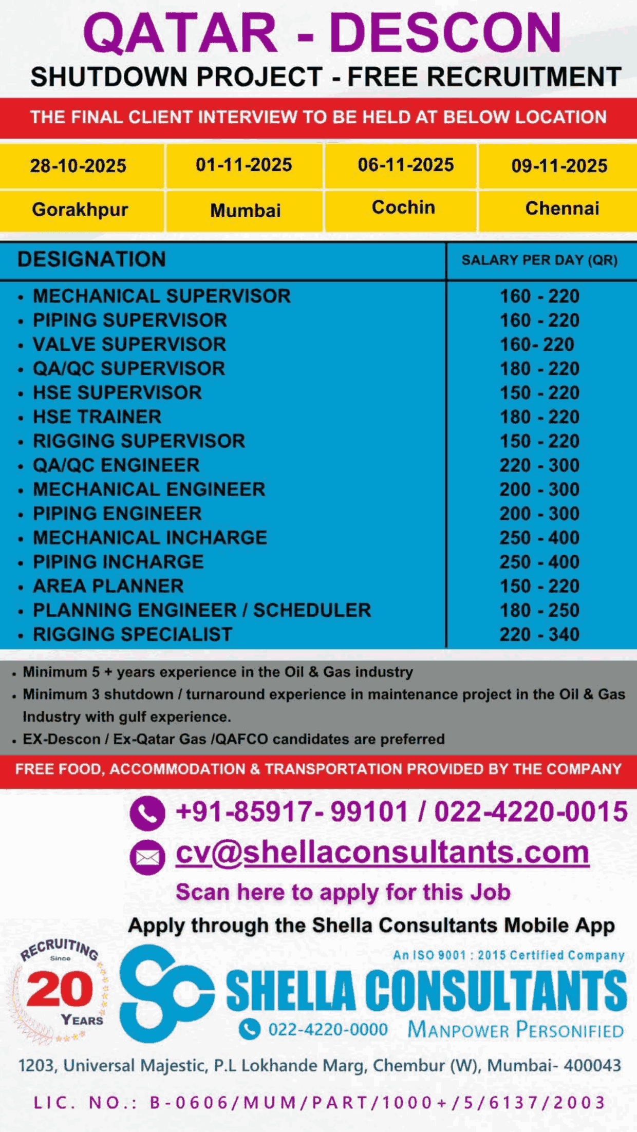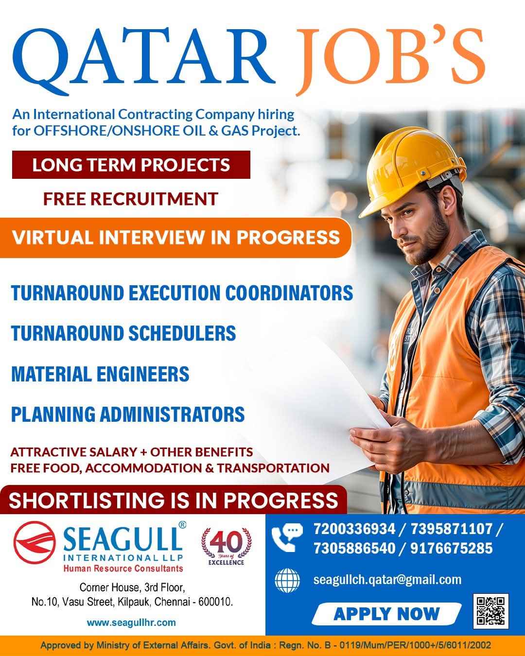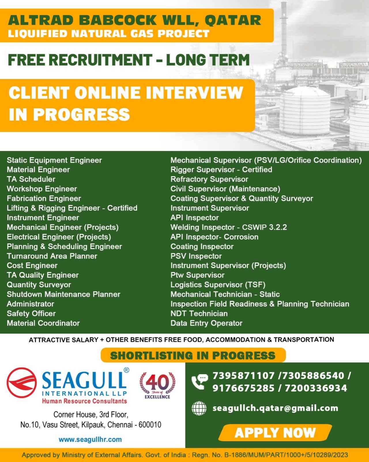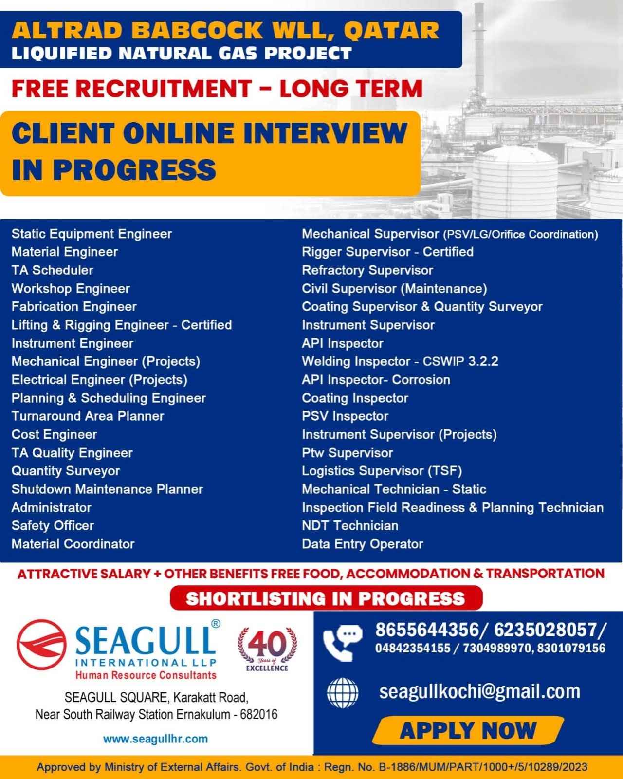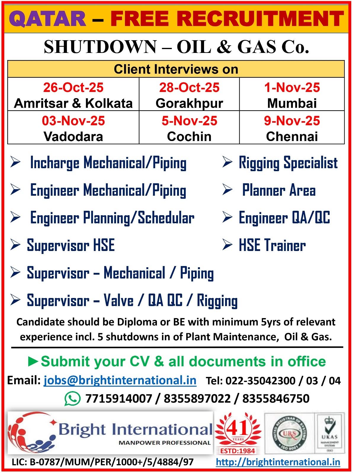 URGENTLY REQUIRED FOR A LEADING OIL & GAS COMPANY FOR THEIR SHUTDOWN PROJECT IN QATAR