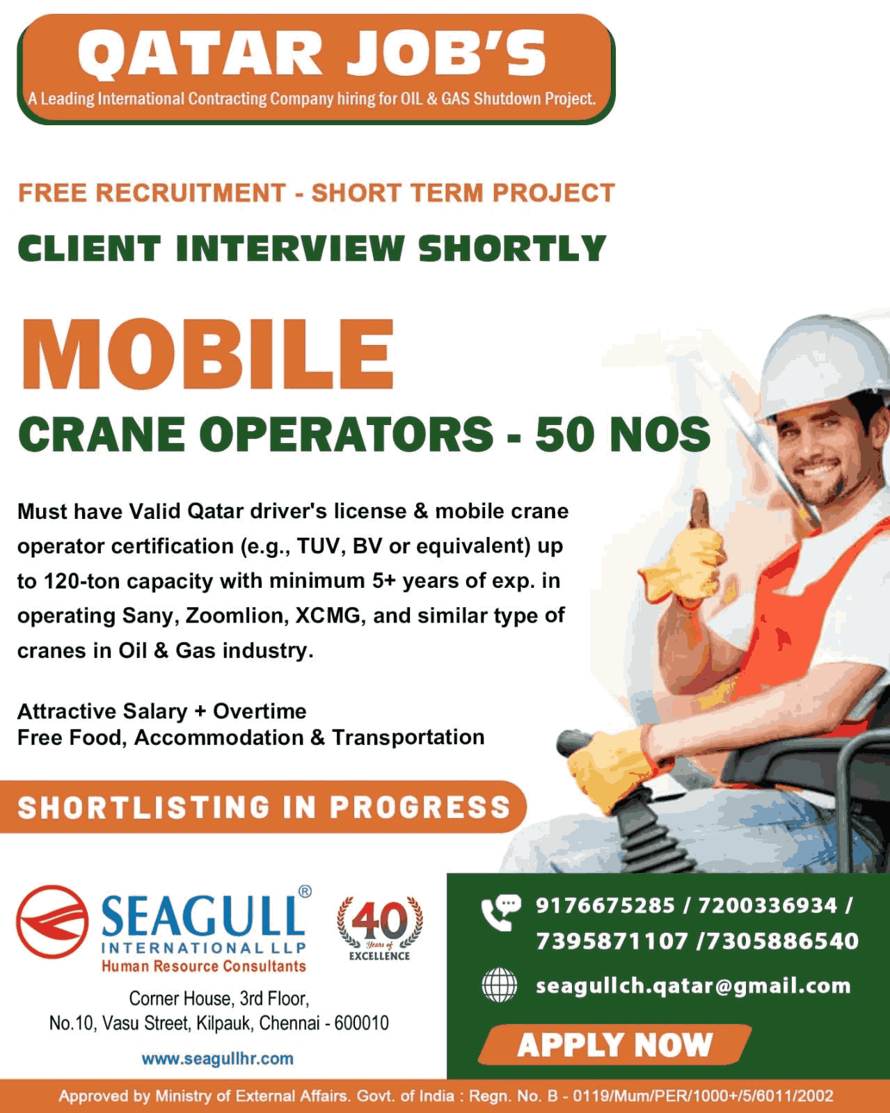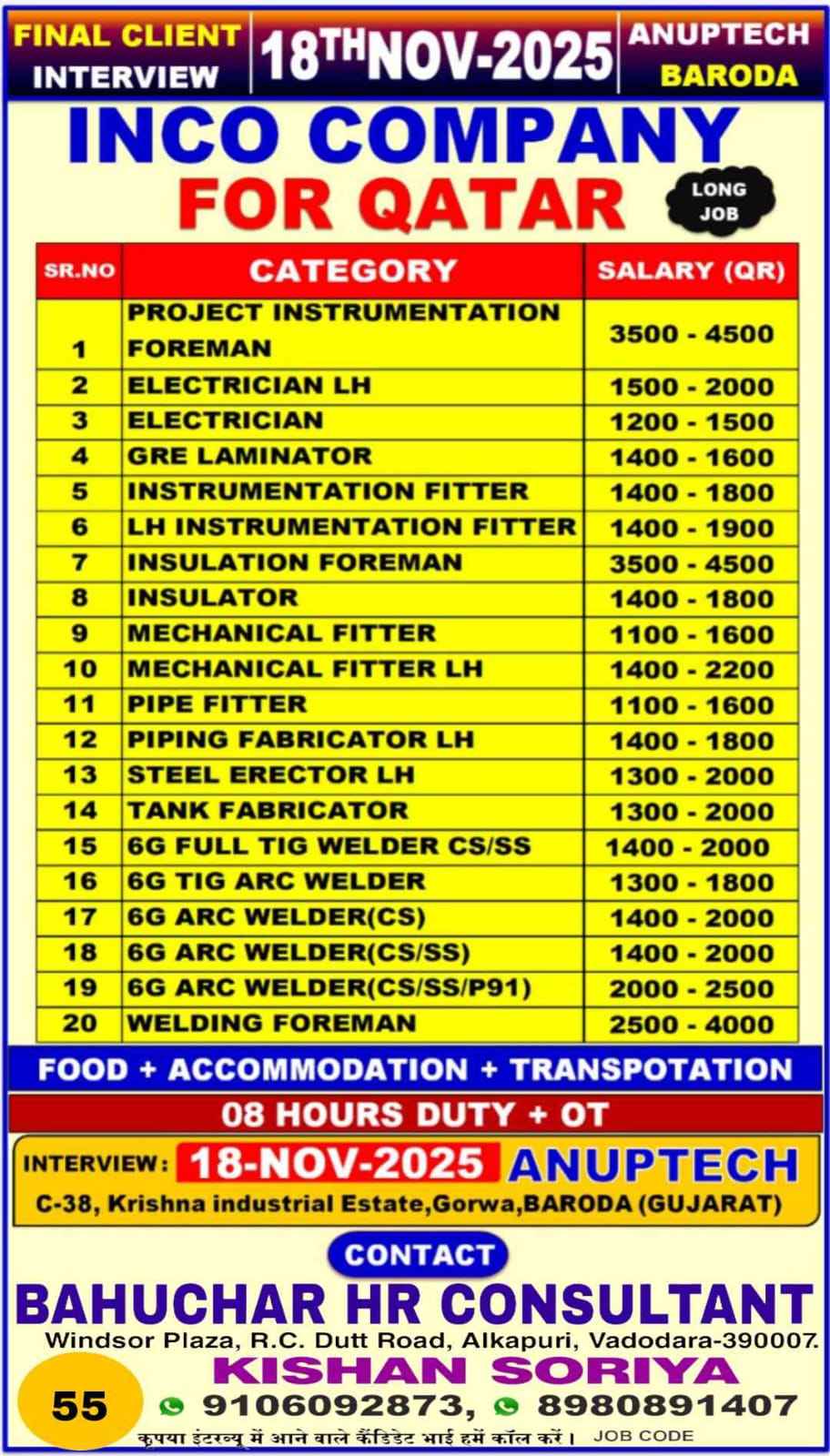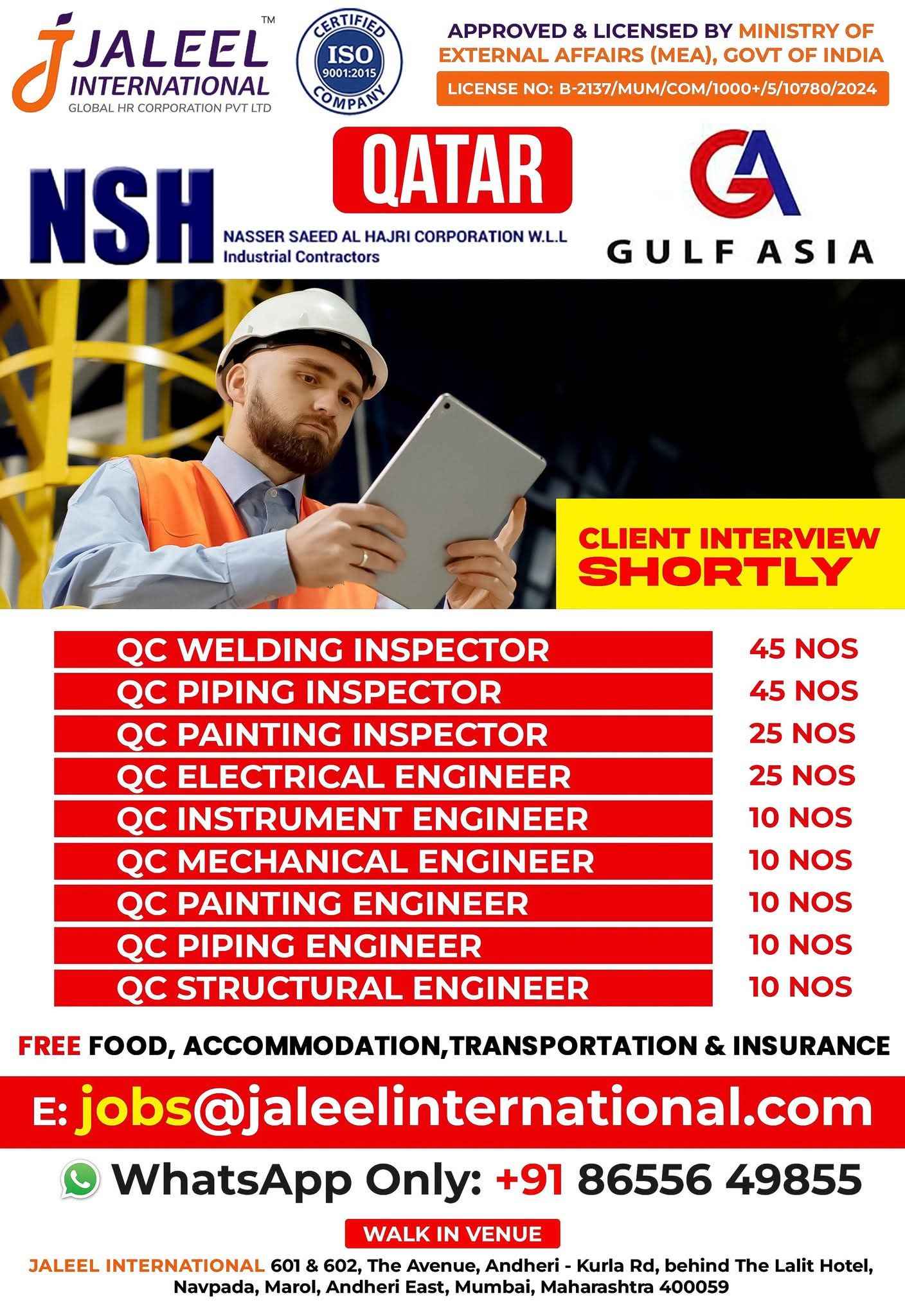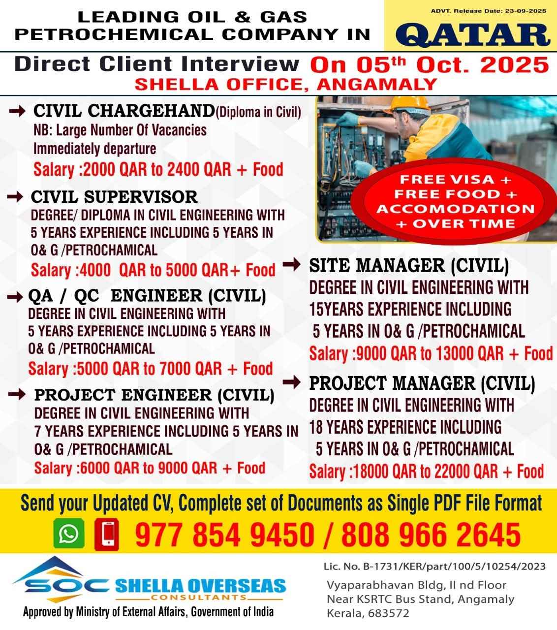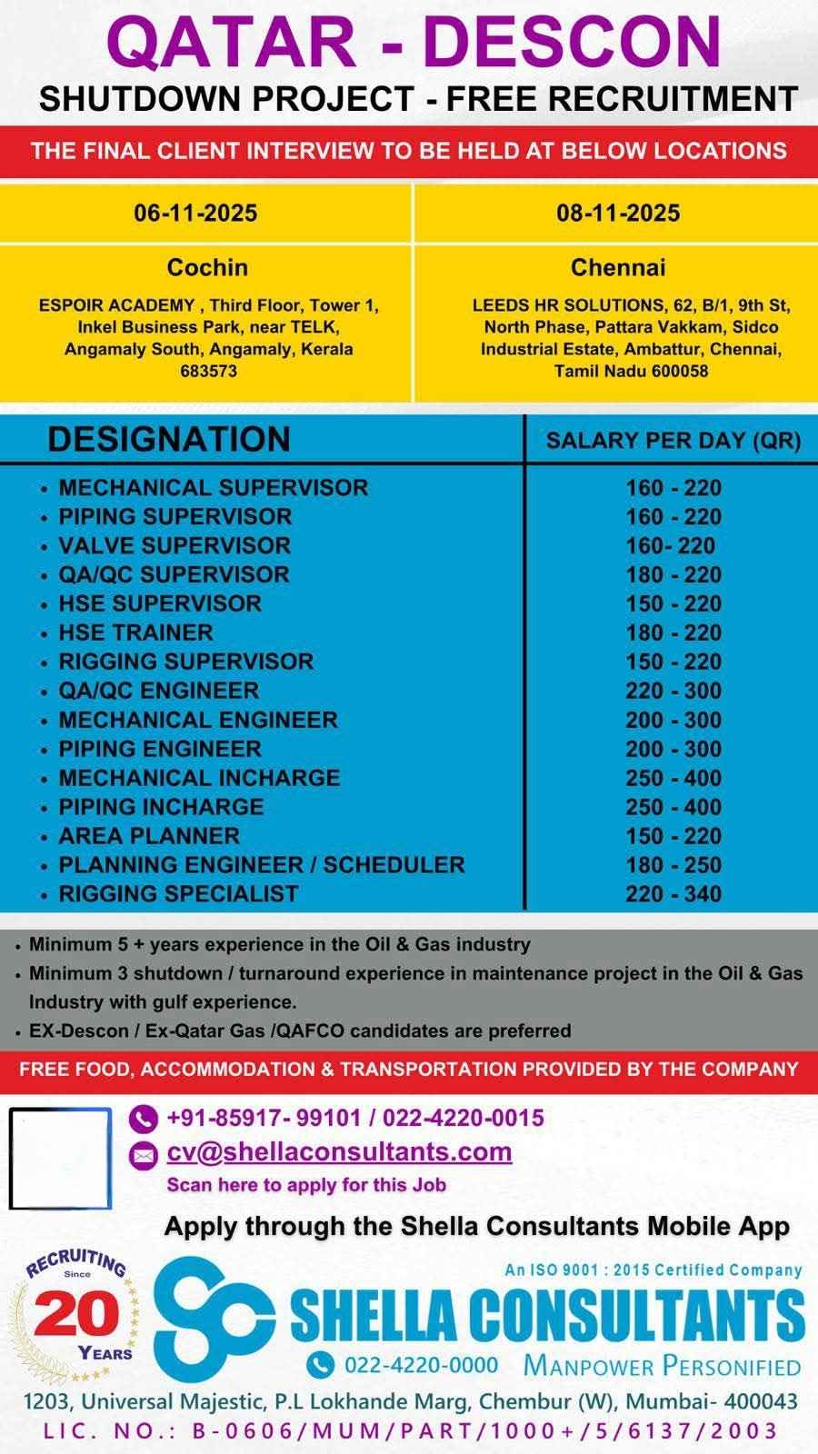 URGENTLY REQUIRED FOR A LEADING OIL & GAS COMPANY FOR THEIR SHUTDOWN PROJECT IN QATAR