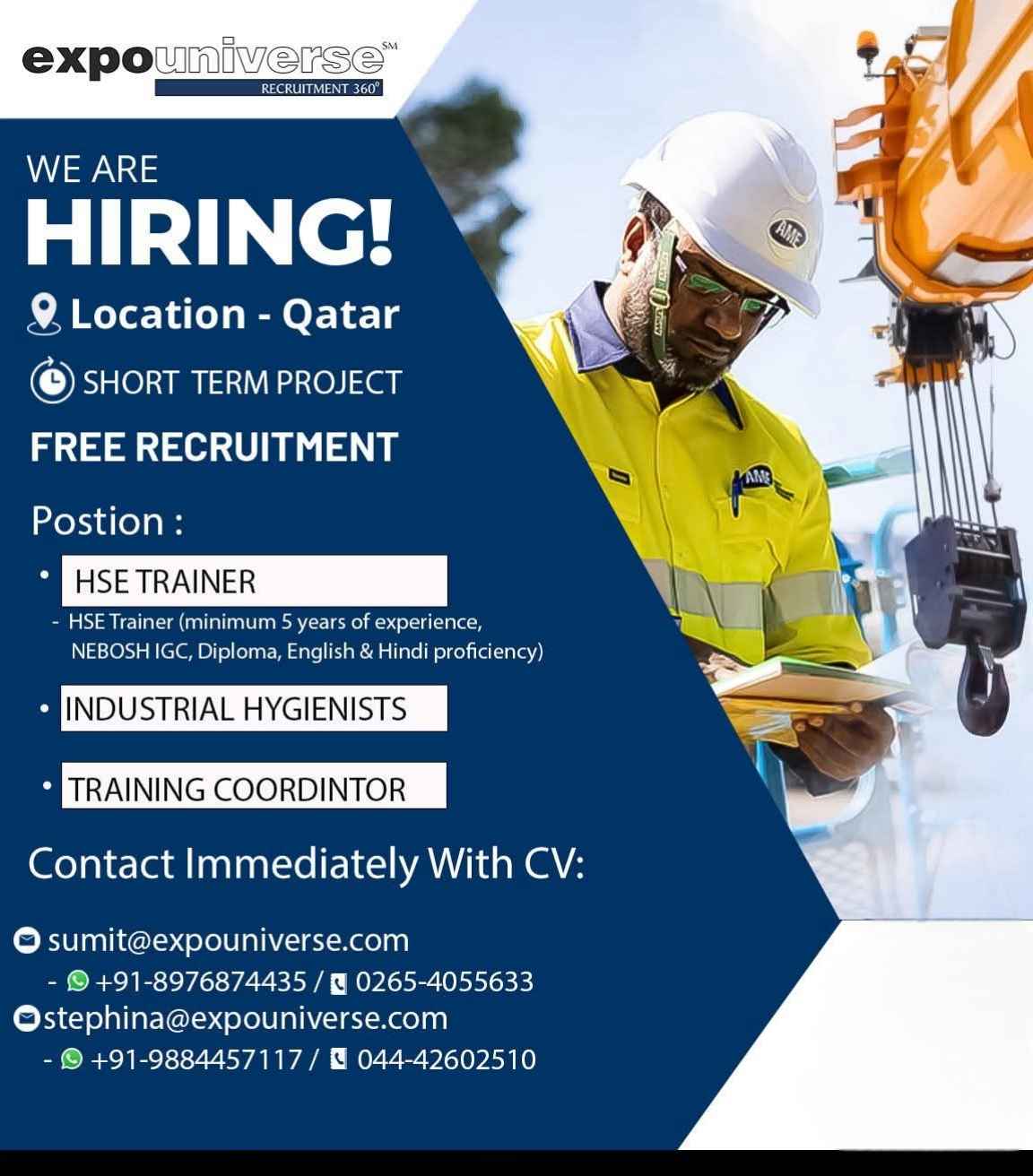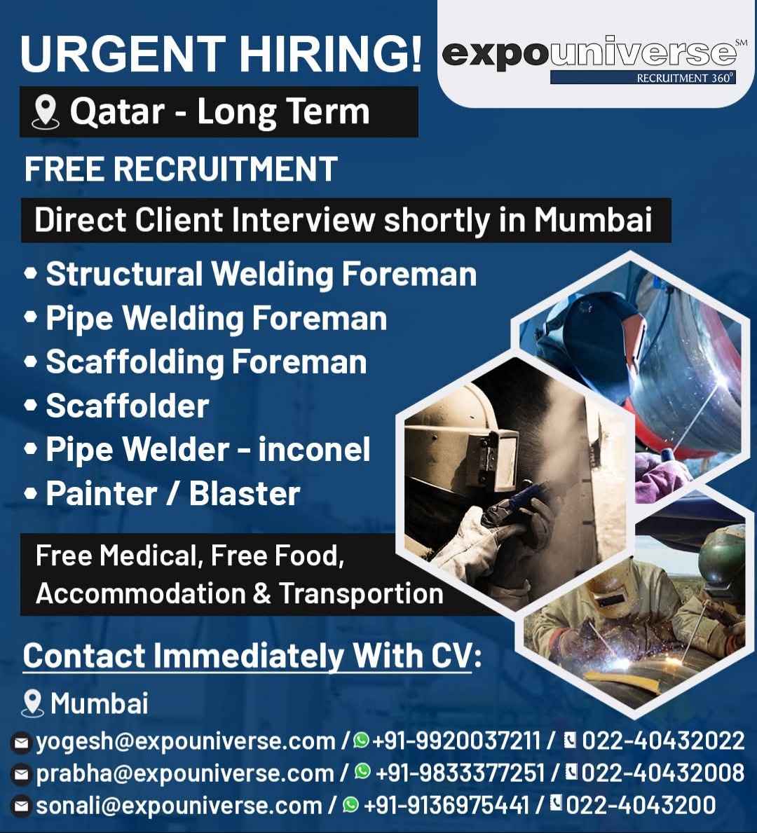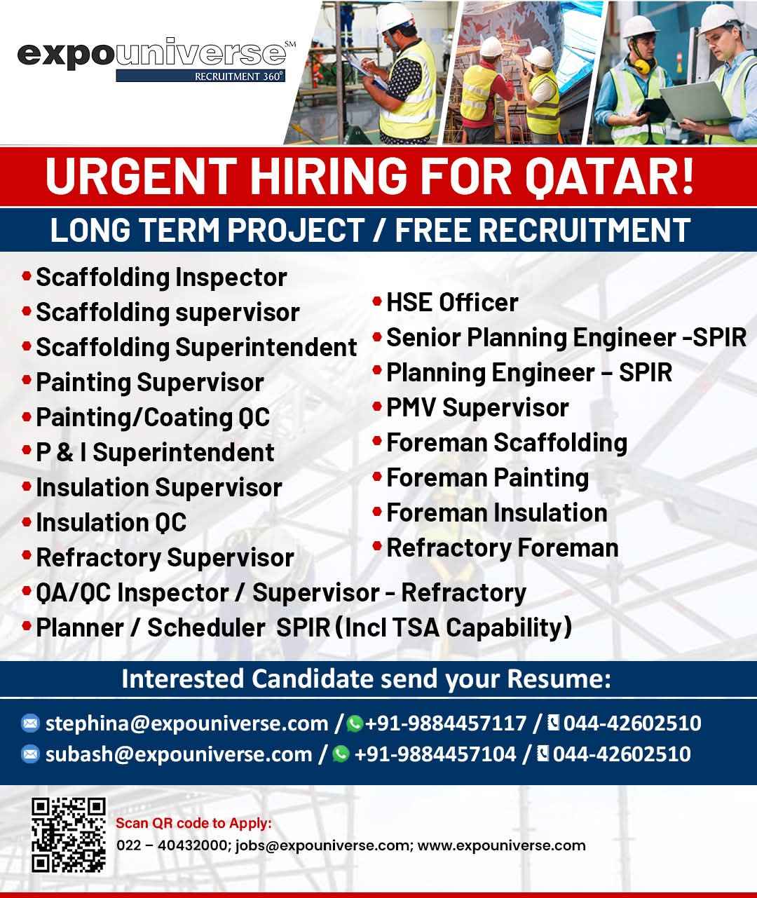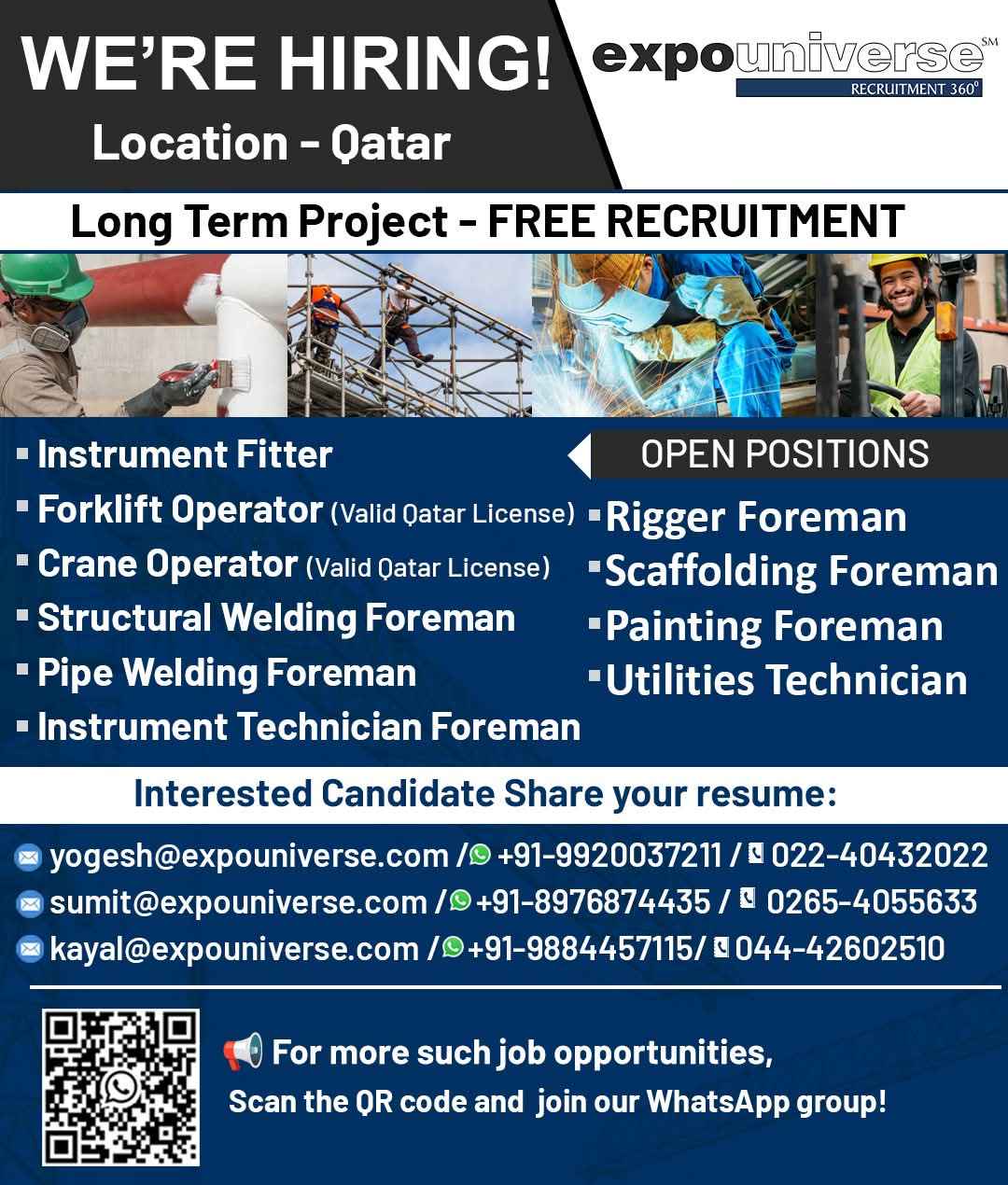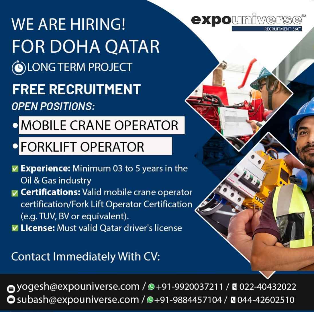Hiring For Qatar! expouniverse FREE RECRUITMENT