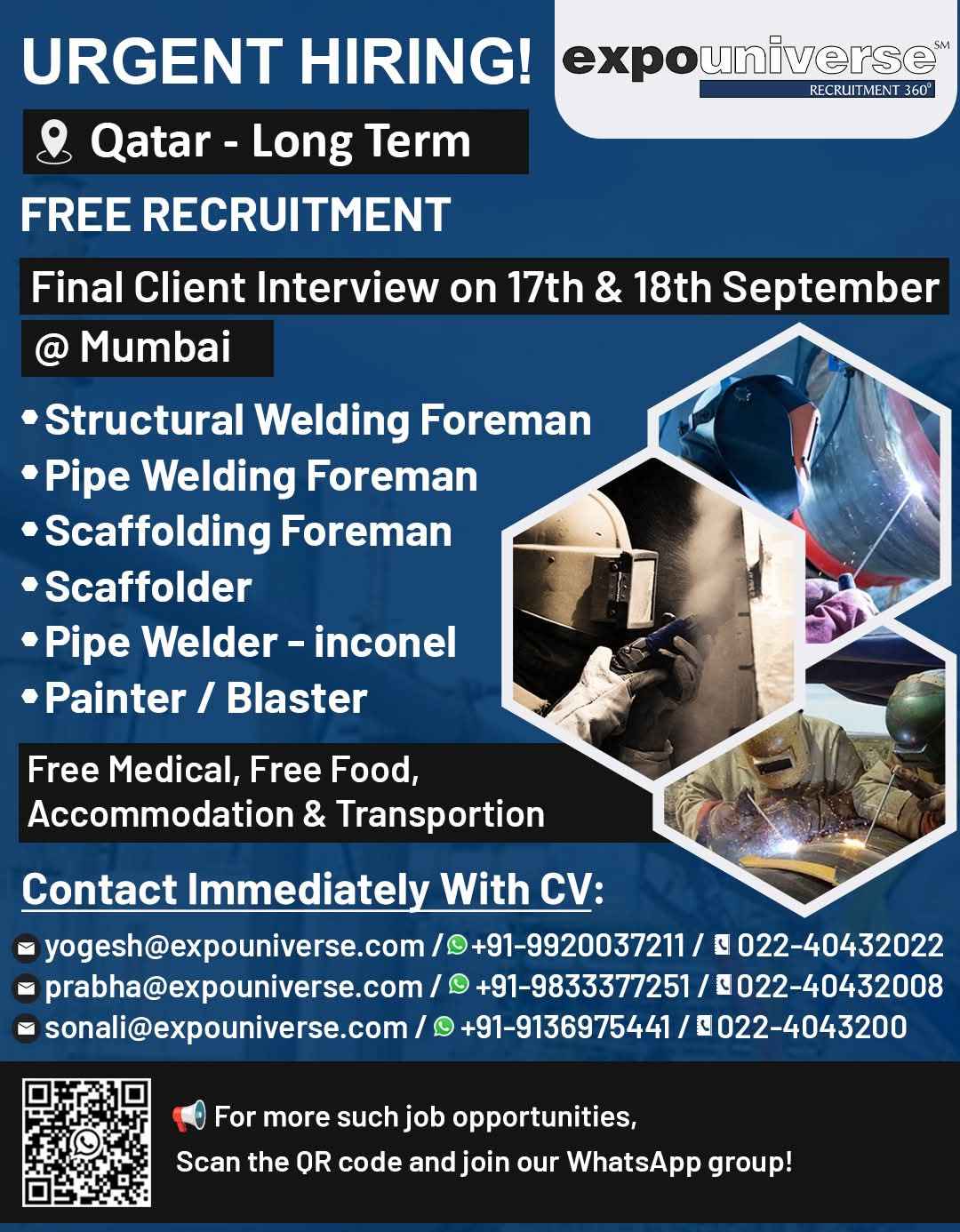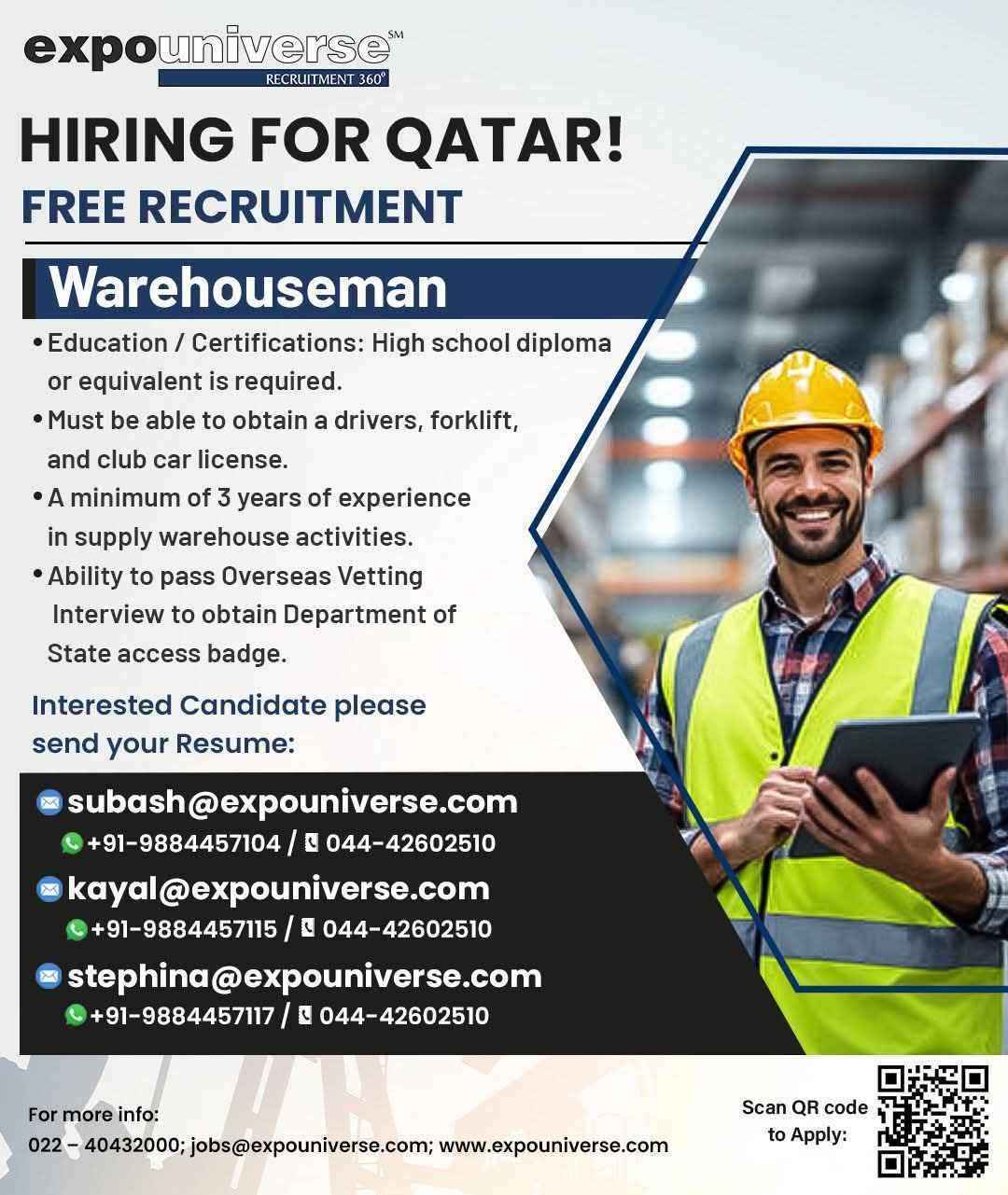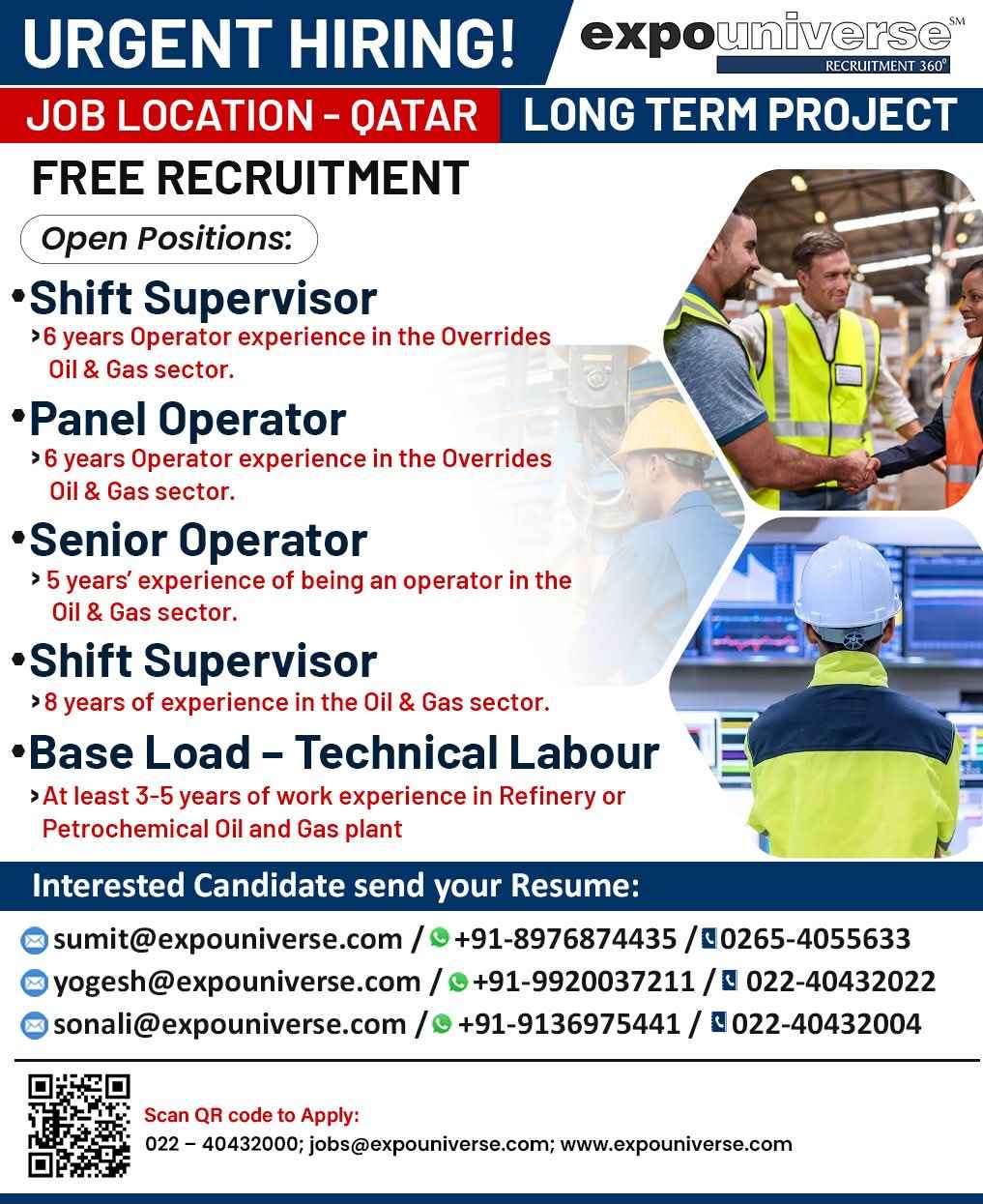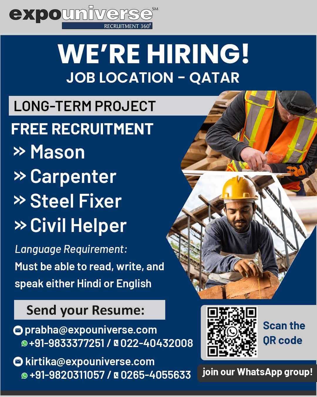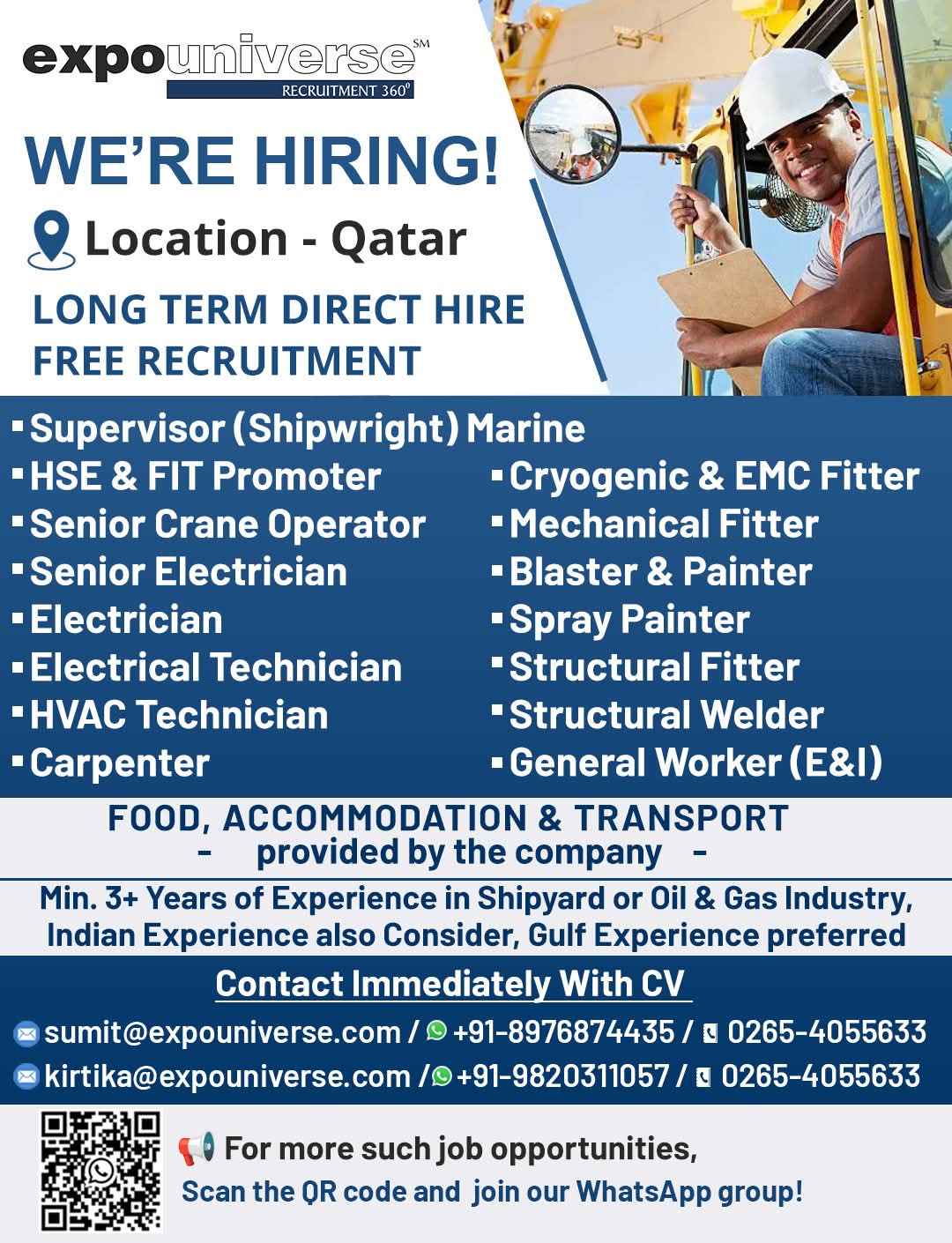 Hiring For Qatar! expouniverse FREE RECRUITMENT