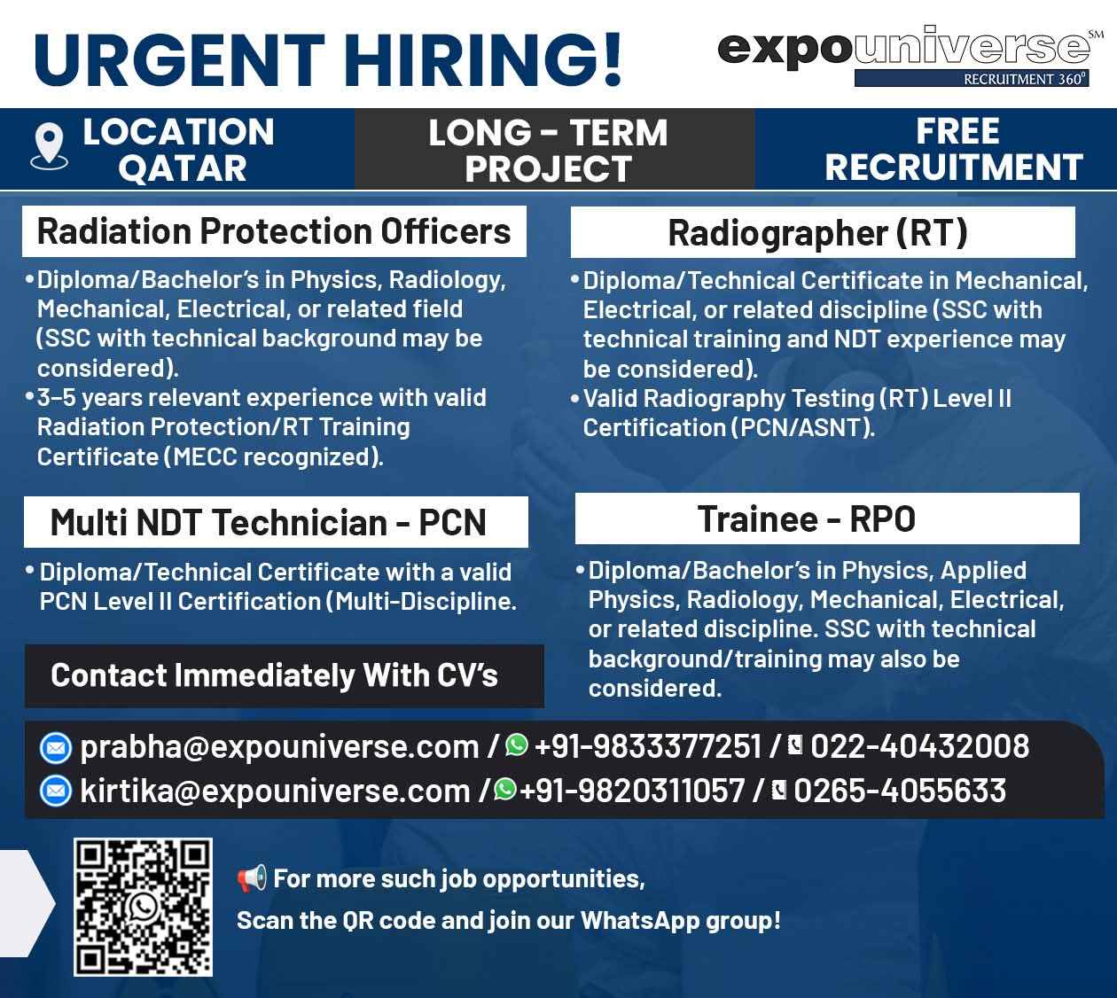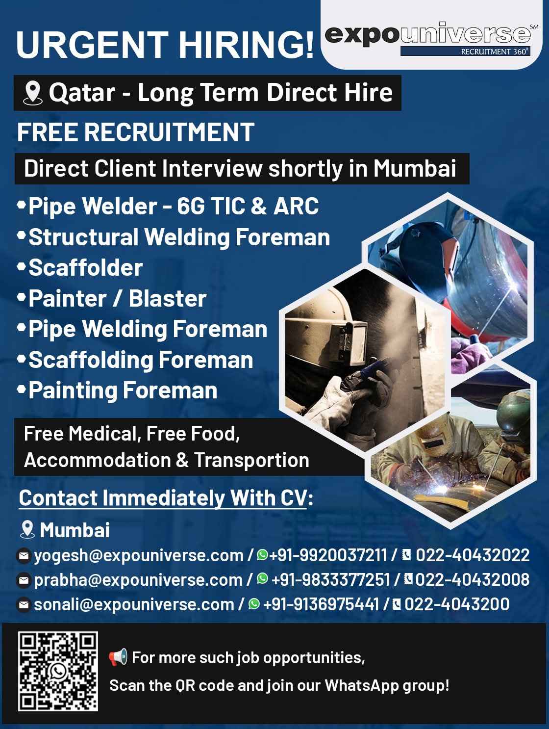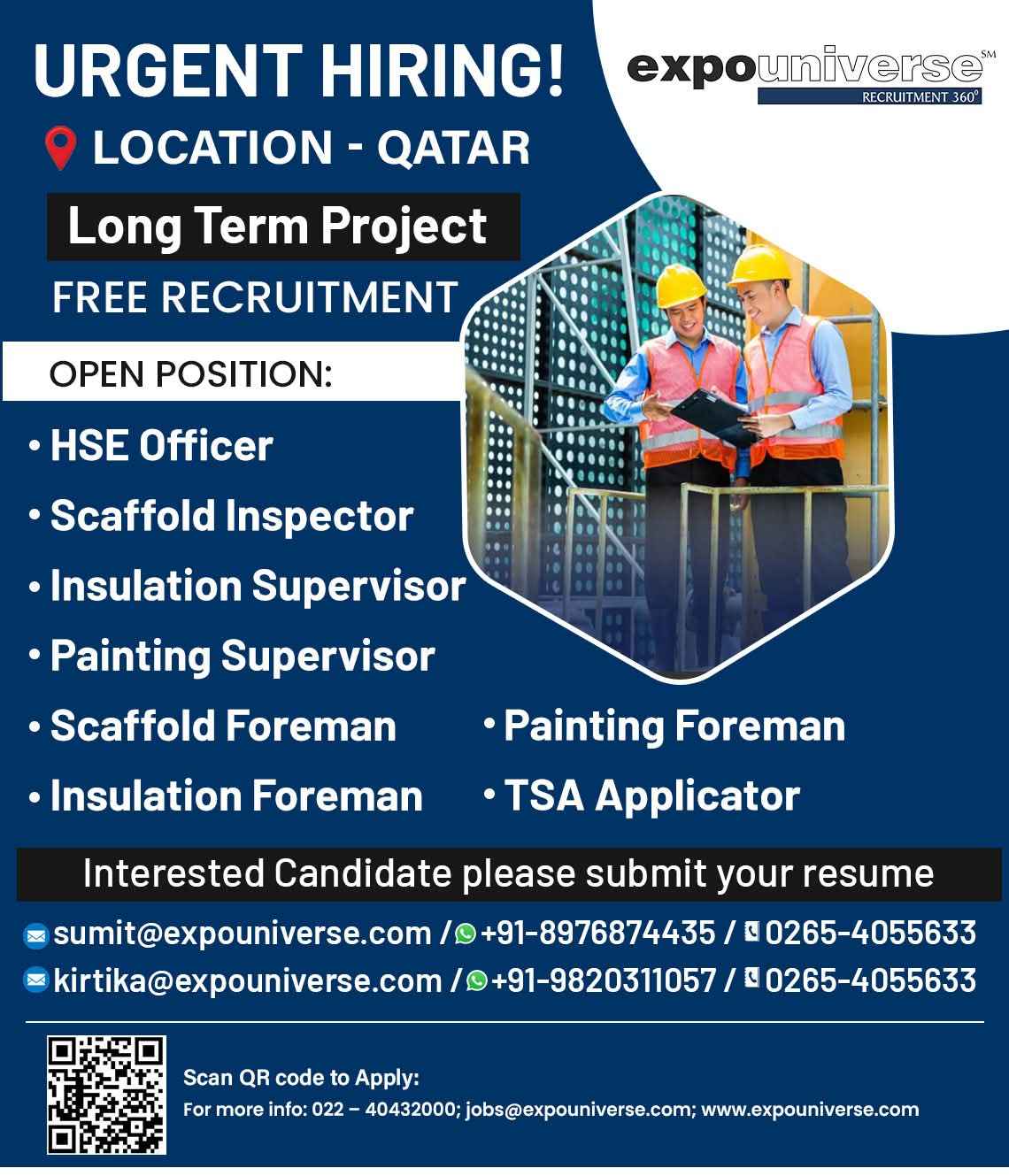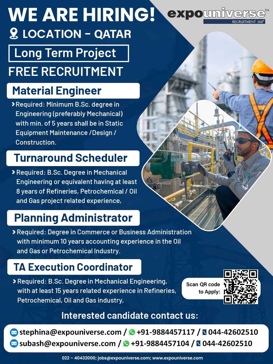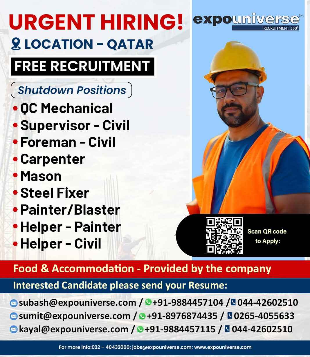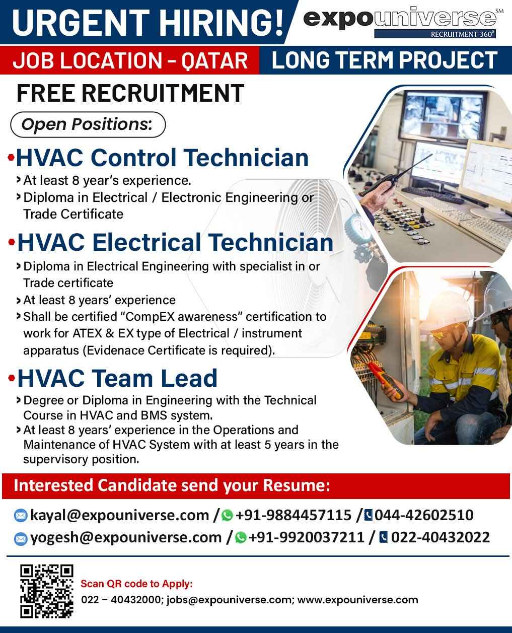 Hiring For Qatar! expouniverse FREE RECRUITMENT