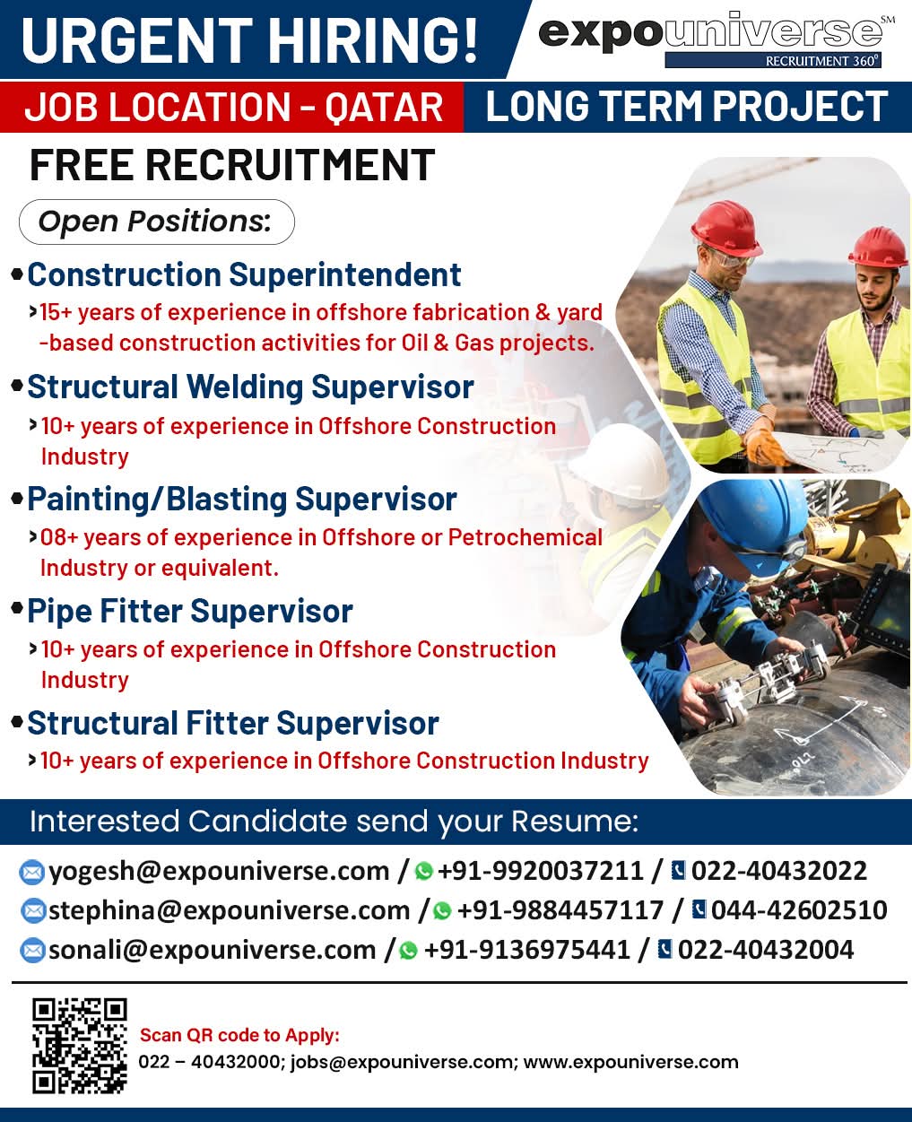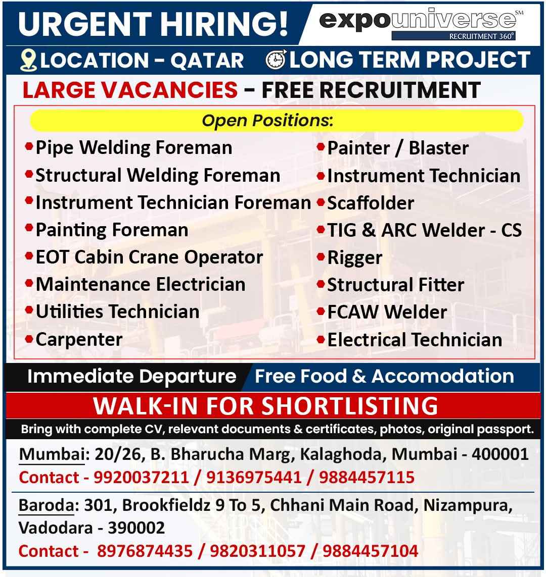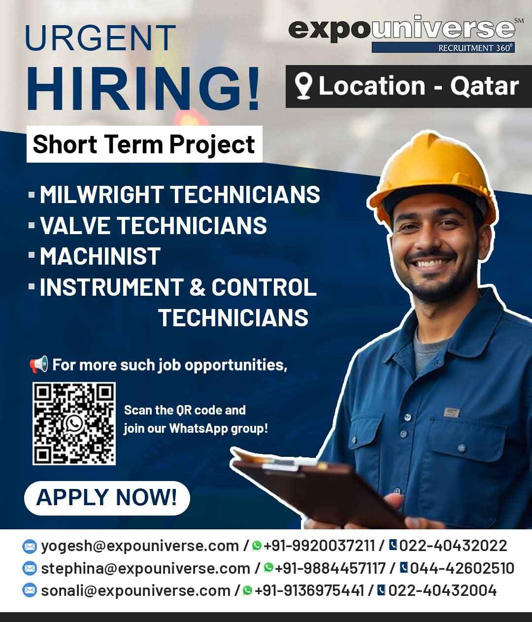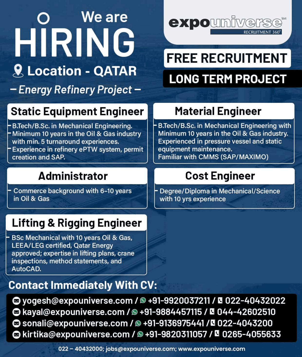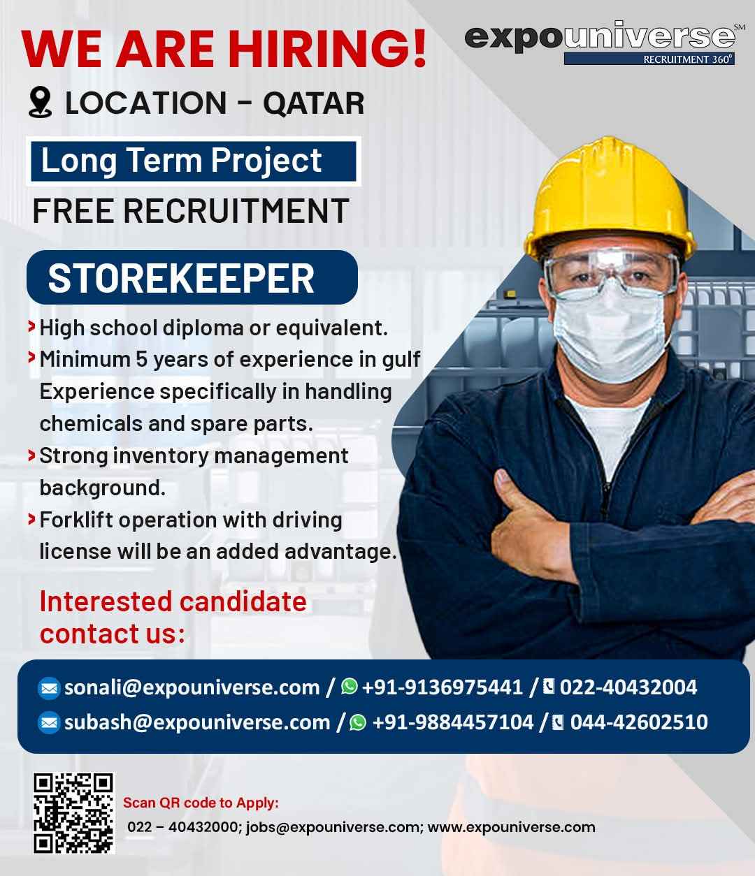 Hiring For Qatar! expouniverse FREE RECRUITMENT