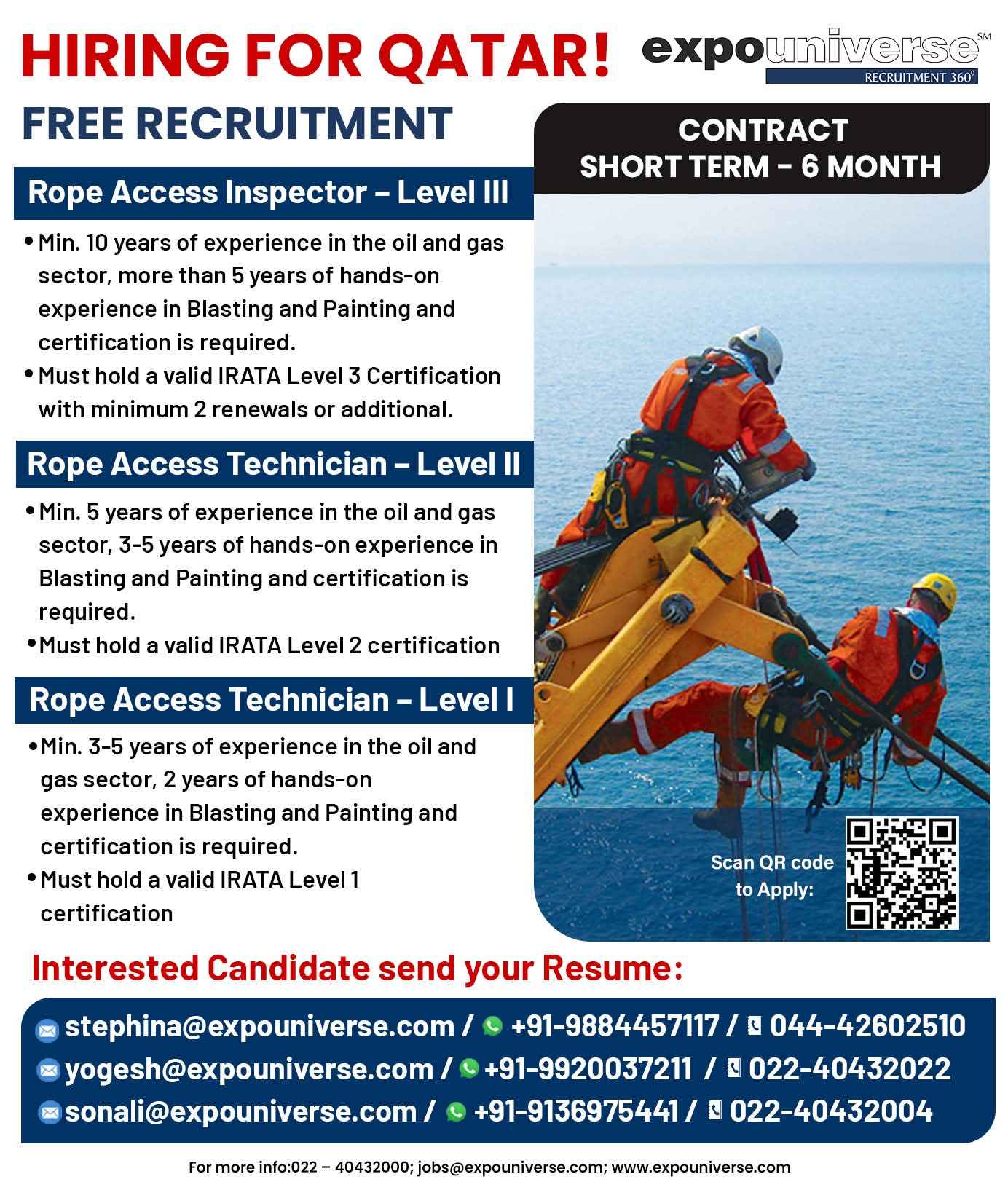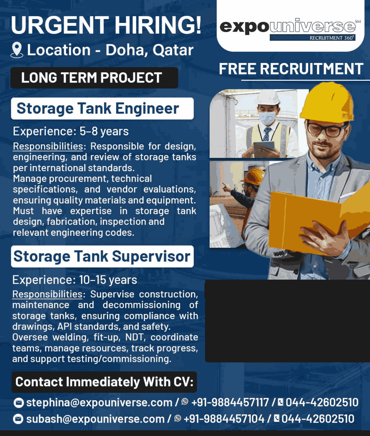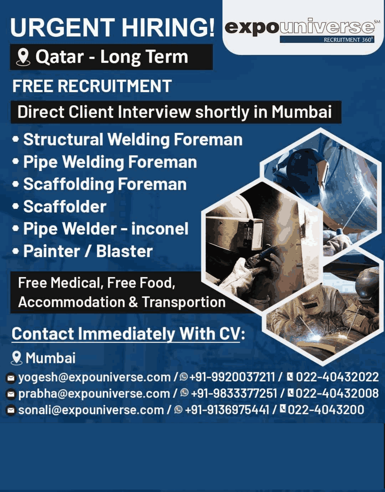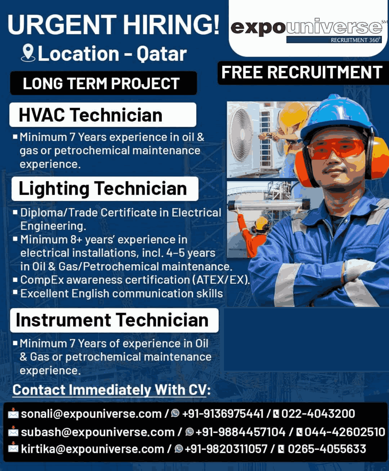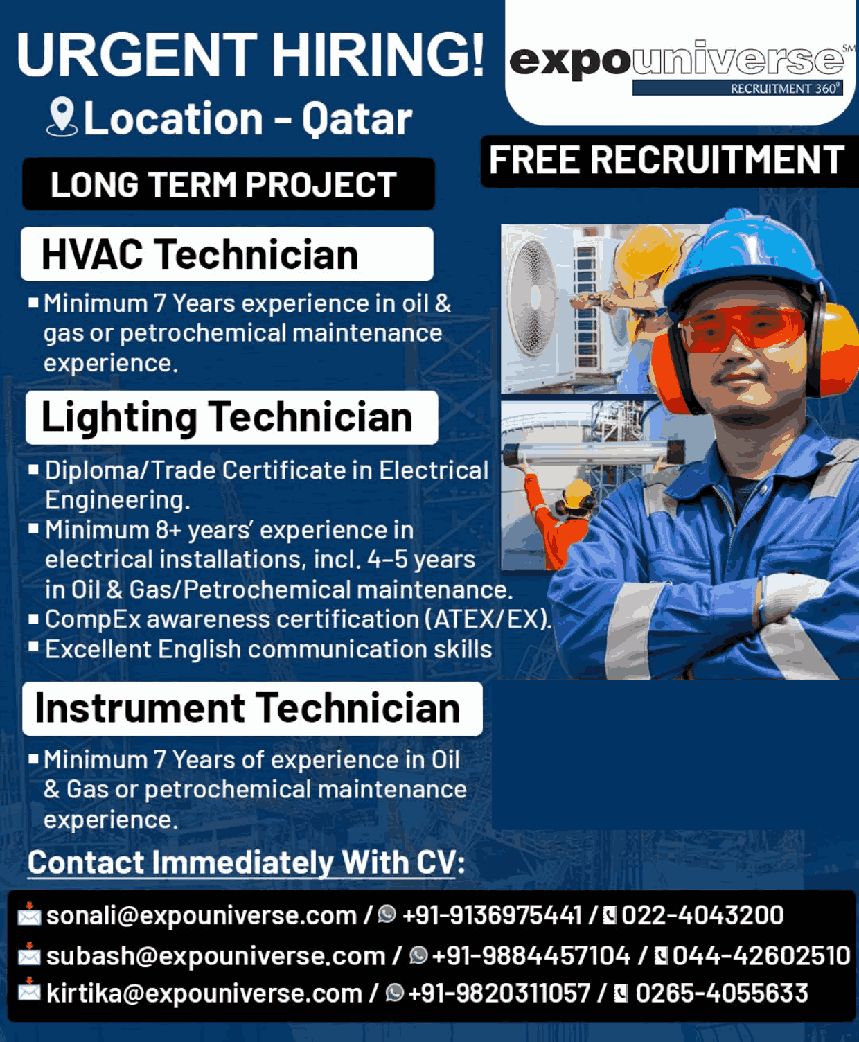 Hiring For Qatar! expouniverse FREE RECRUITMENT