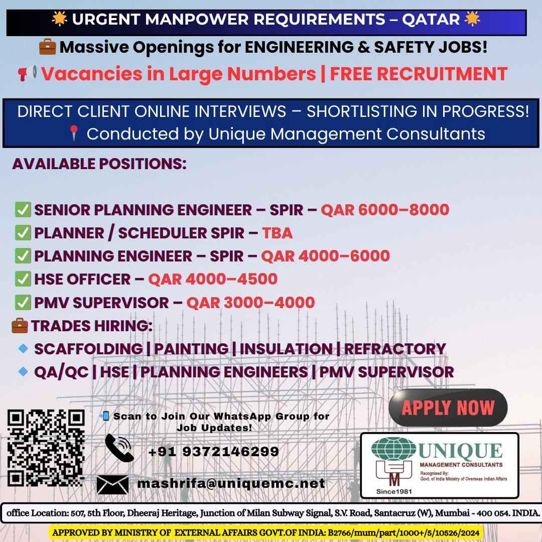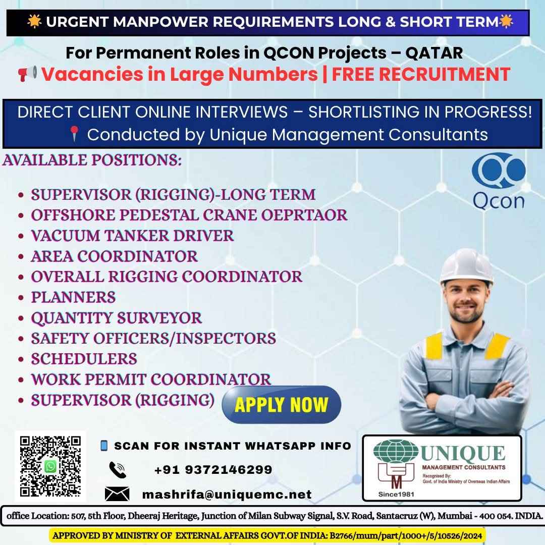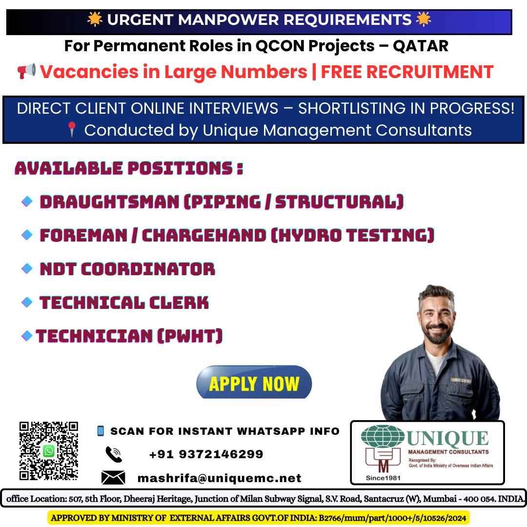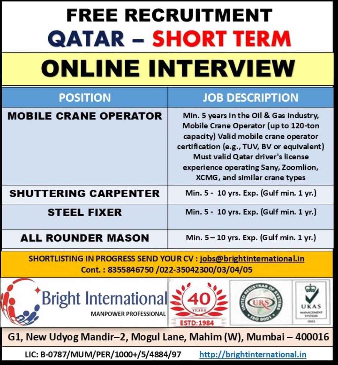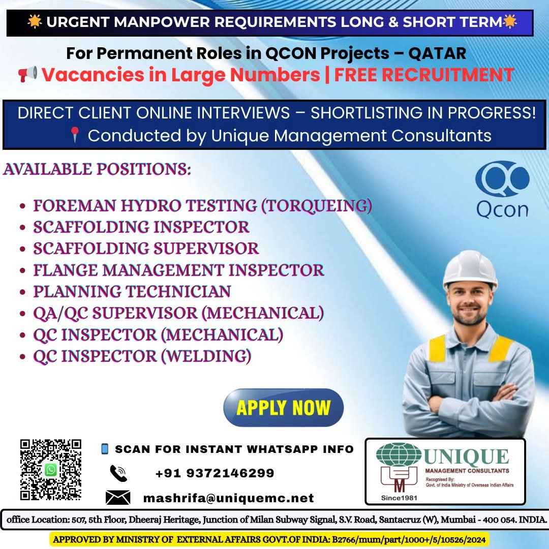 FREE RECRUITMENT** **QATAR LONG TERM PROJECT** DIRECT CLIENT ONLINE INTERVIEWS