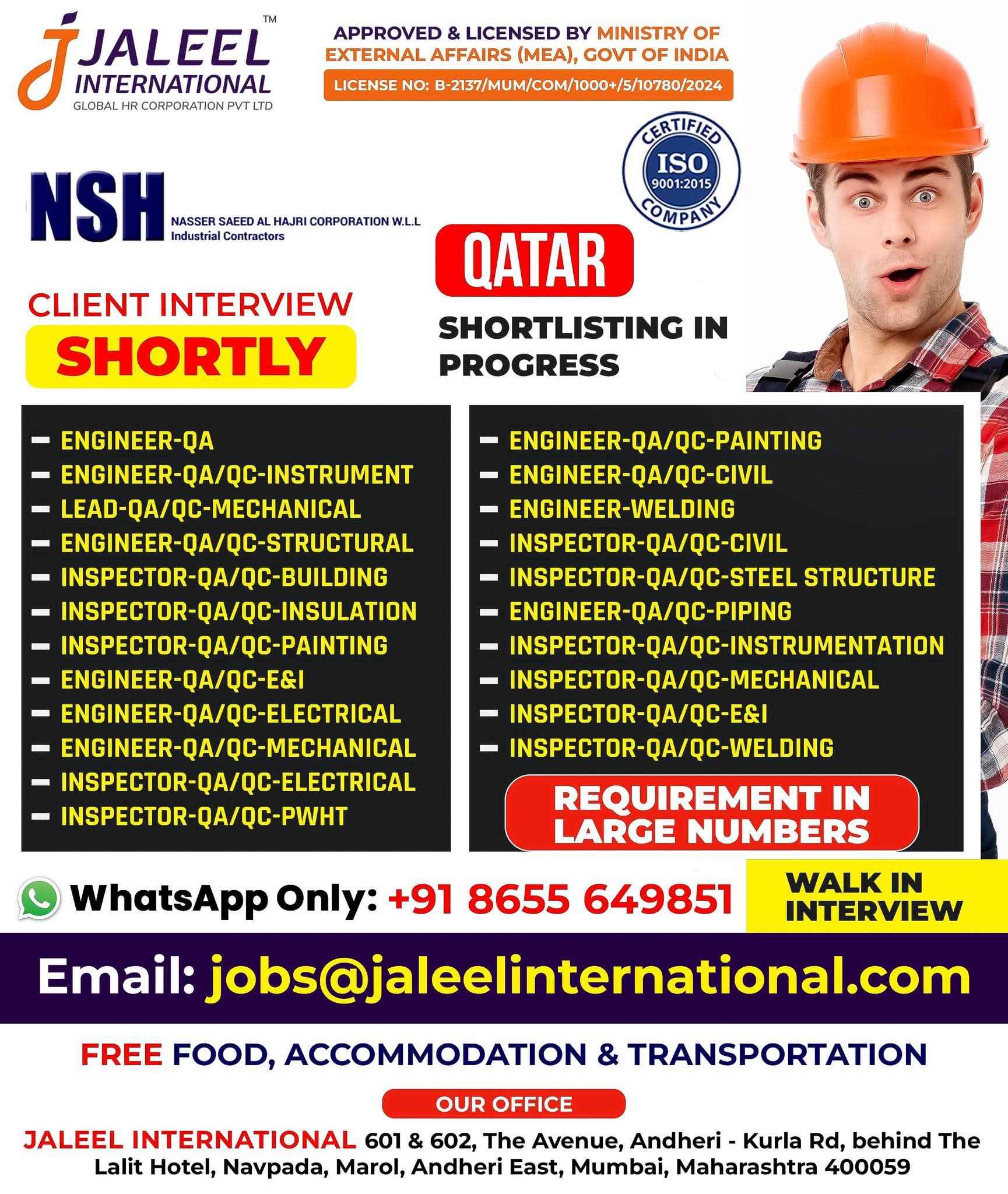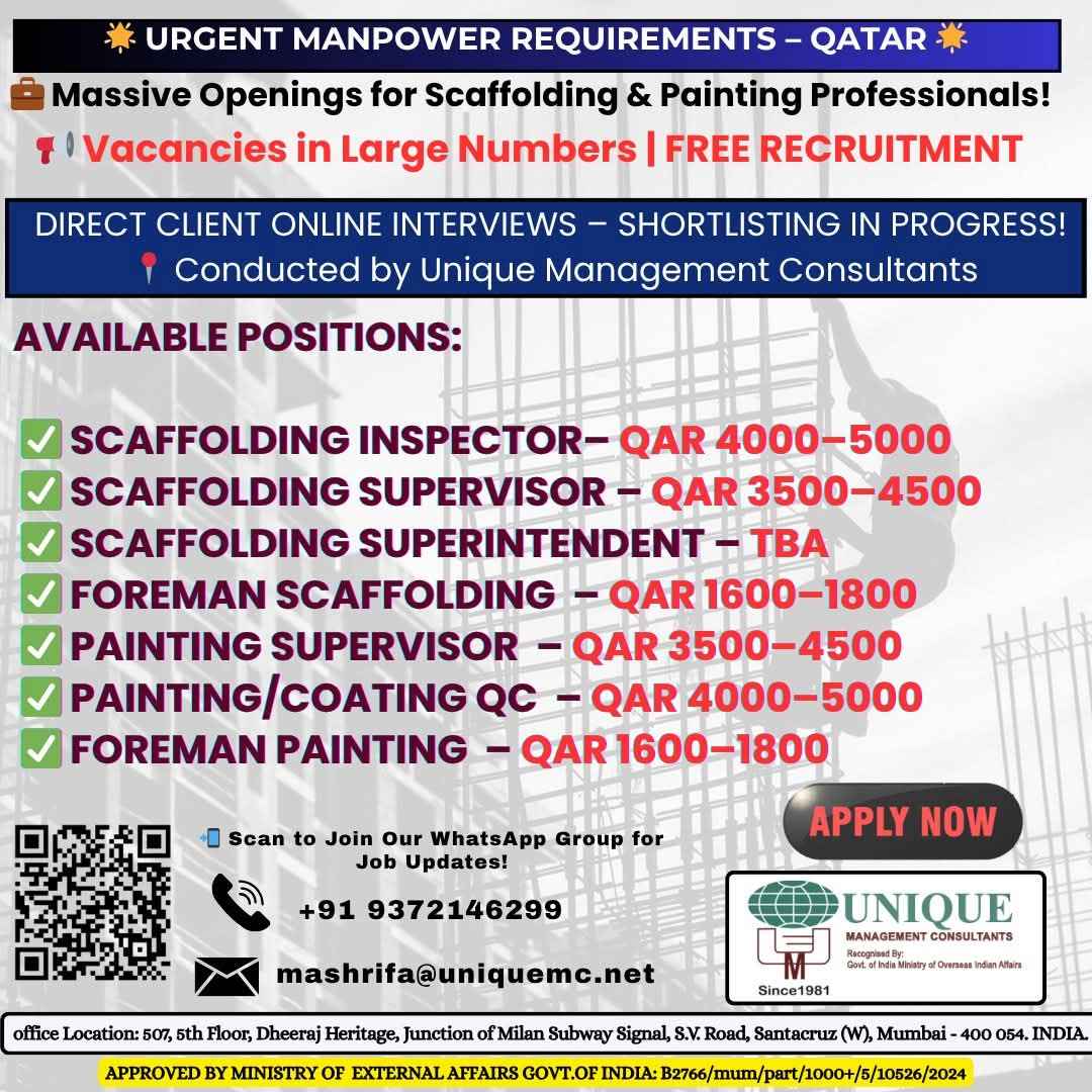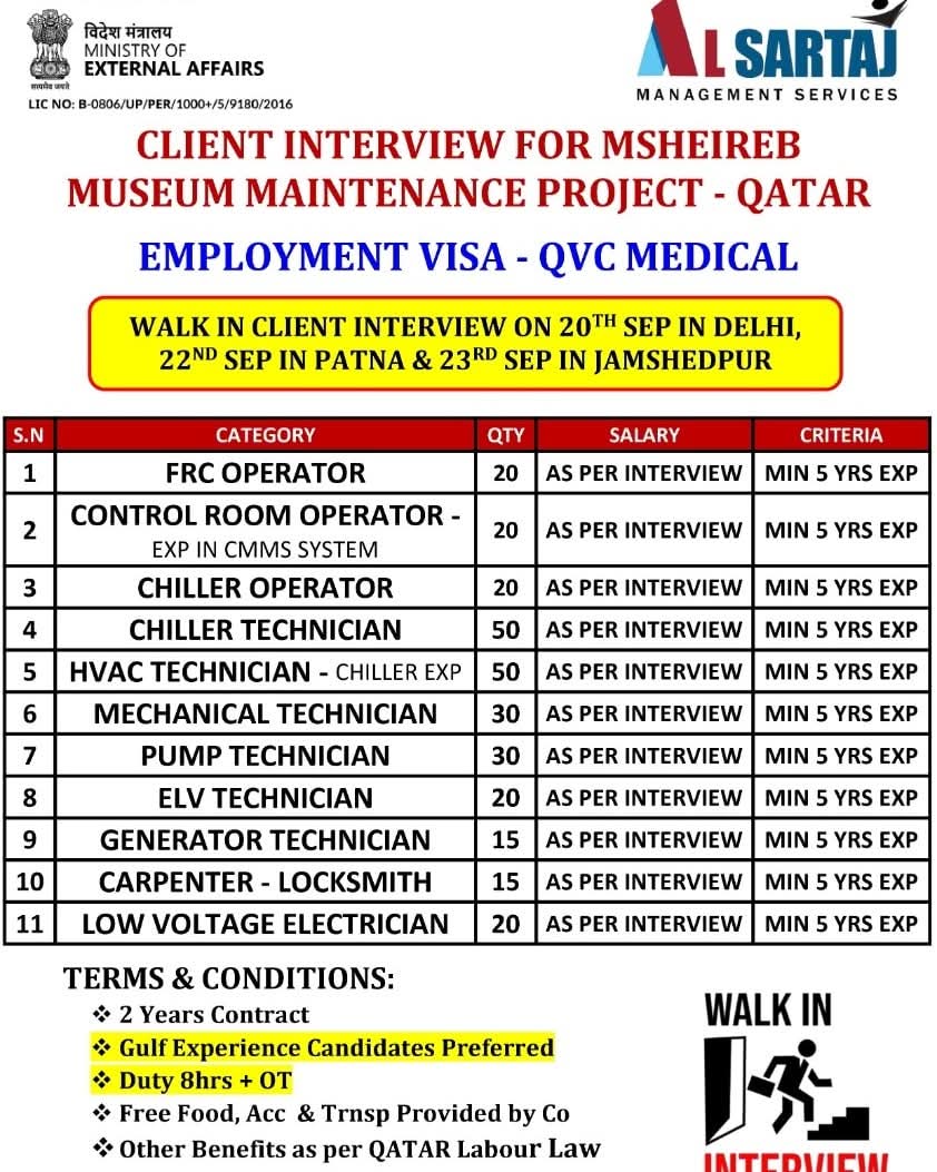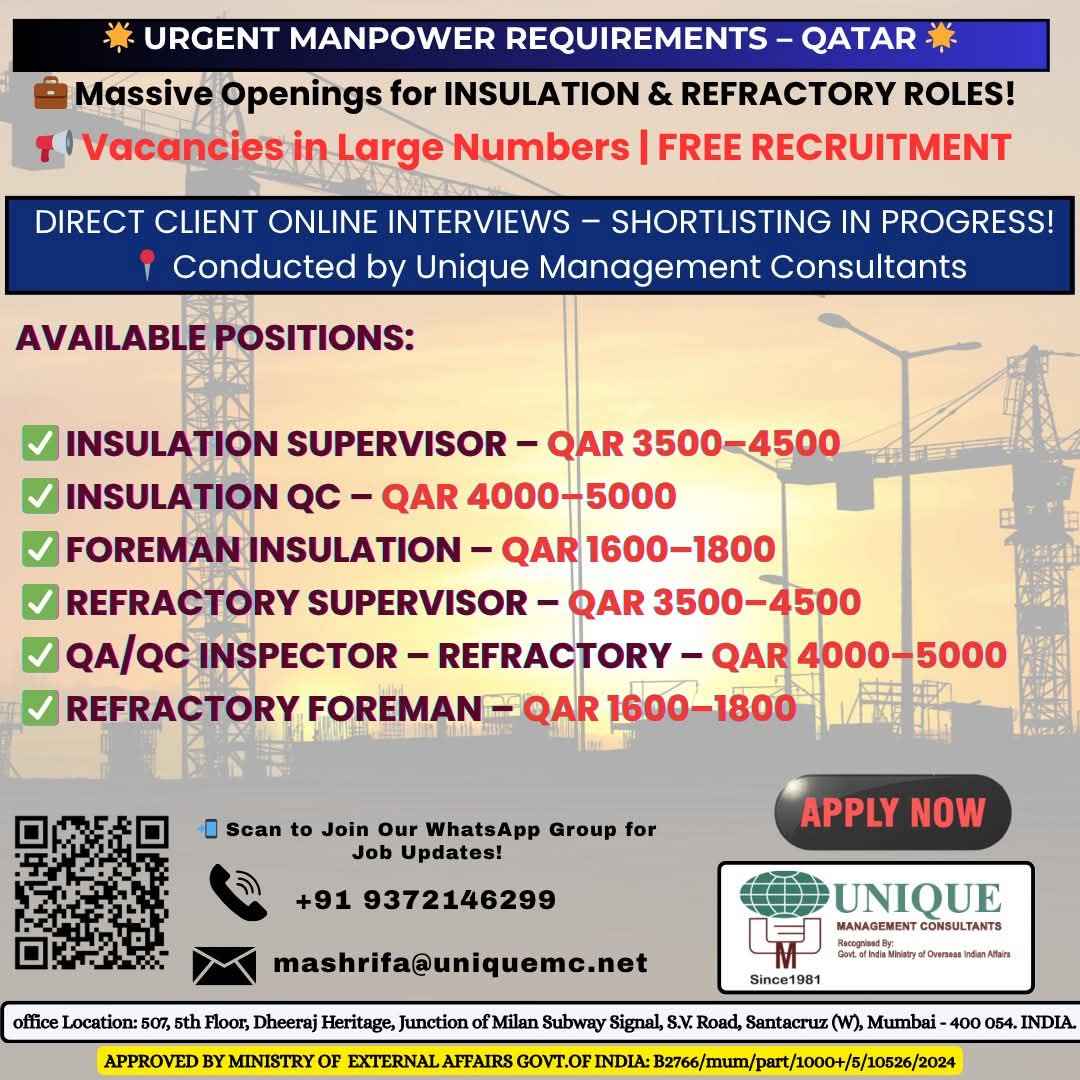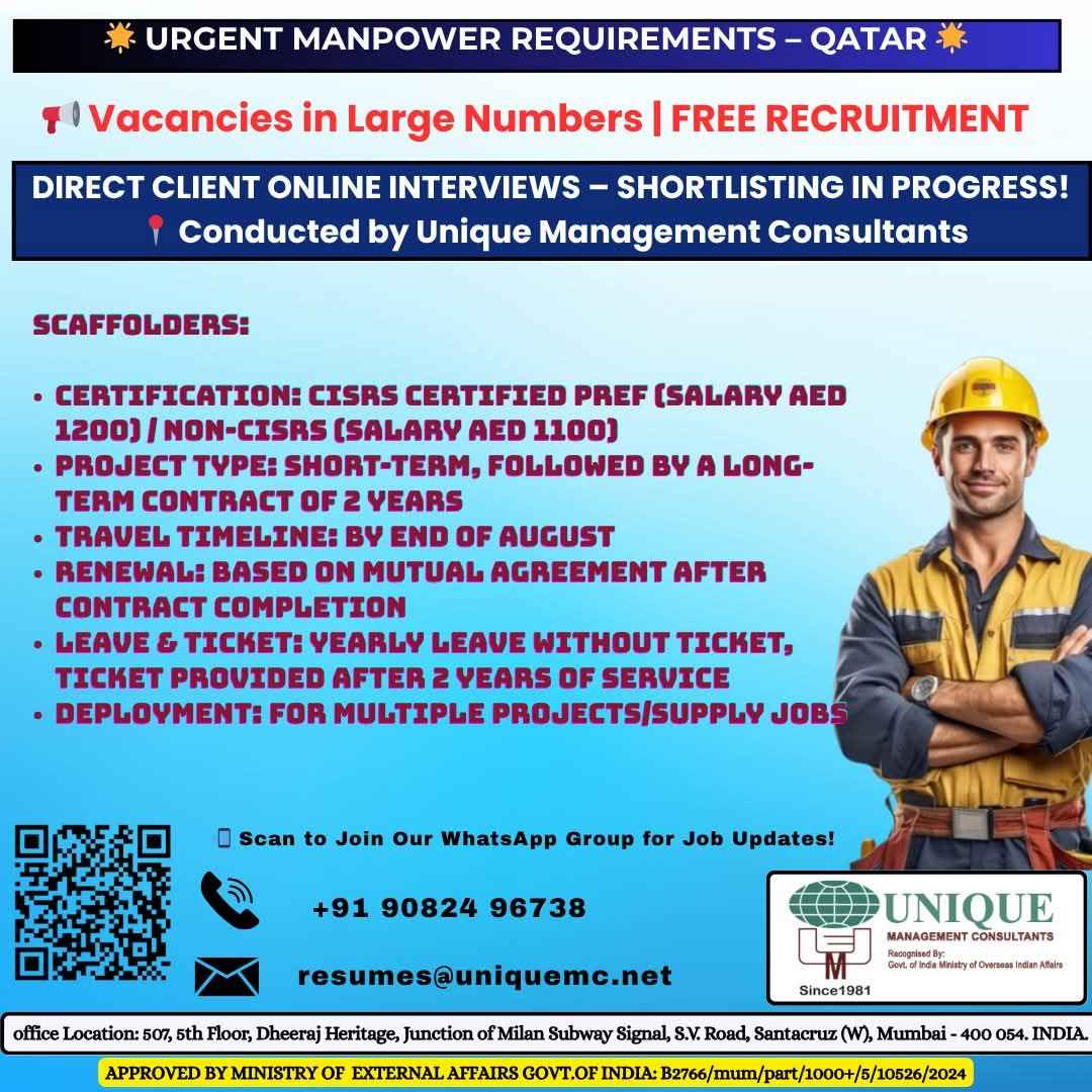 FREE RECRUITMENT** **QATAR LONG TERM PROJECT** DIRECT CLIENT ONLINE INTERVIEWS