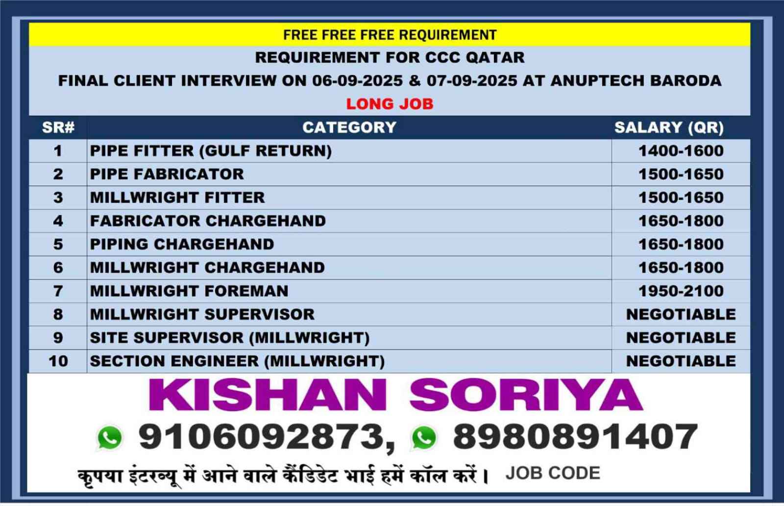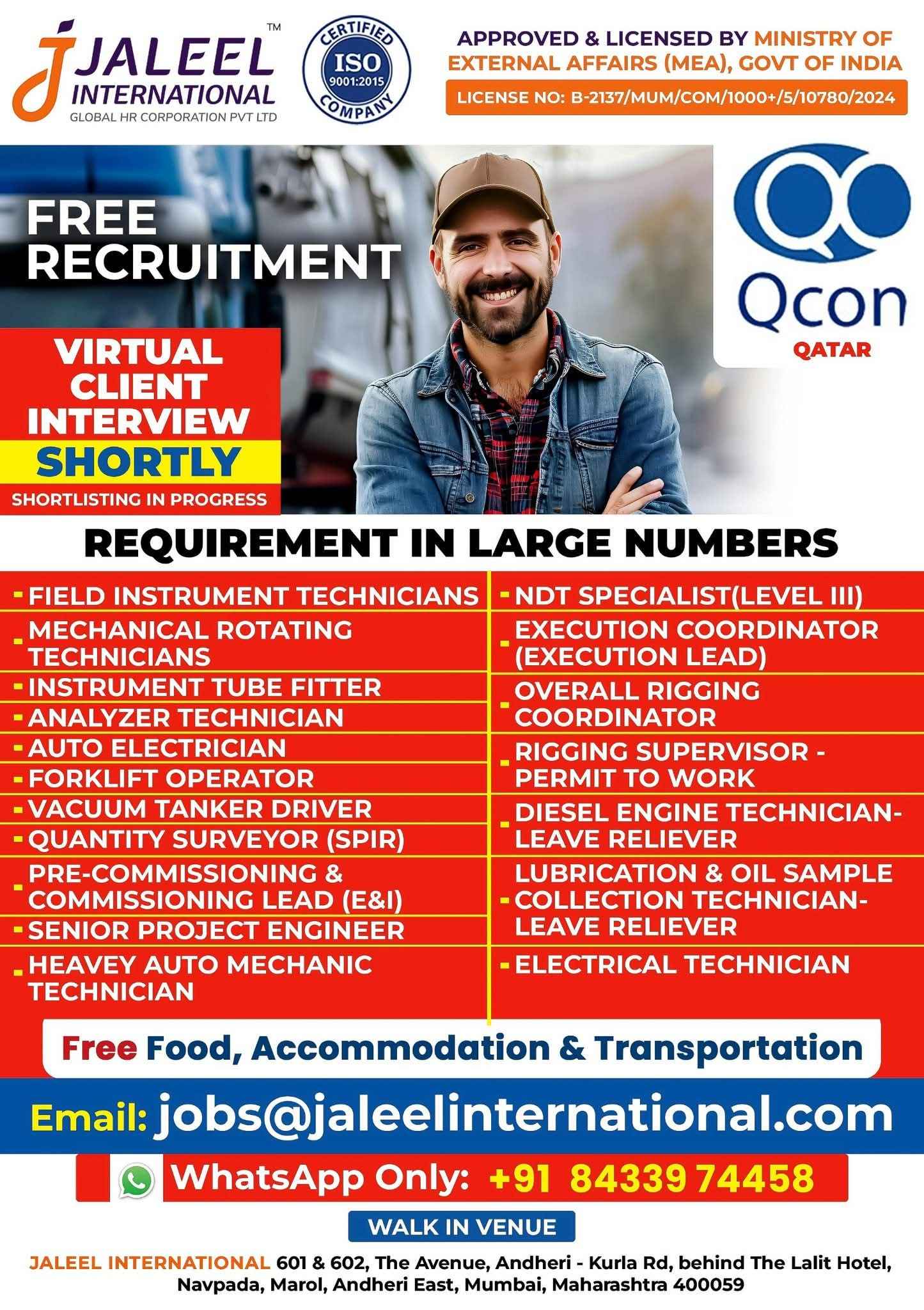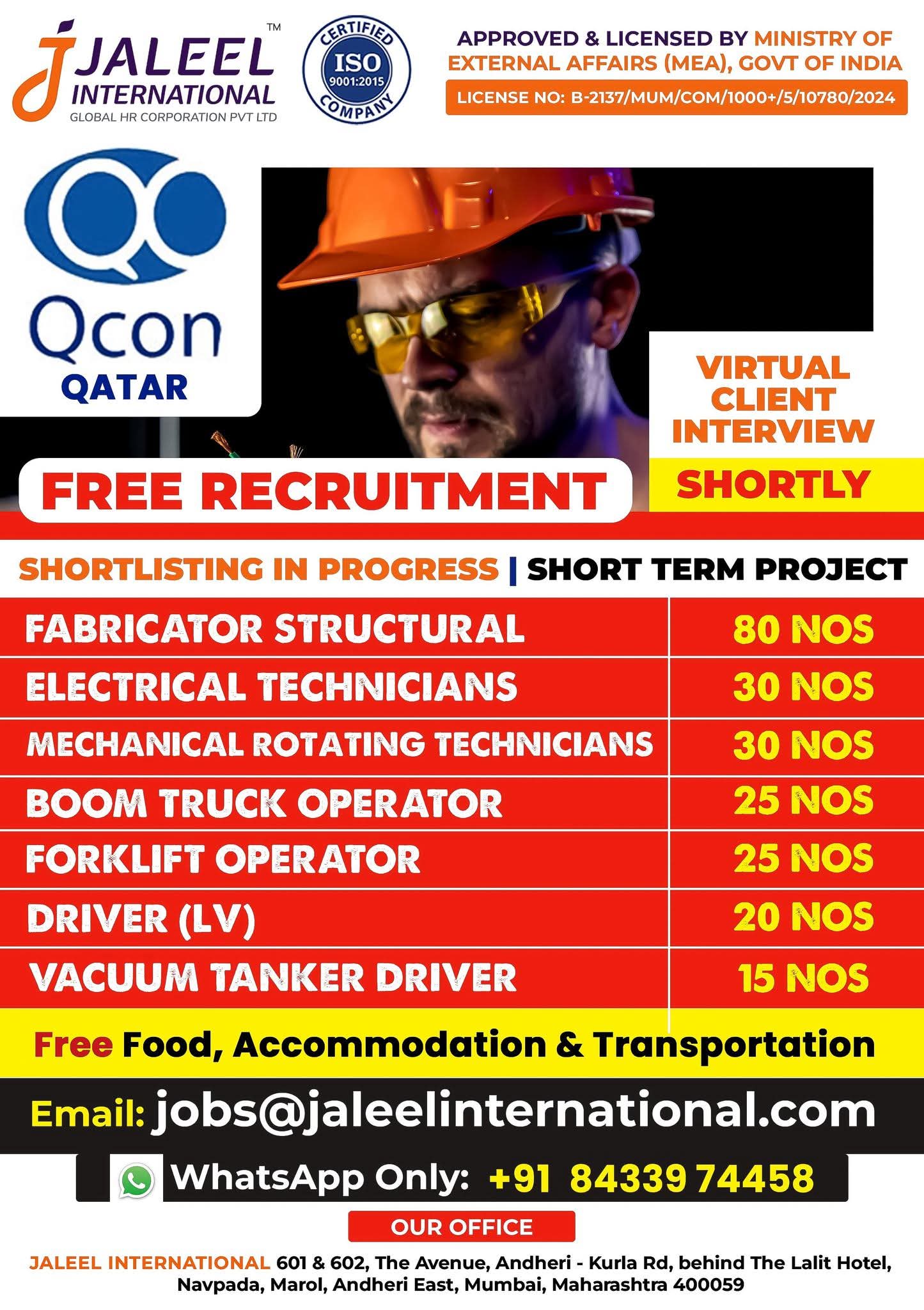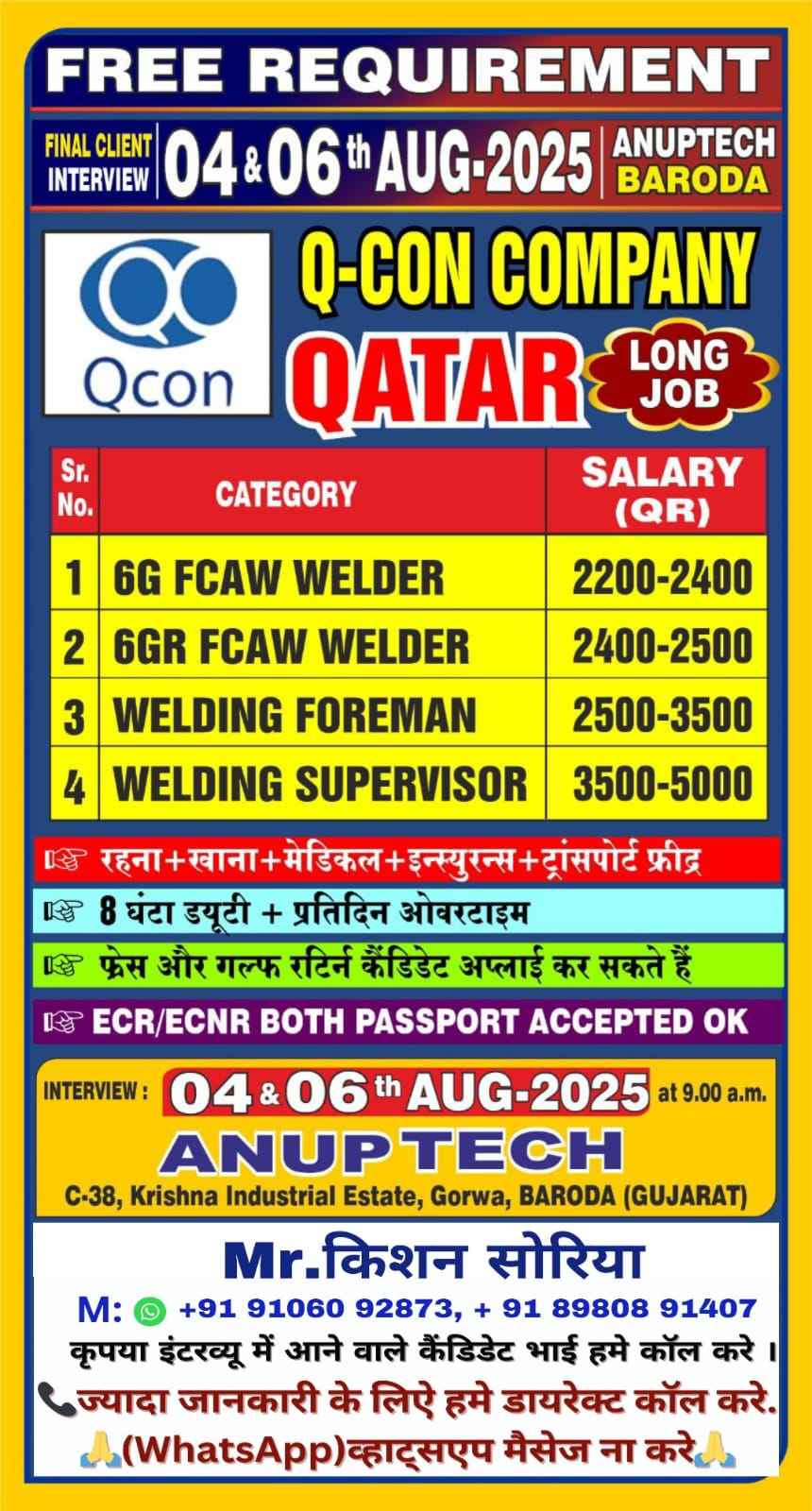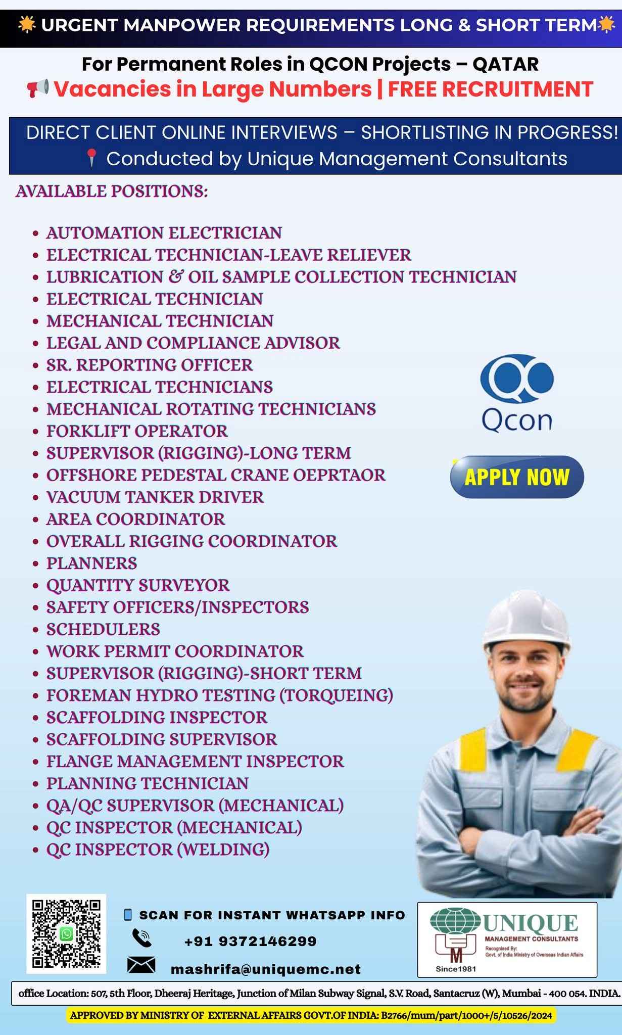 FREE RECRUITMENT** **QATAR LONG TERM PROJECT** DIRECT CLIENT ONLINE INTERVIEWS