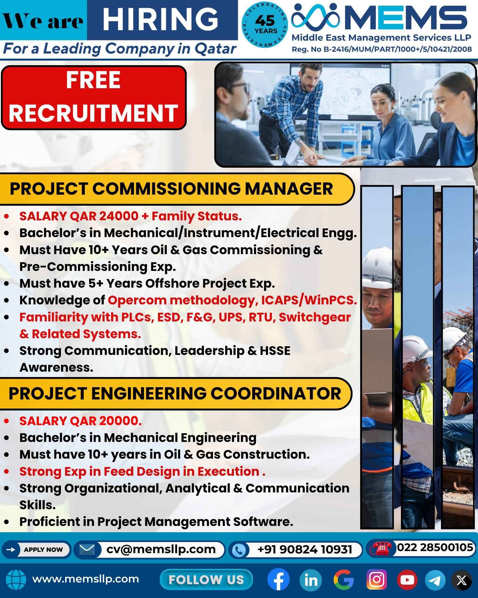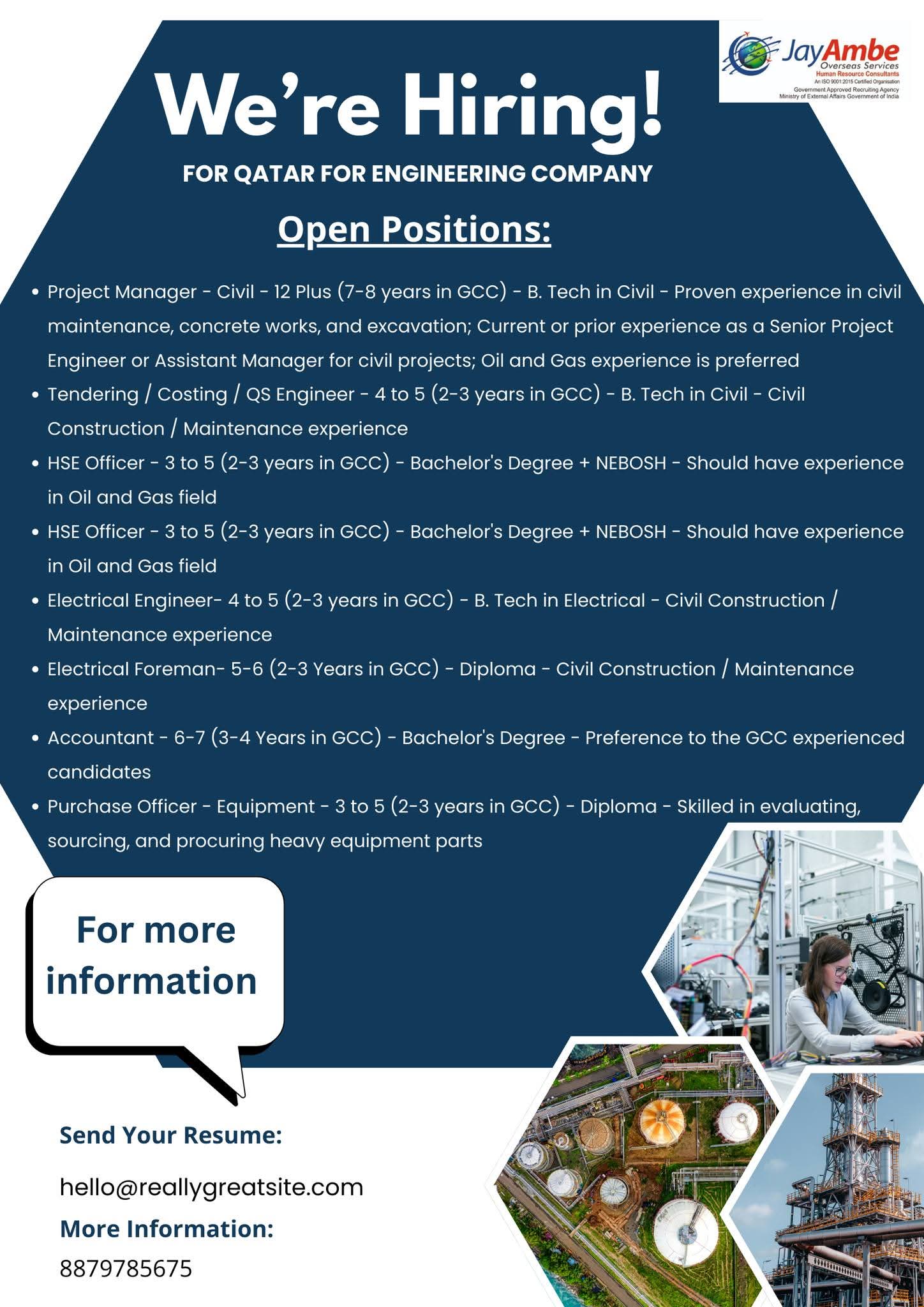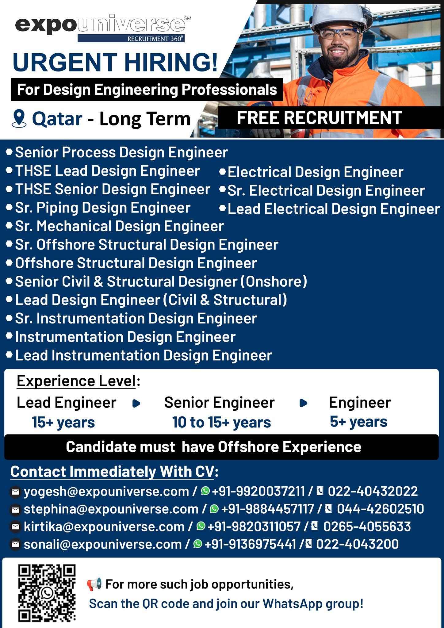 We're Hiring! FOR QATAR FOR ENGINEERING COMPANY