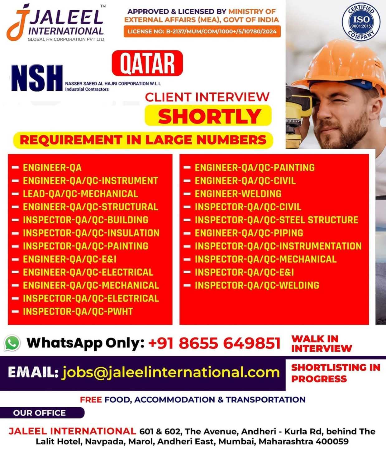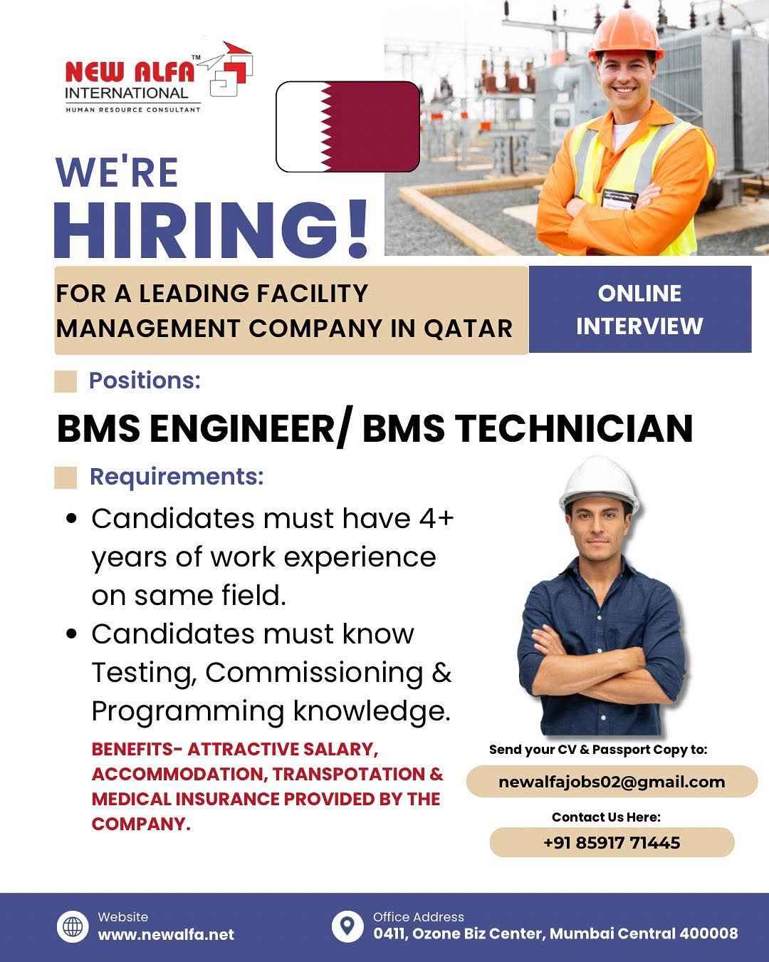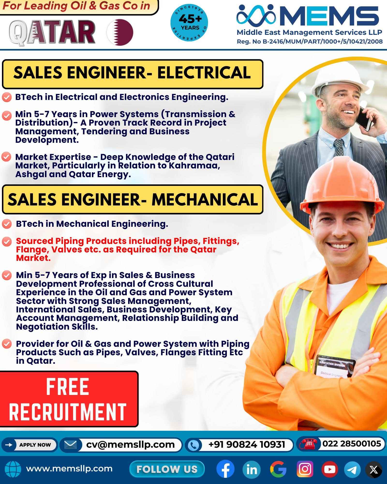 We're Hiring! FOR QATAR FOR ENGINEERING COMPANY