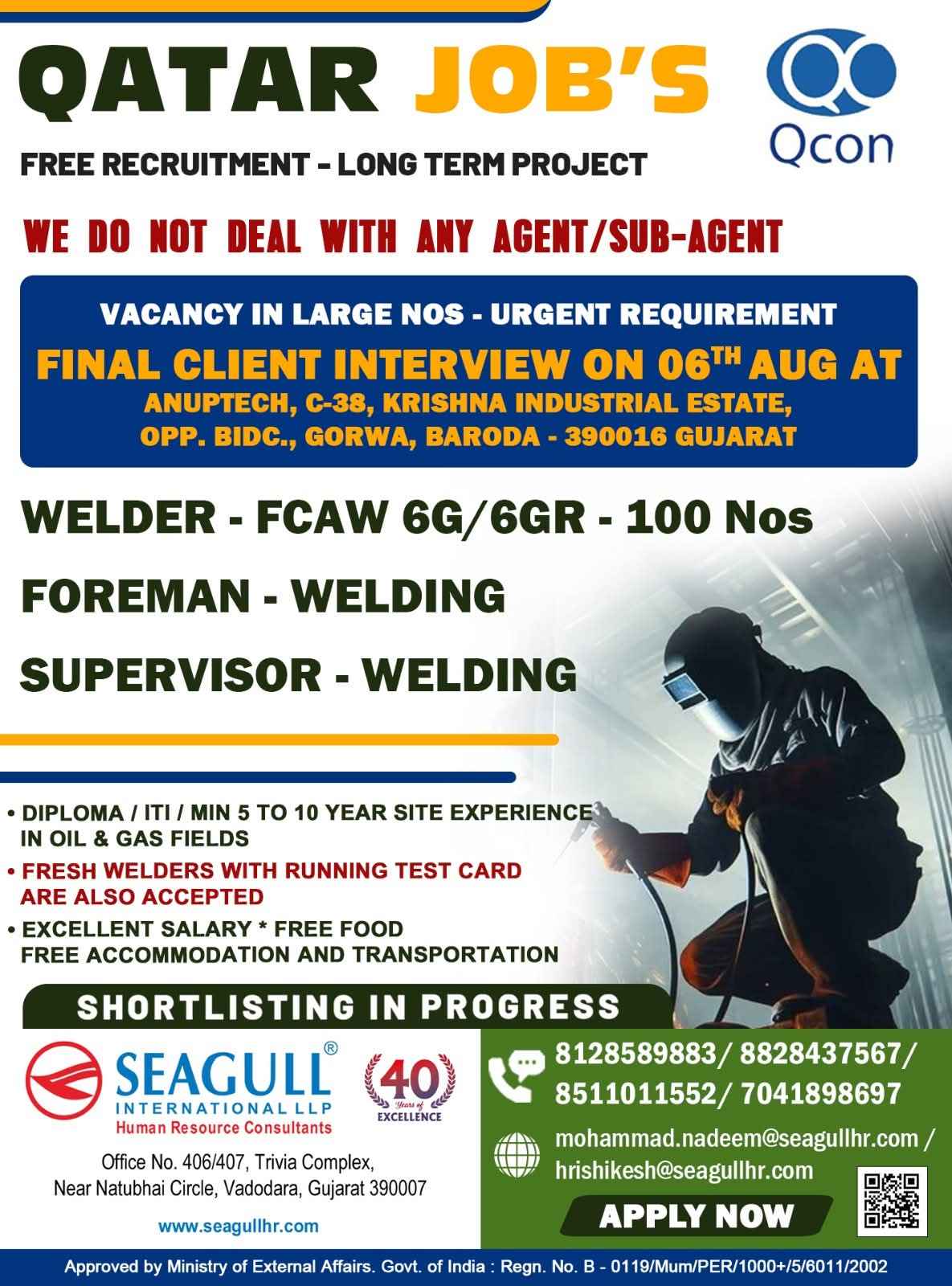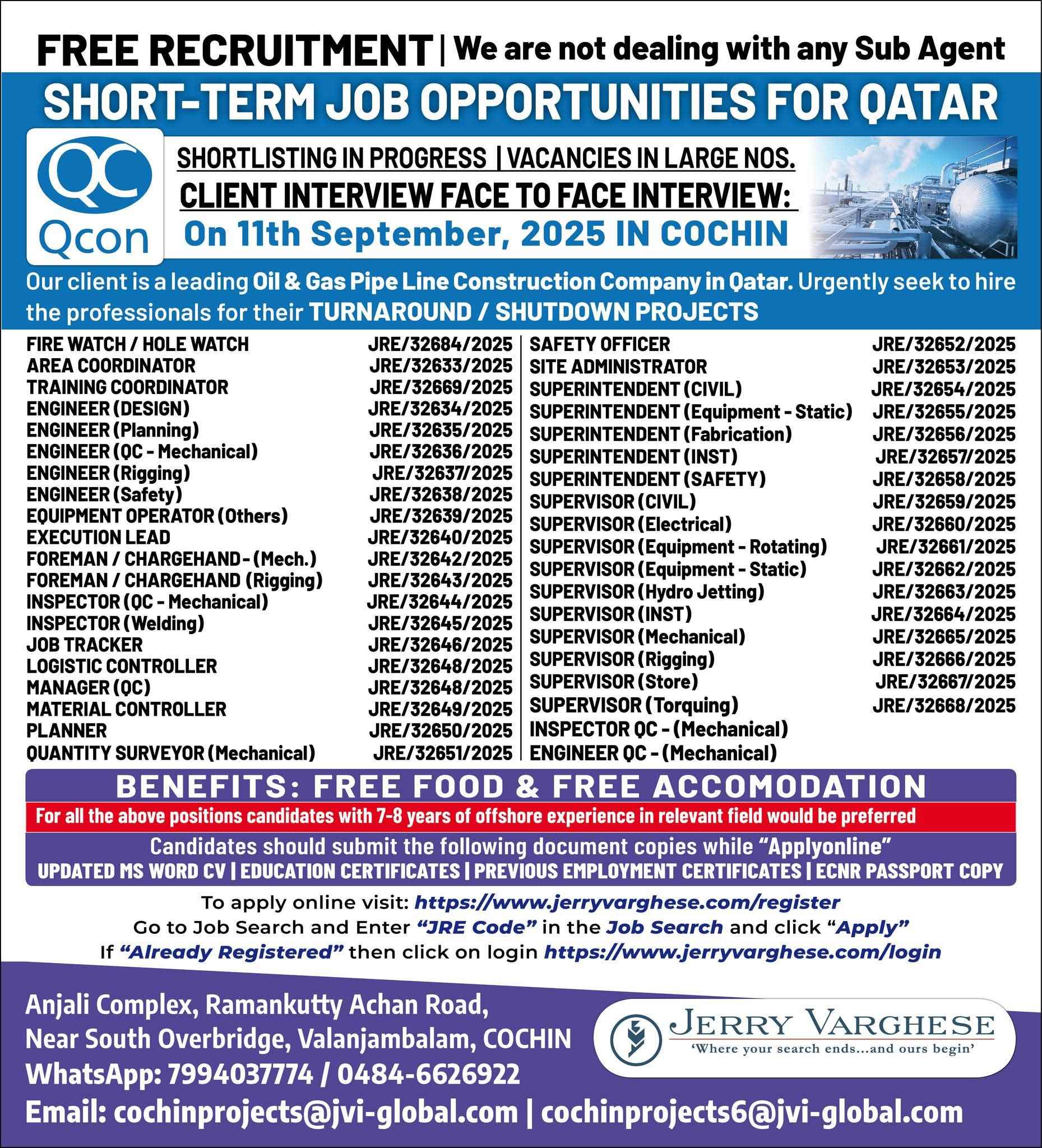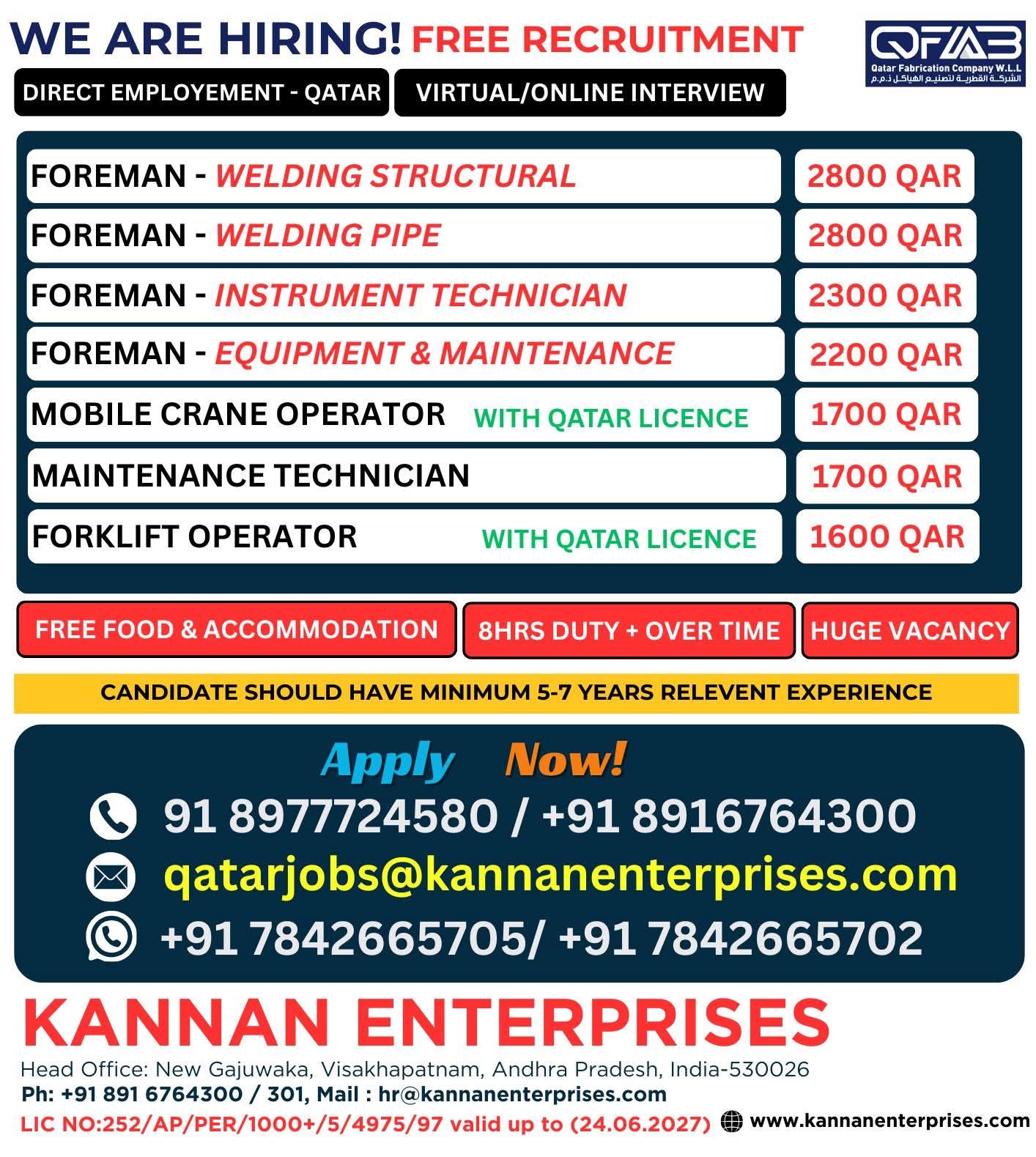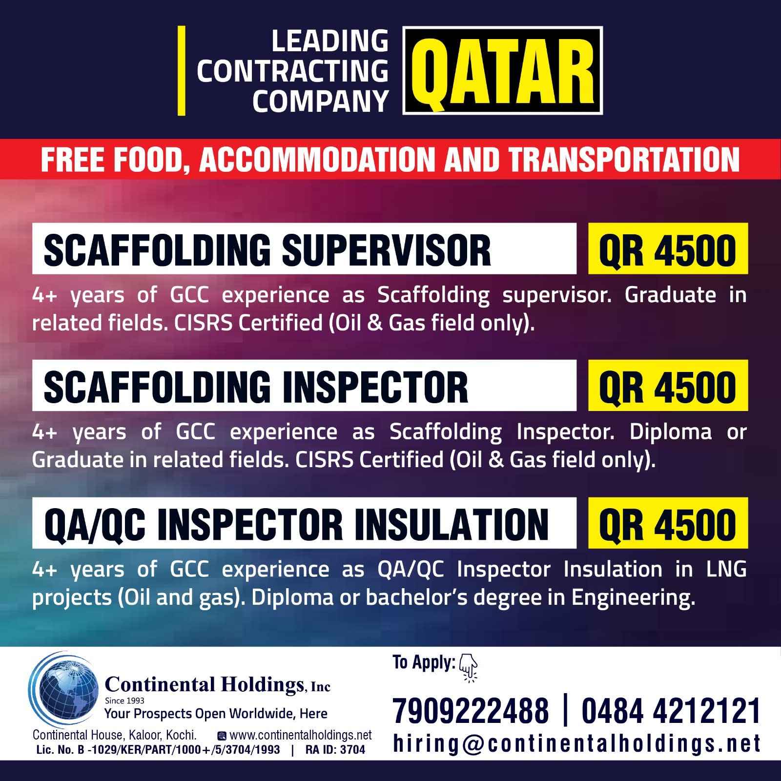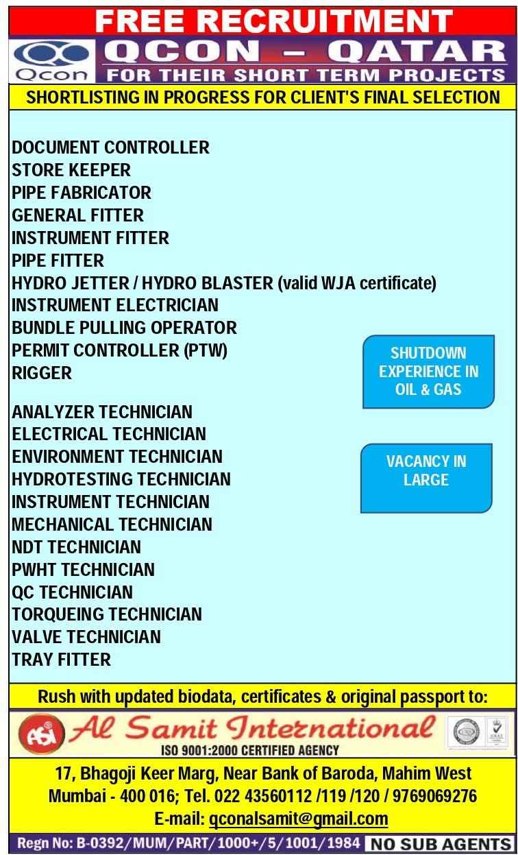 QATAR JOB'S A leading Contracting Company (Oil & Gas) WE DO NOT DEAL WITH ANY AGENT/SUB-AGENT