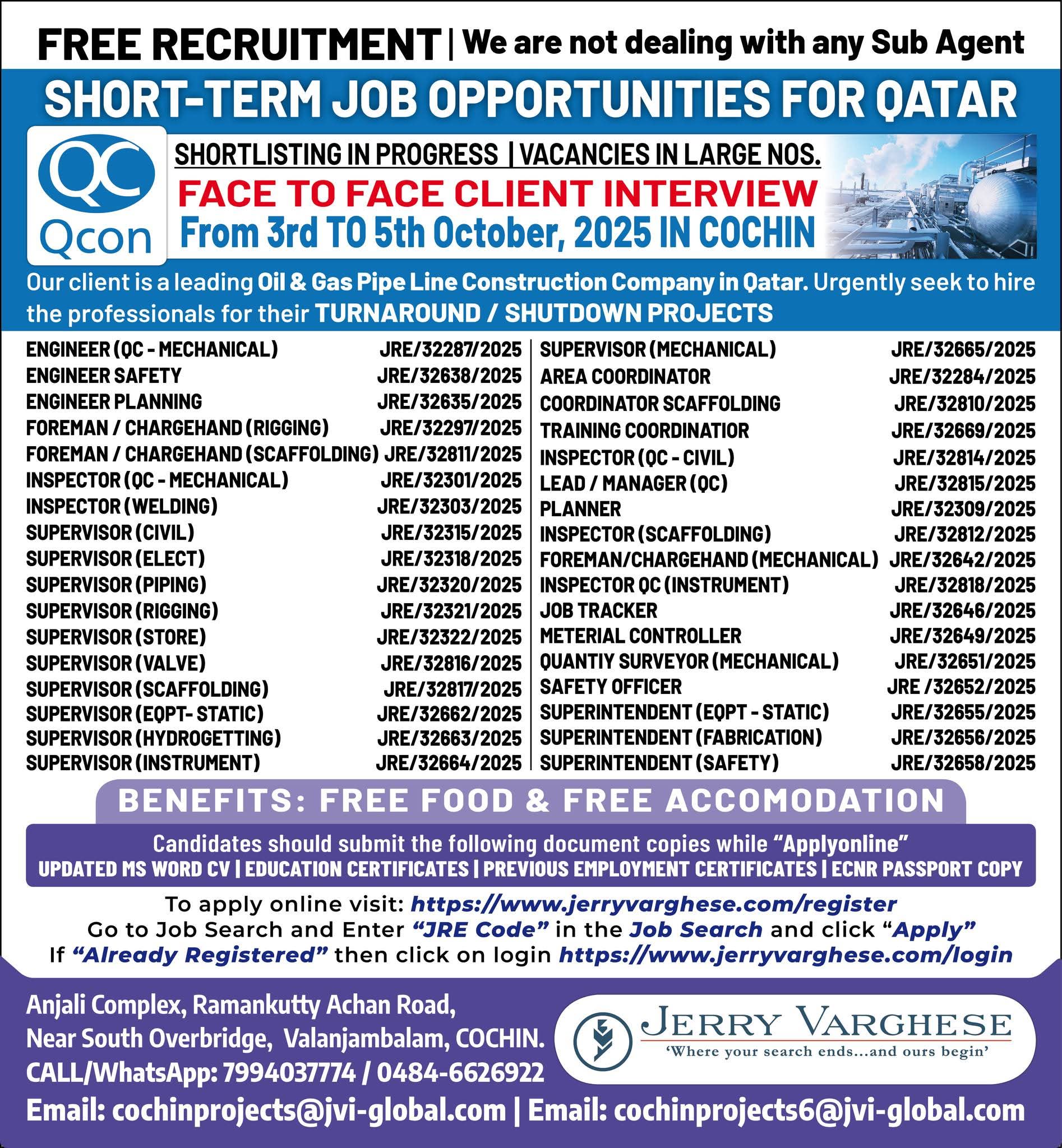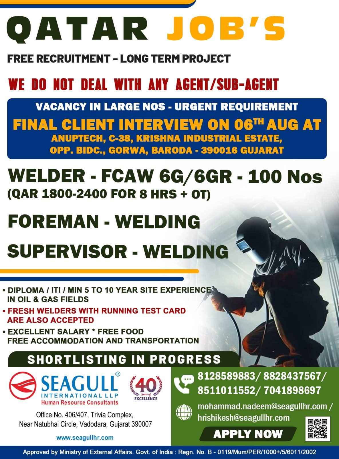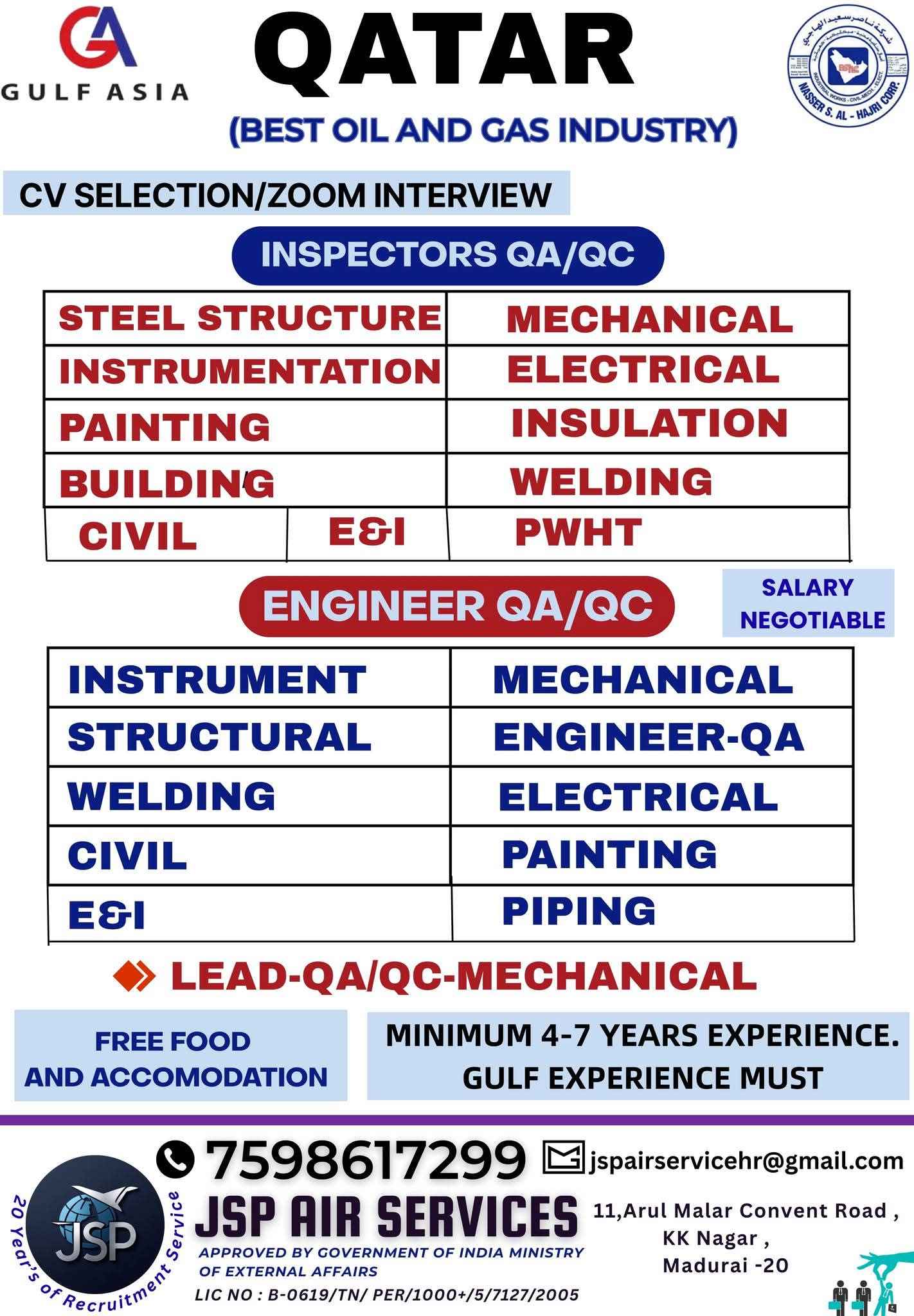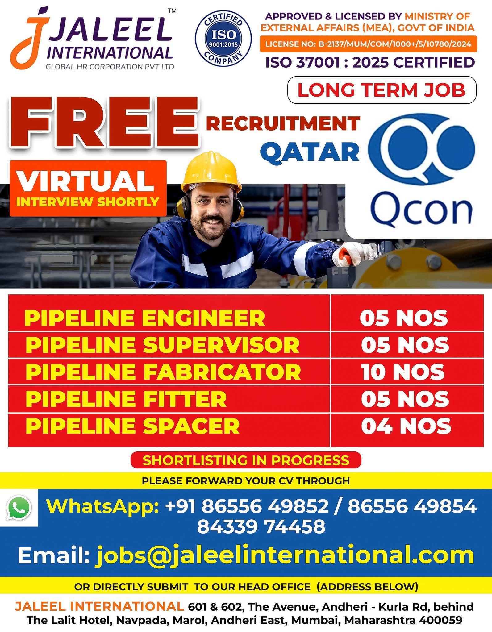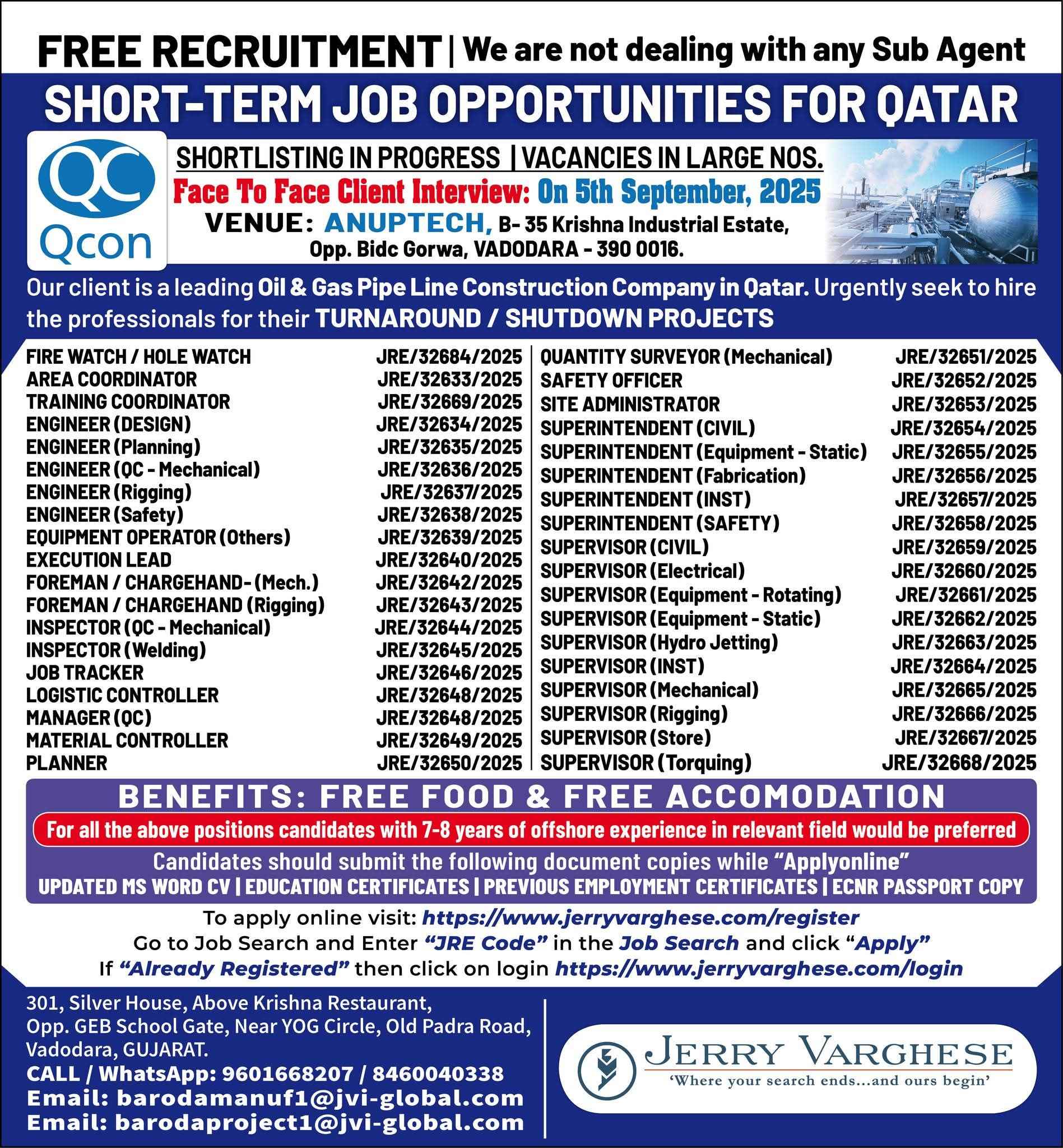 QATAR JOB'S A leading Contracting Company (Oil & Gas) WE DO NOT DEAL WITH ANY AGENT/SUB-AGENT
