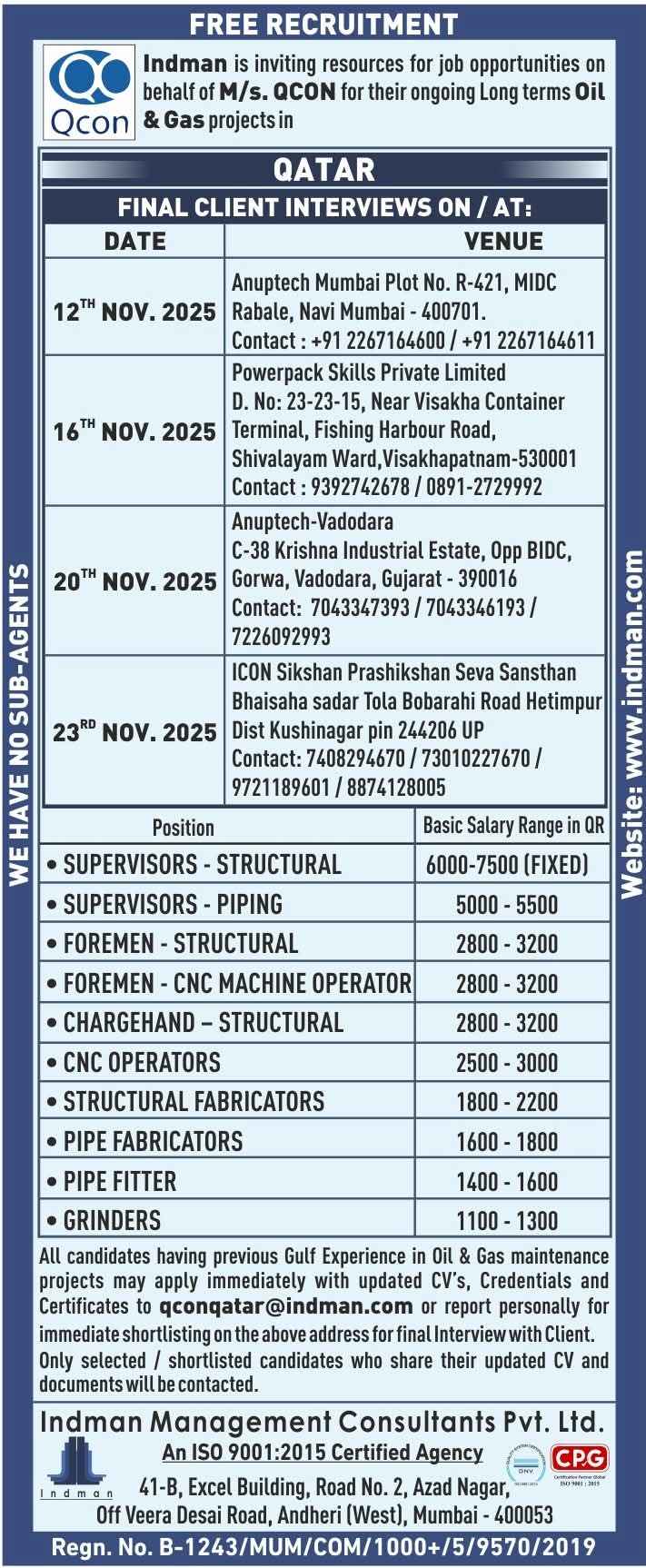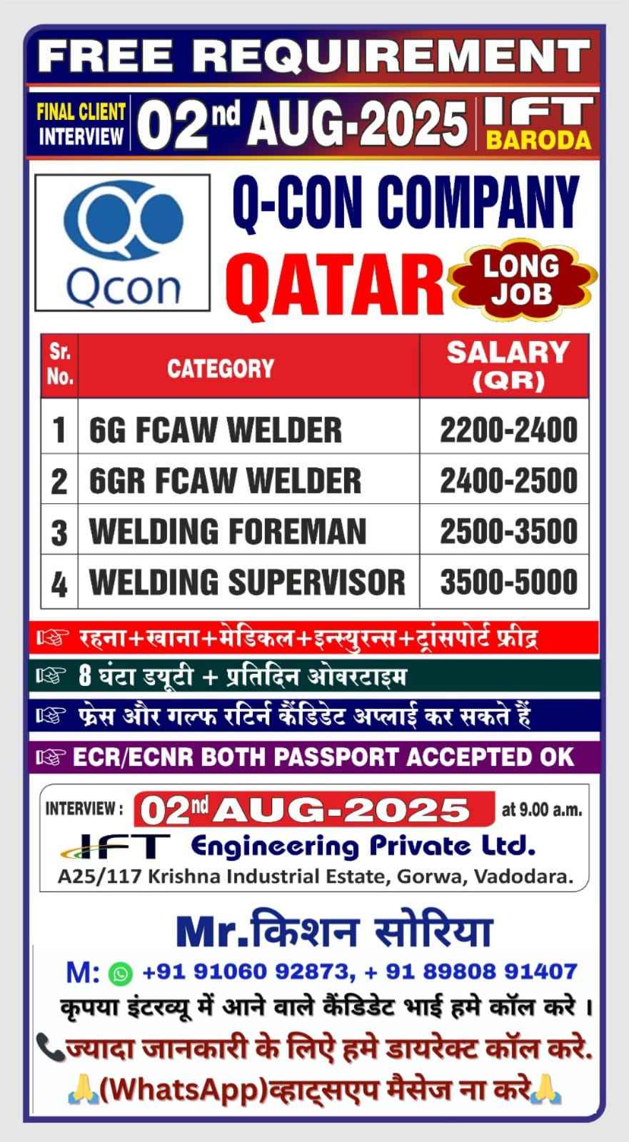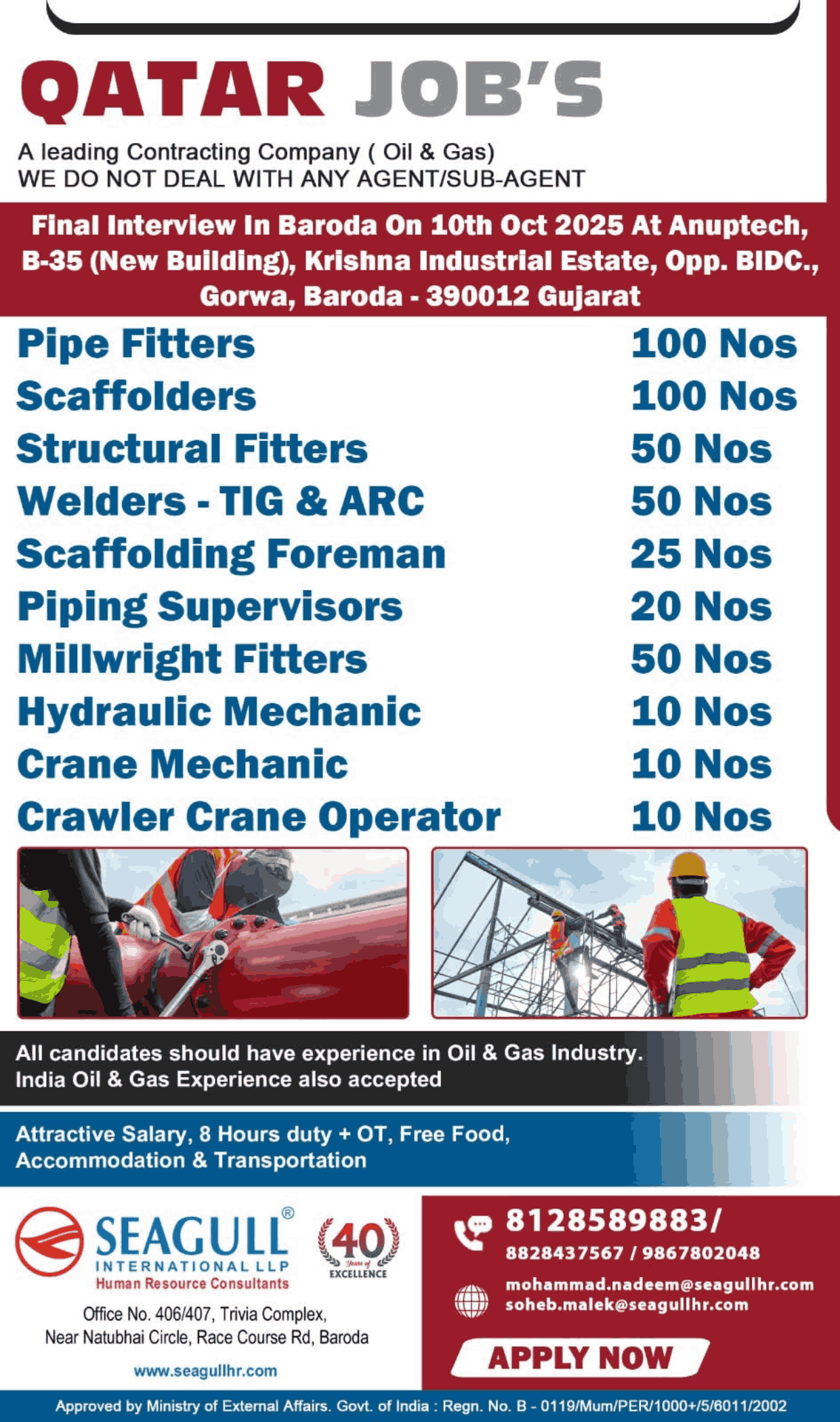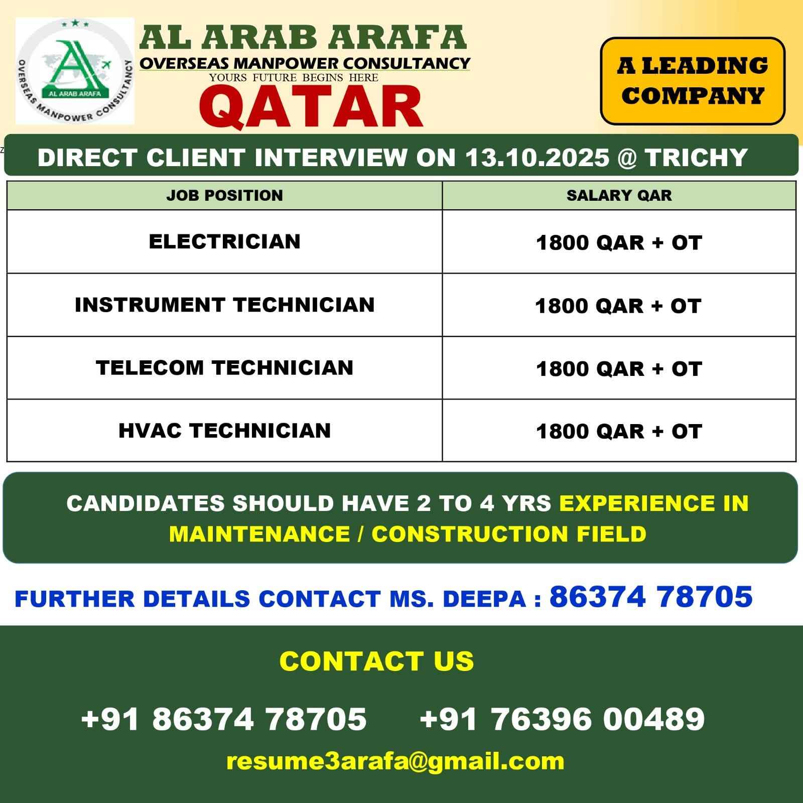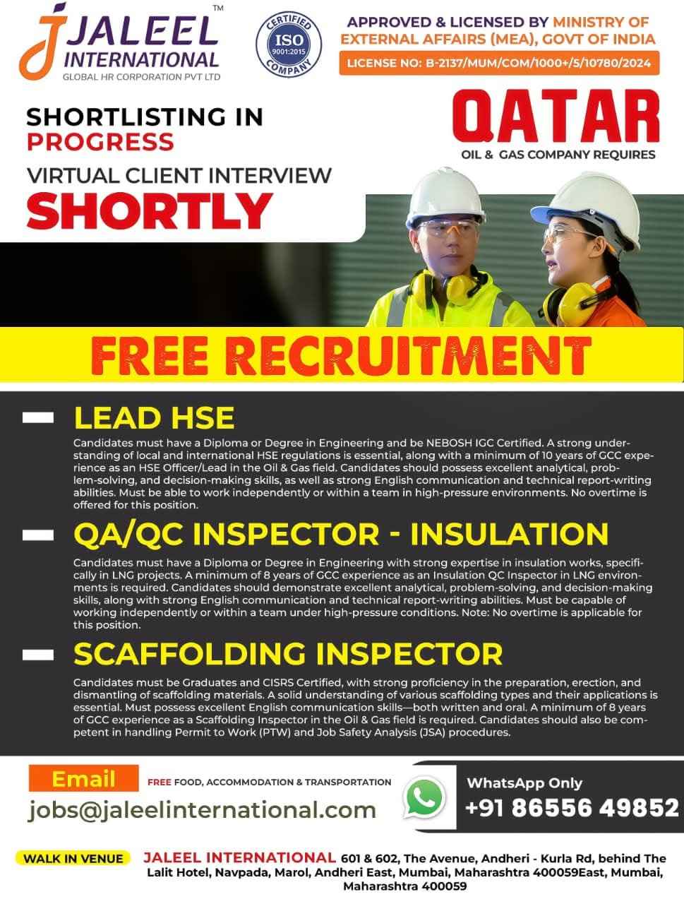 QATAR JOB'S A leading Contracting Company (Oil & Gas) WE DO NOT DEAL WITH ANY AGENT/SUB-AGENT