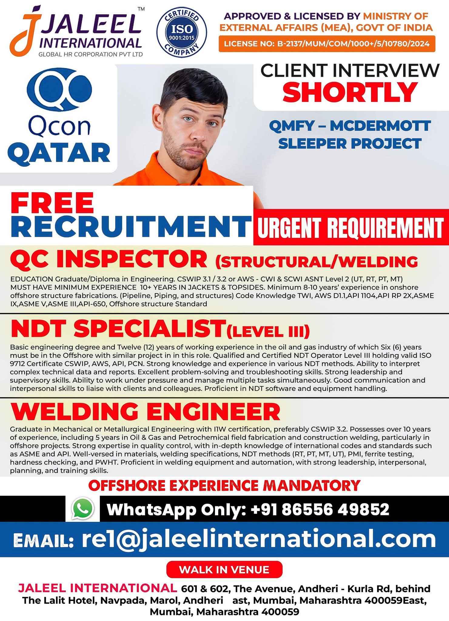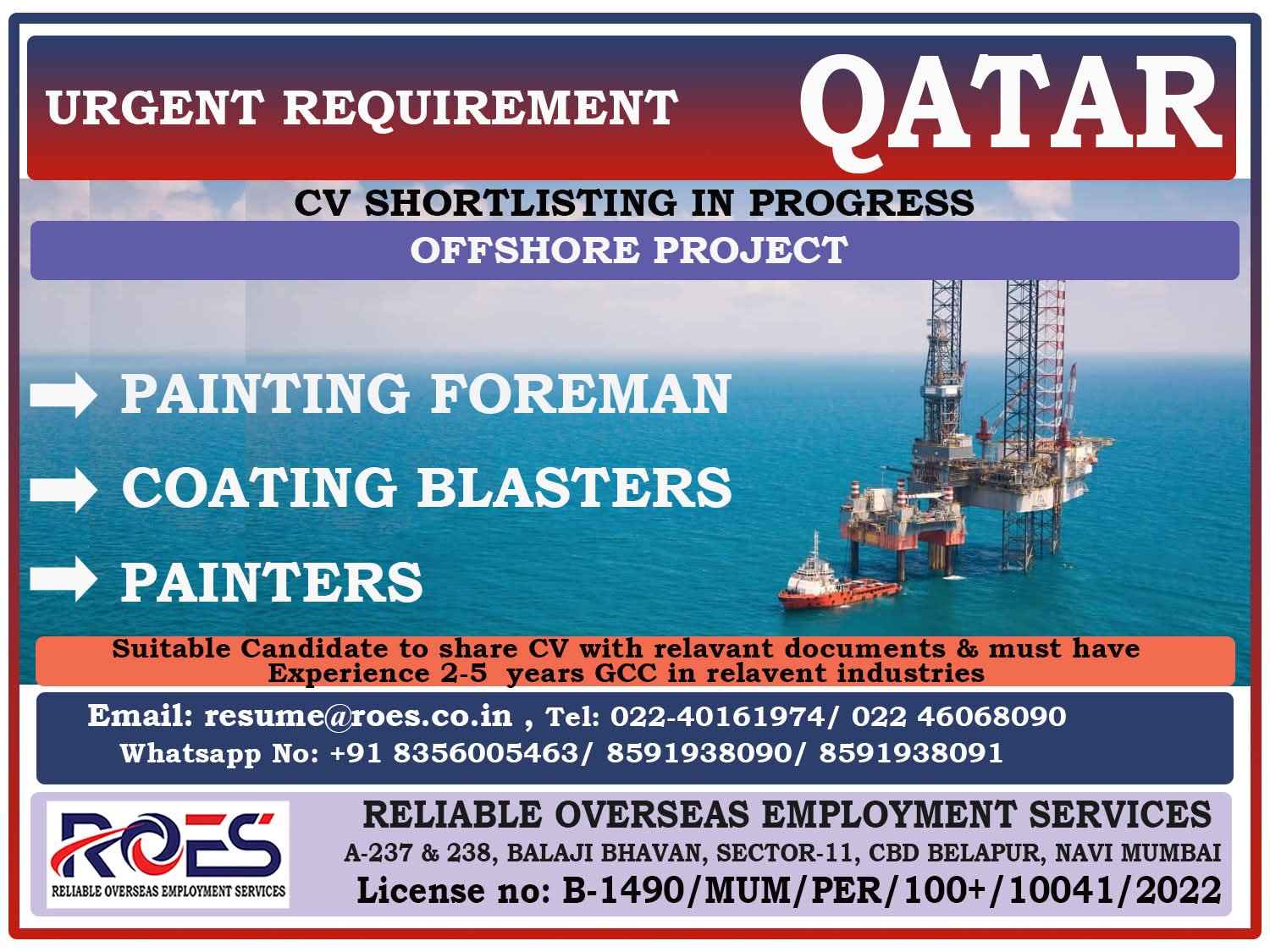 WE ARE HIRING FOR OFFSHORE CONSTRUCTION PROJECT IN QATAR