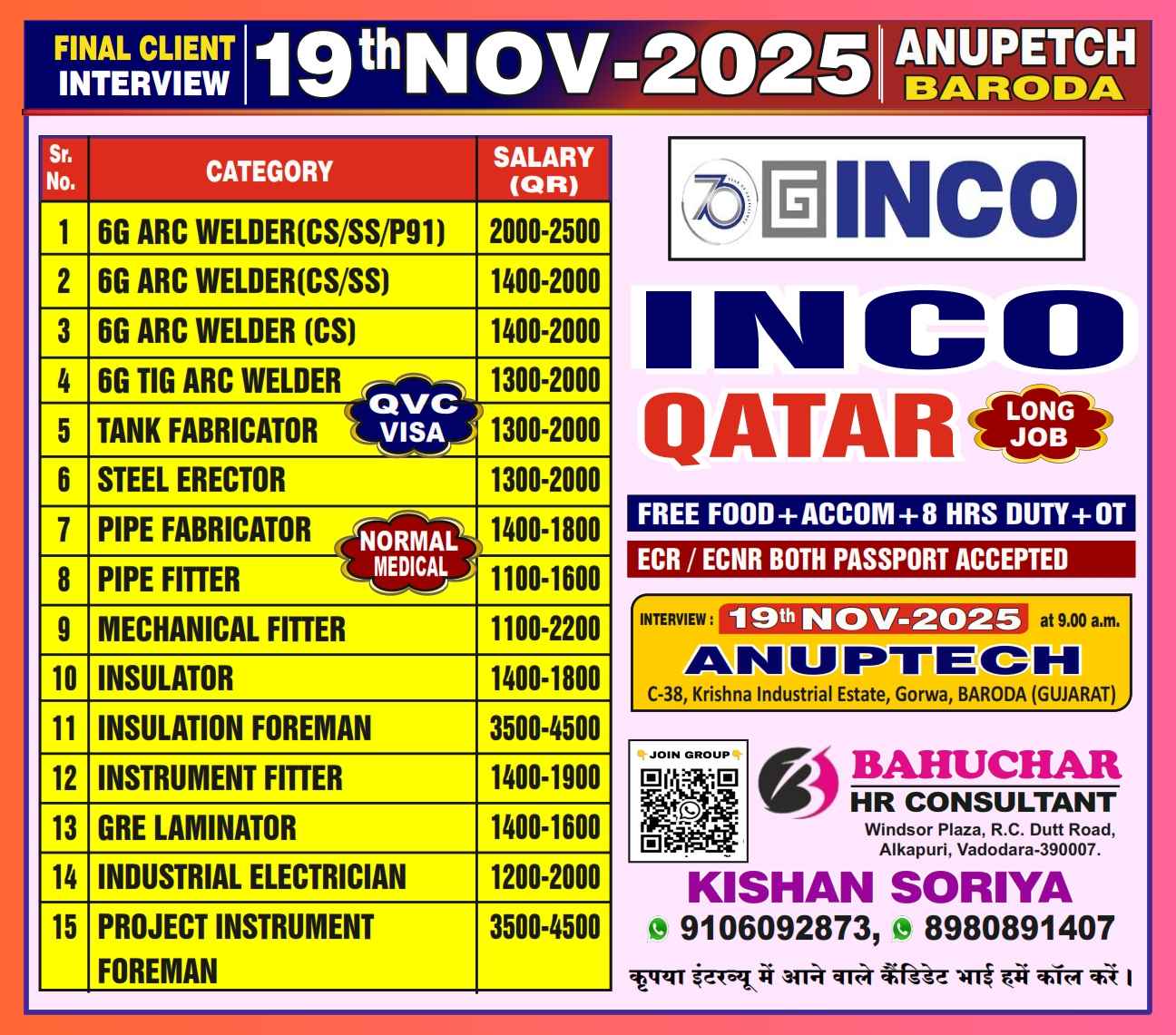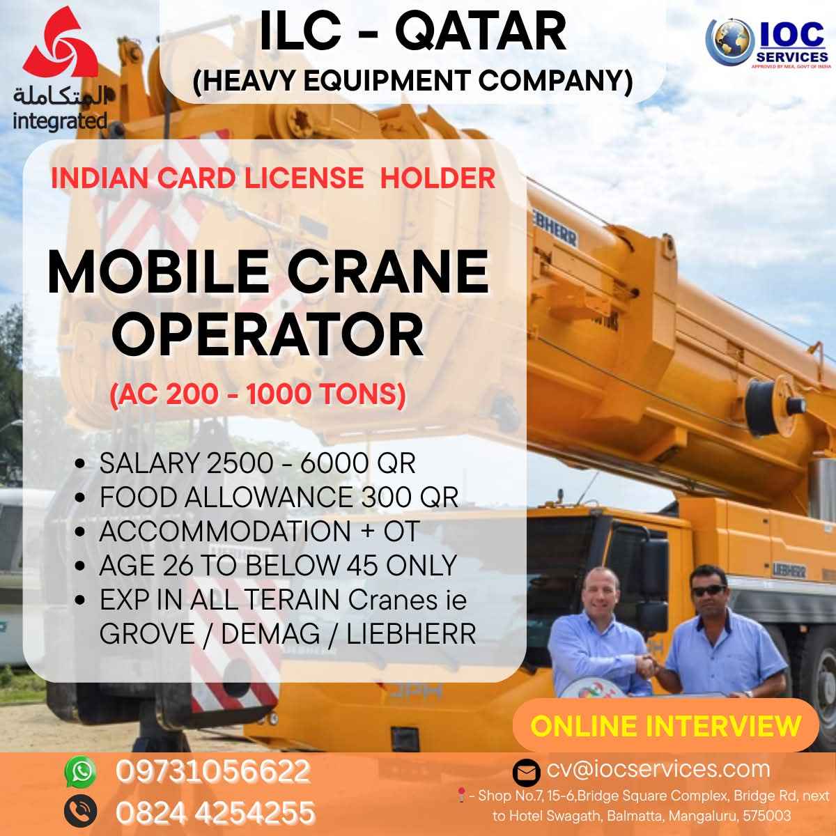 Urgent Requirement For INCO QATAR