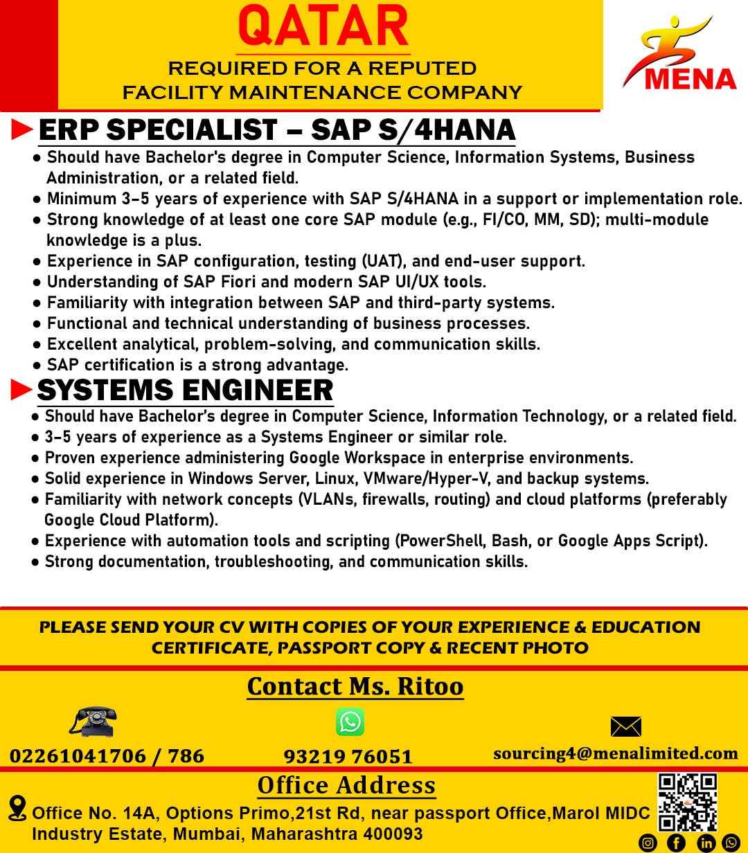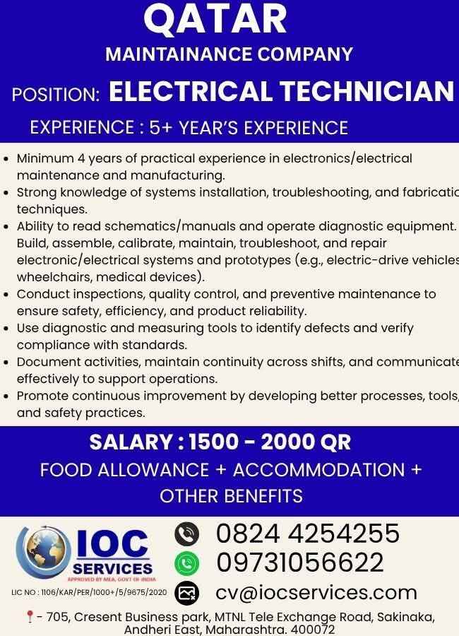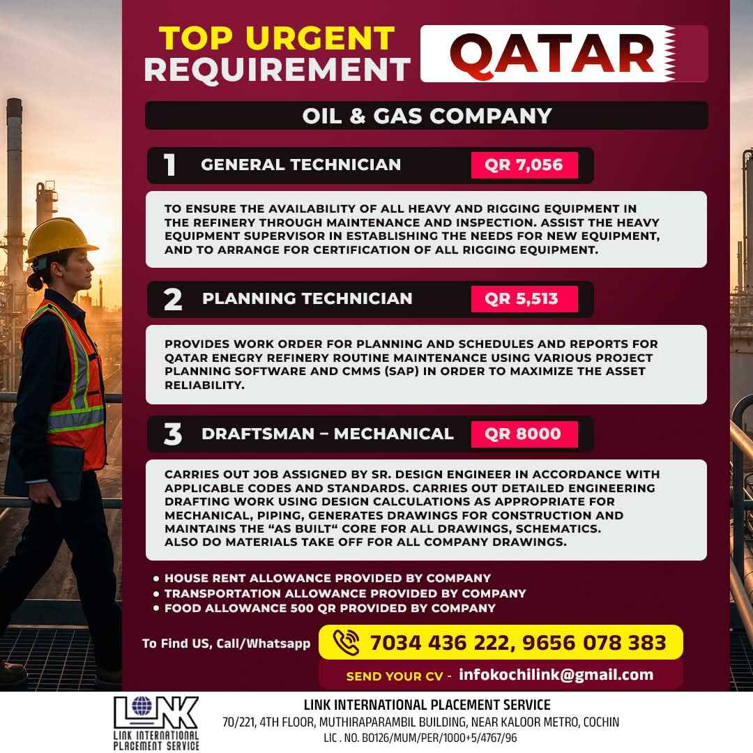 URGENT REQUIREMENT QATAR MAINTAINANCE COMPANY