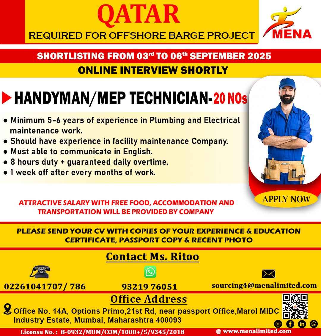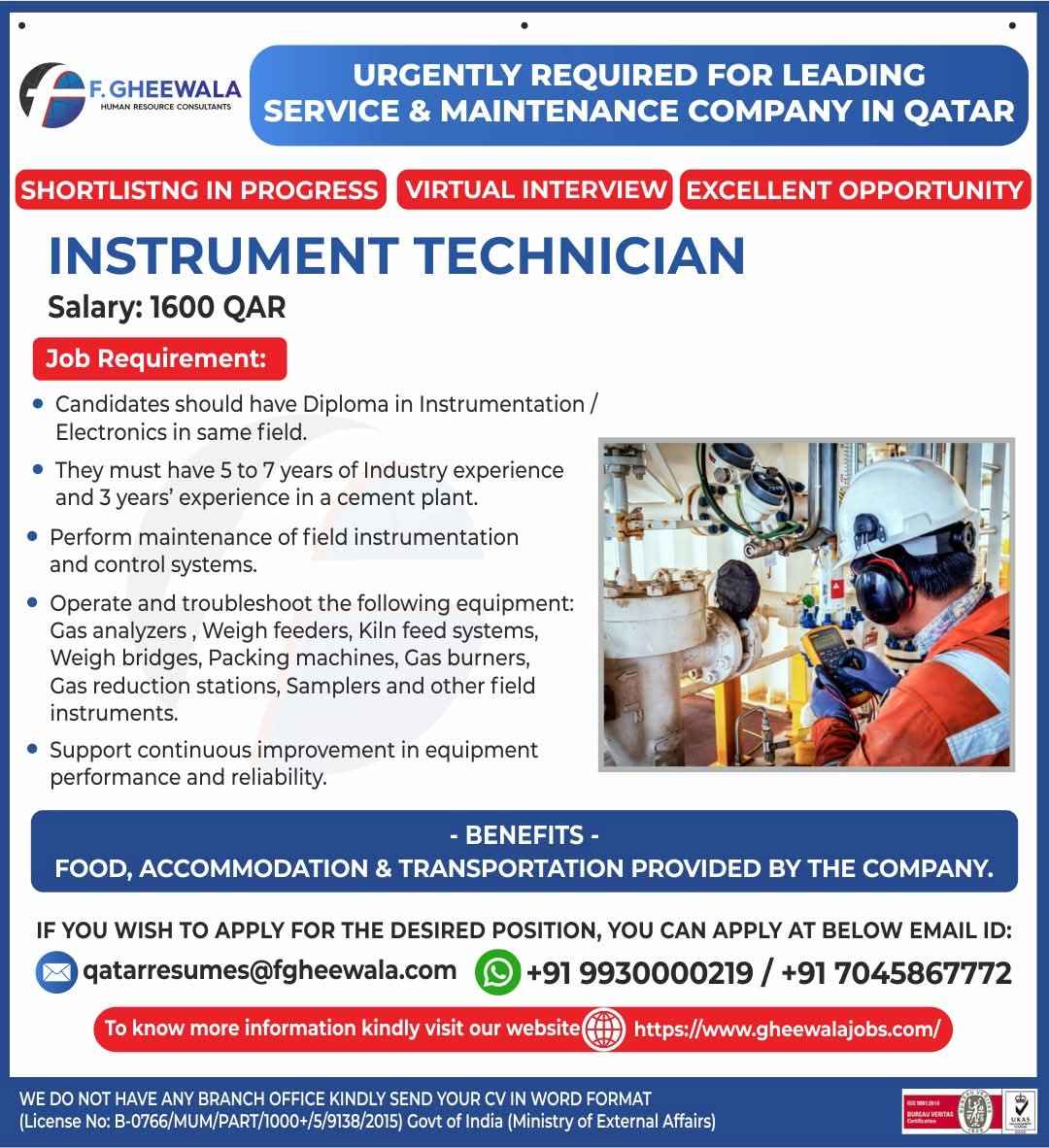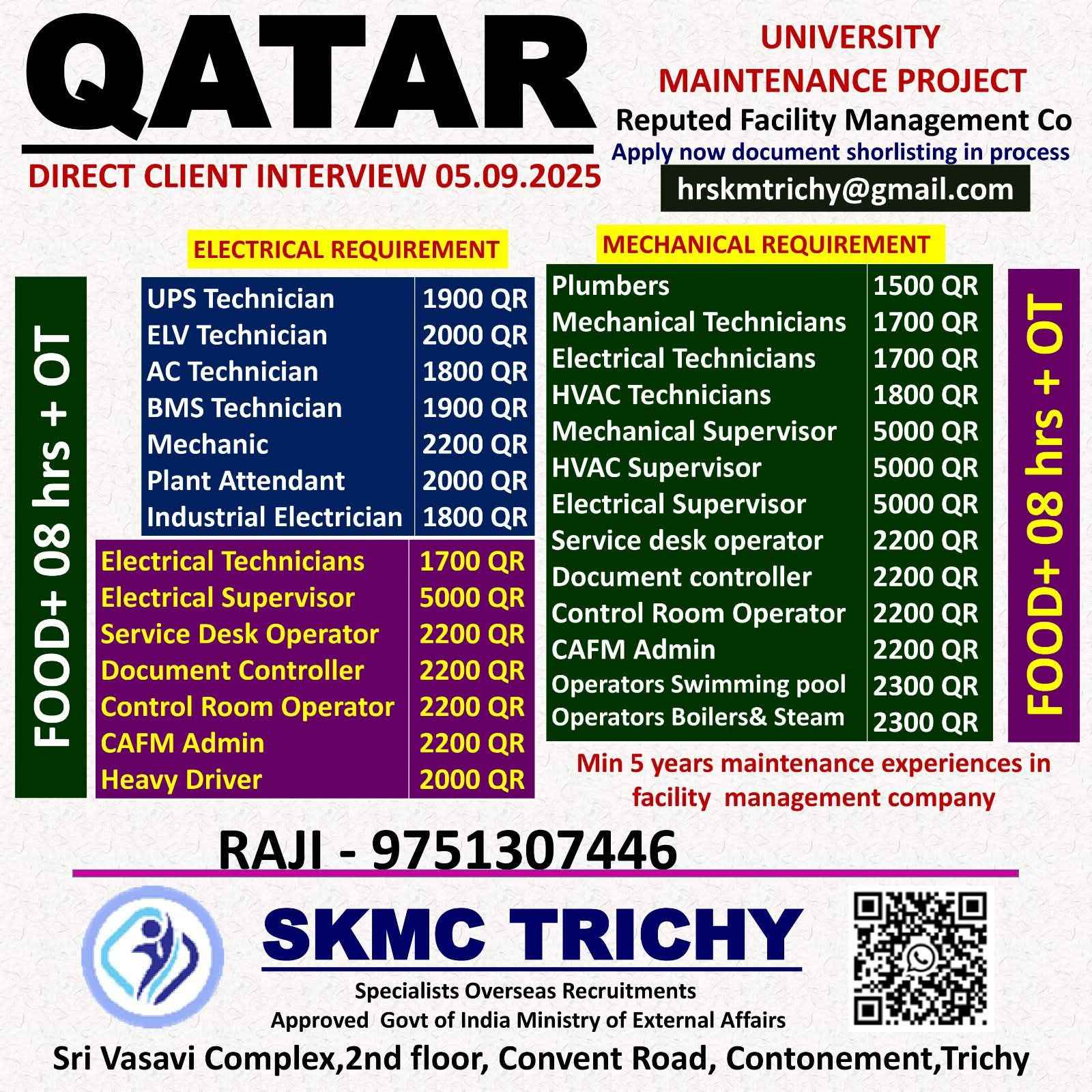 URGENT REQUIREMENT QATAR MAINTAINANCE COMPANY