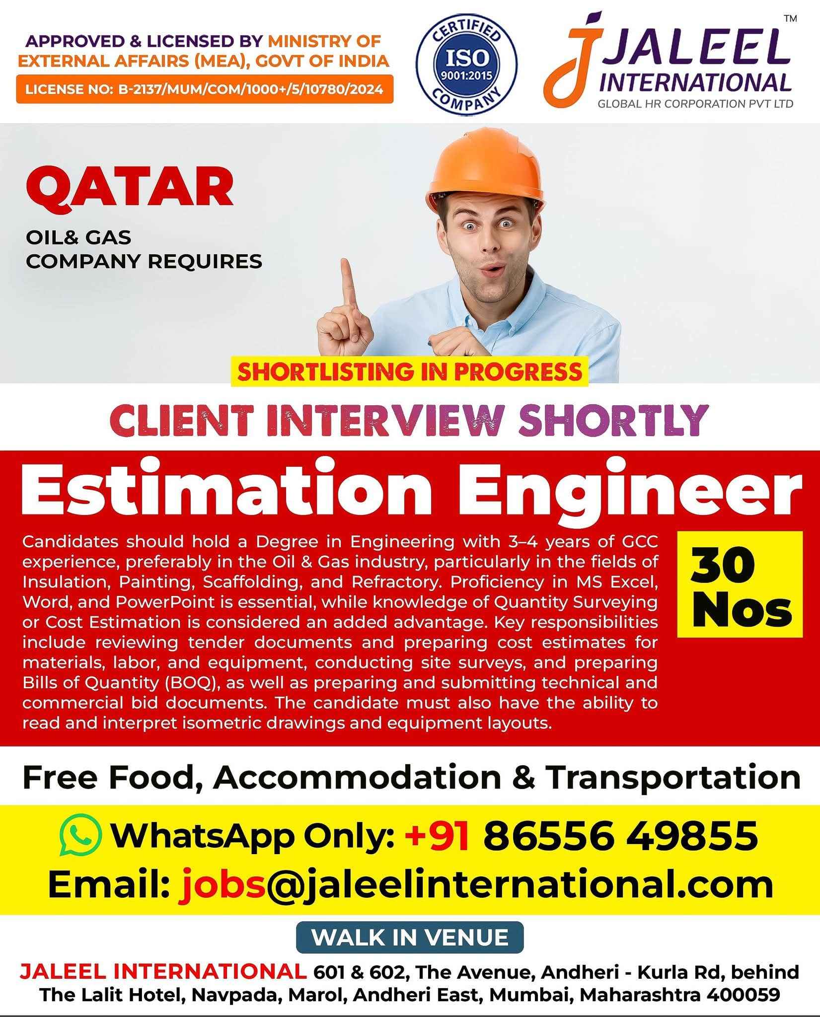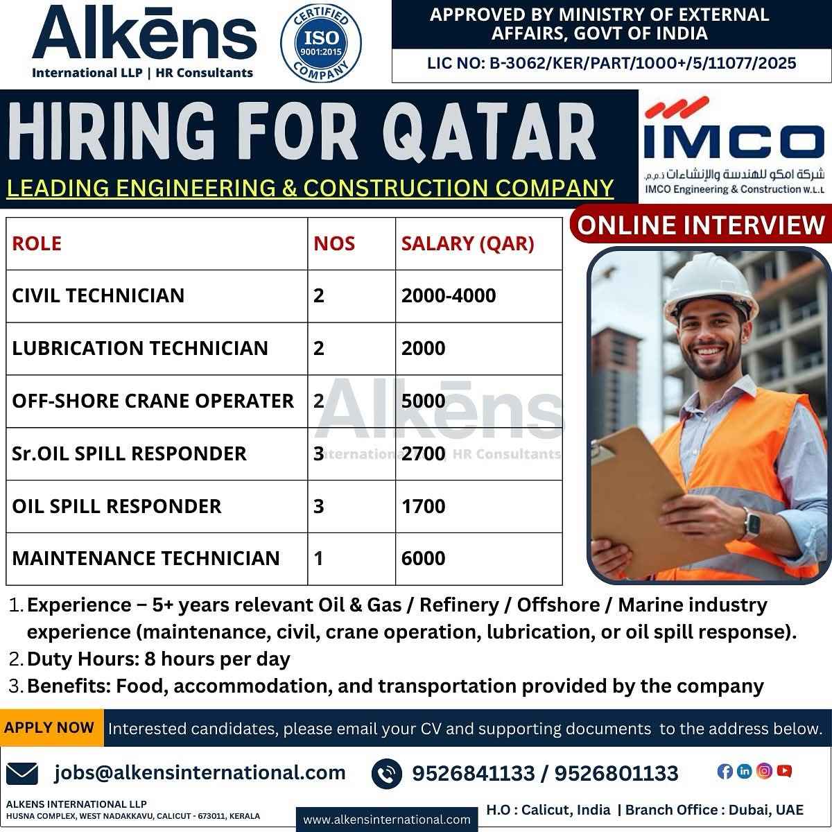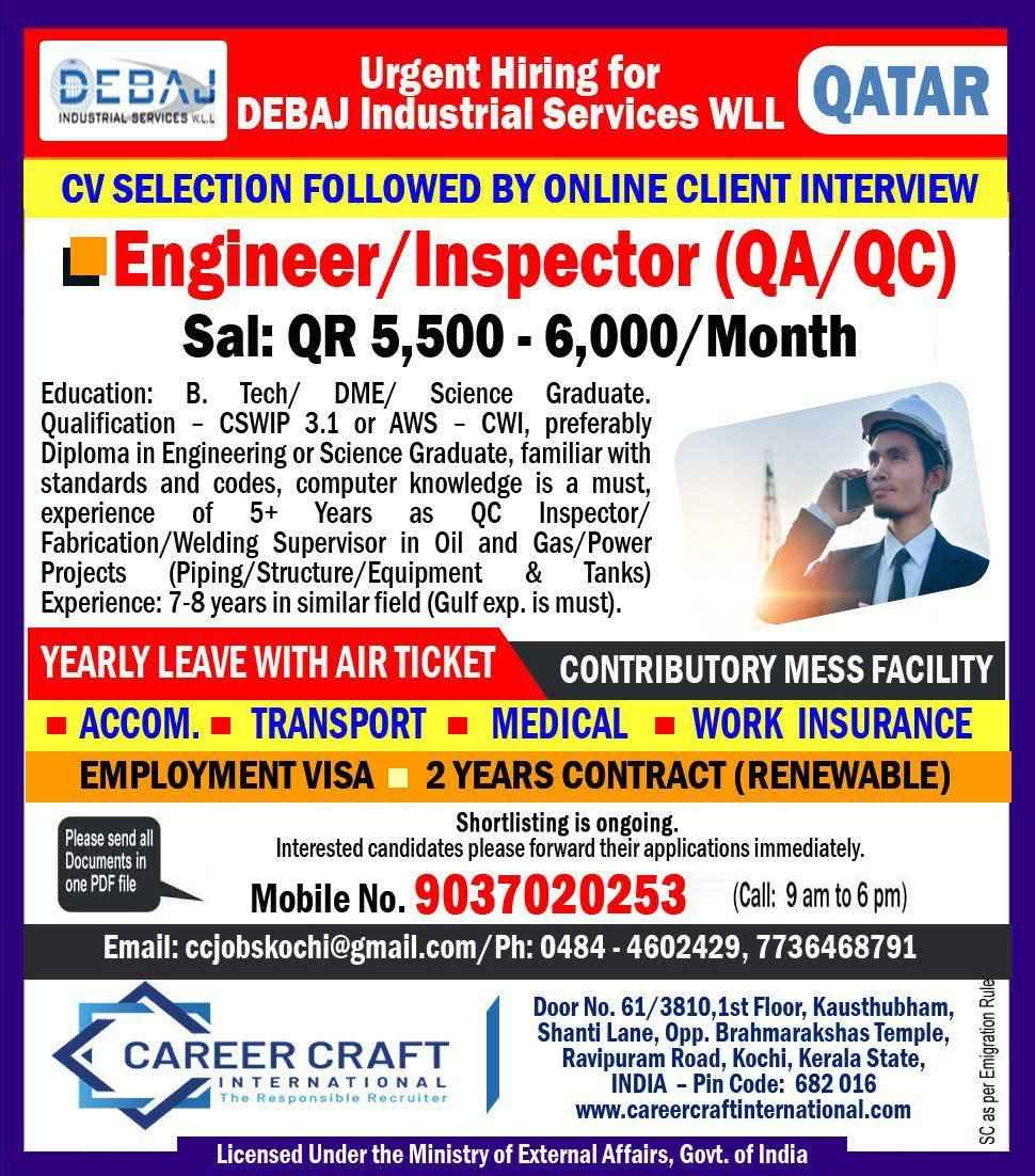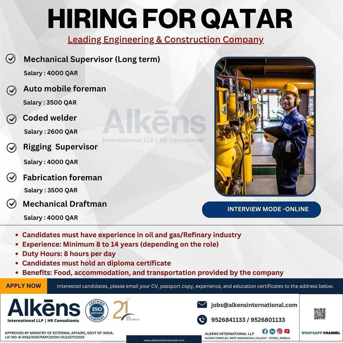QATAR JOB'S Hiring for an international Company Oil & Gas Construction Project