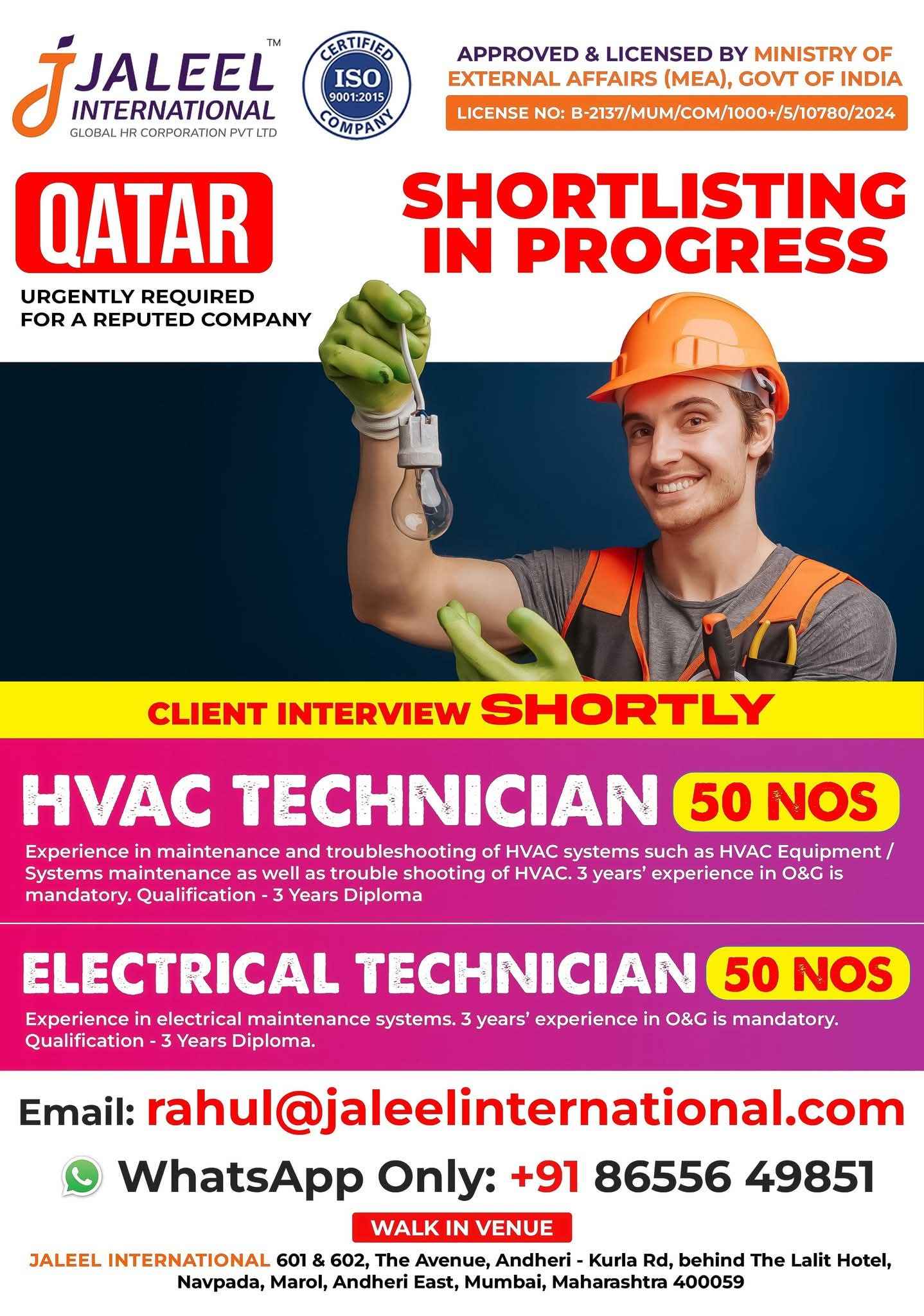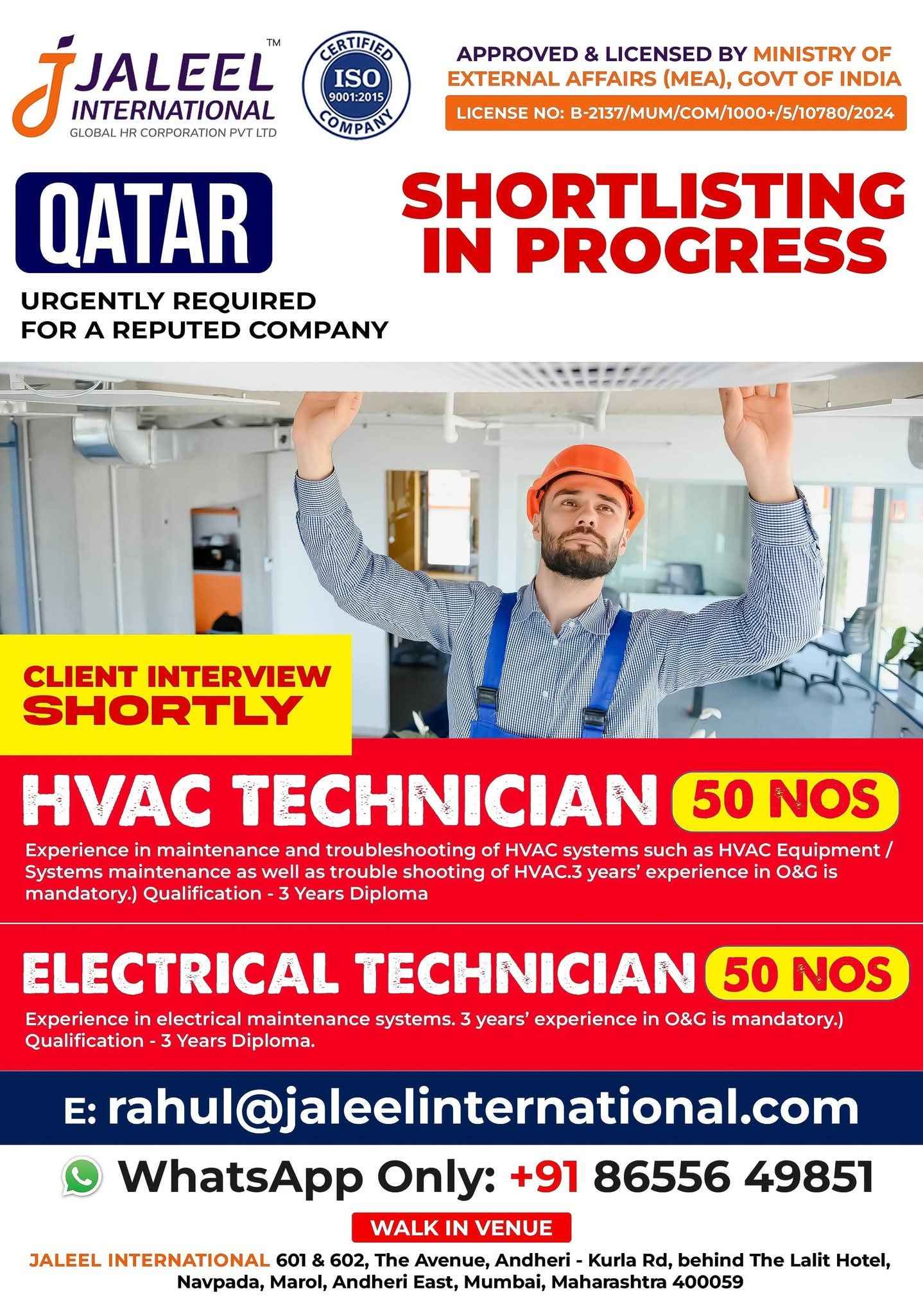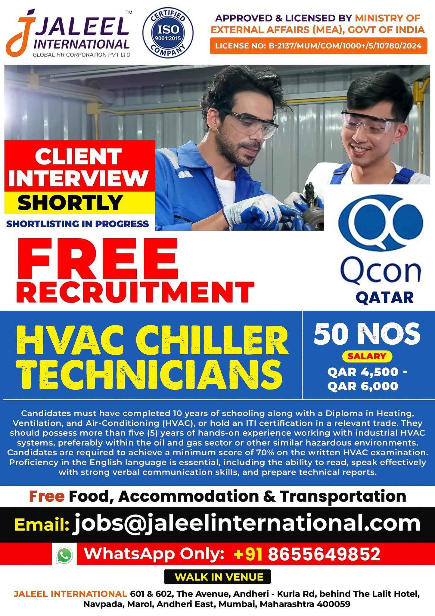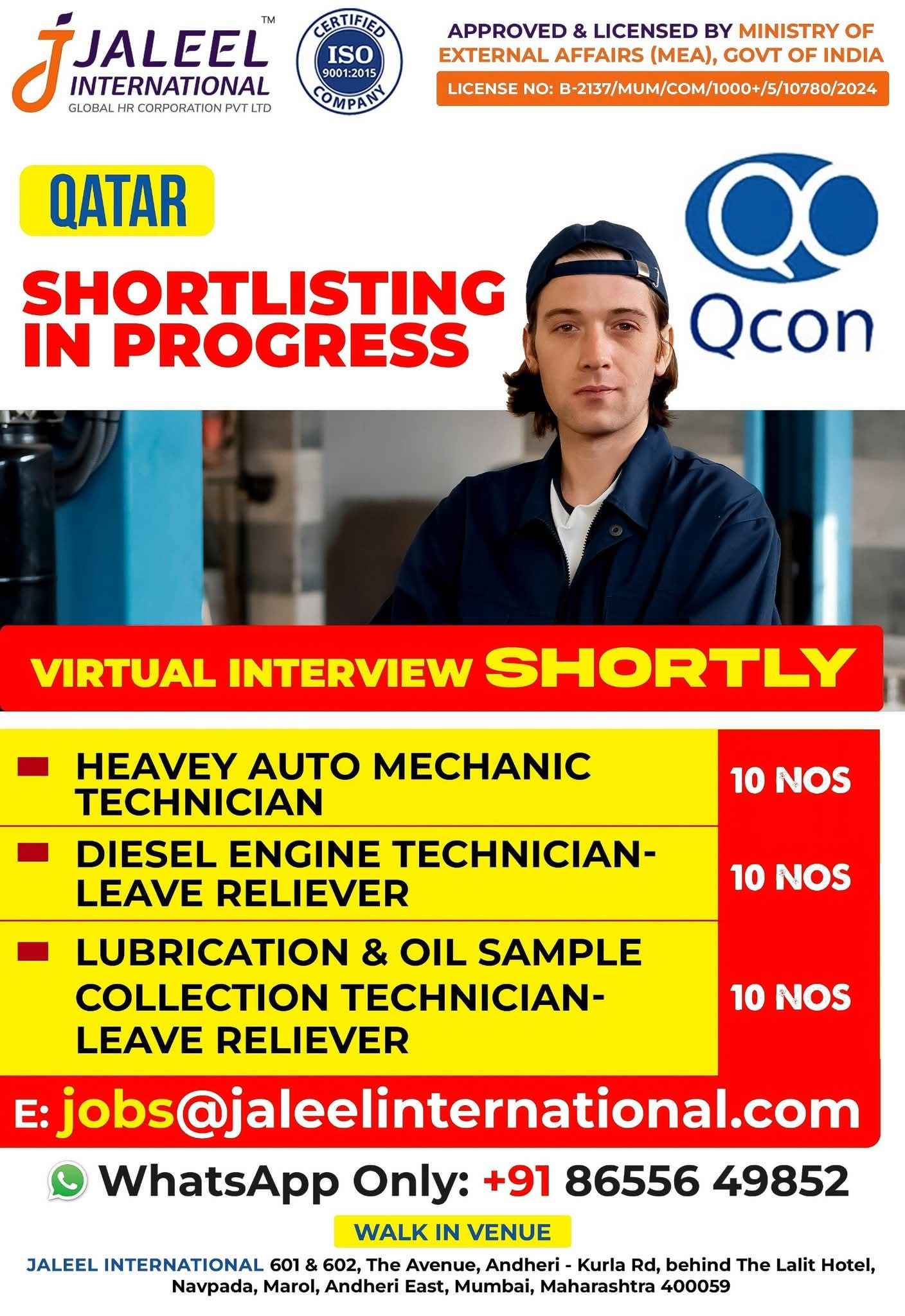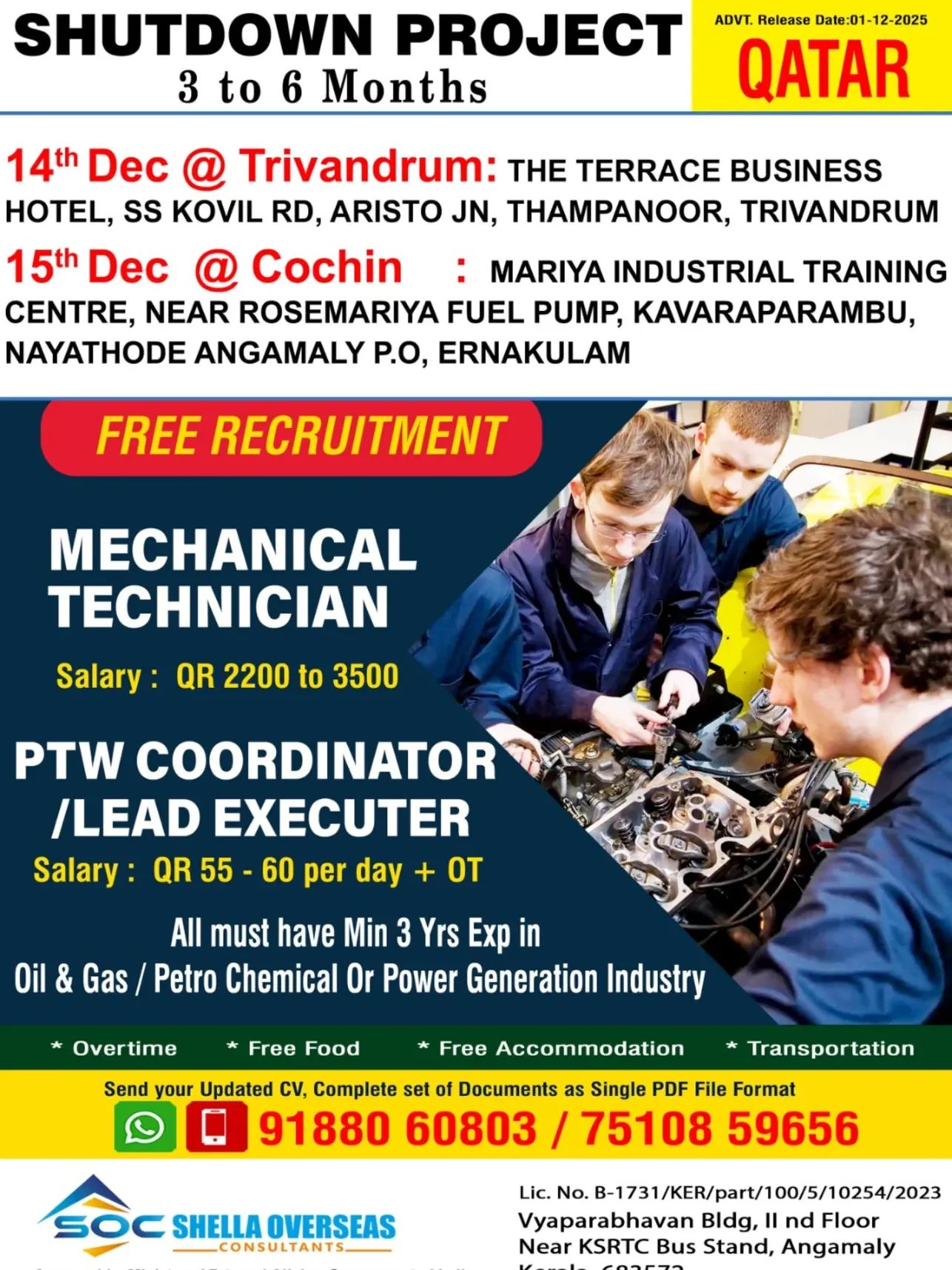 WE ARE HIRING FOR OIL & GAS WORKSHOP & MAINTENANCE PROJECTS IN QATAR