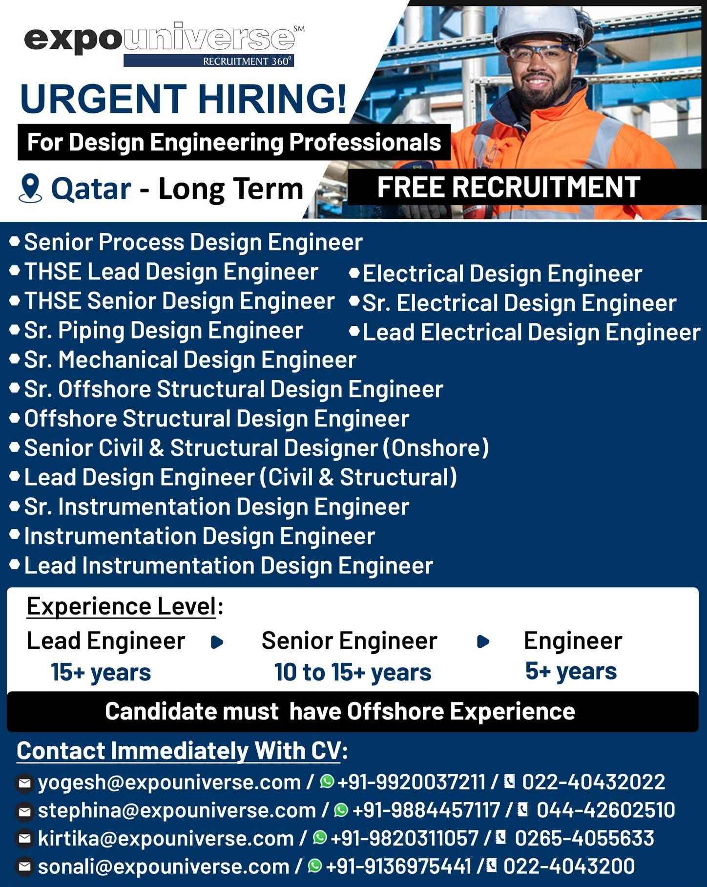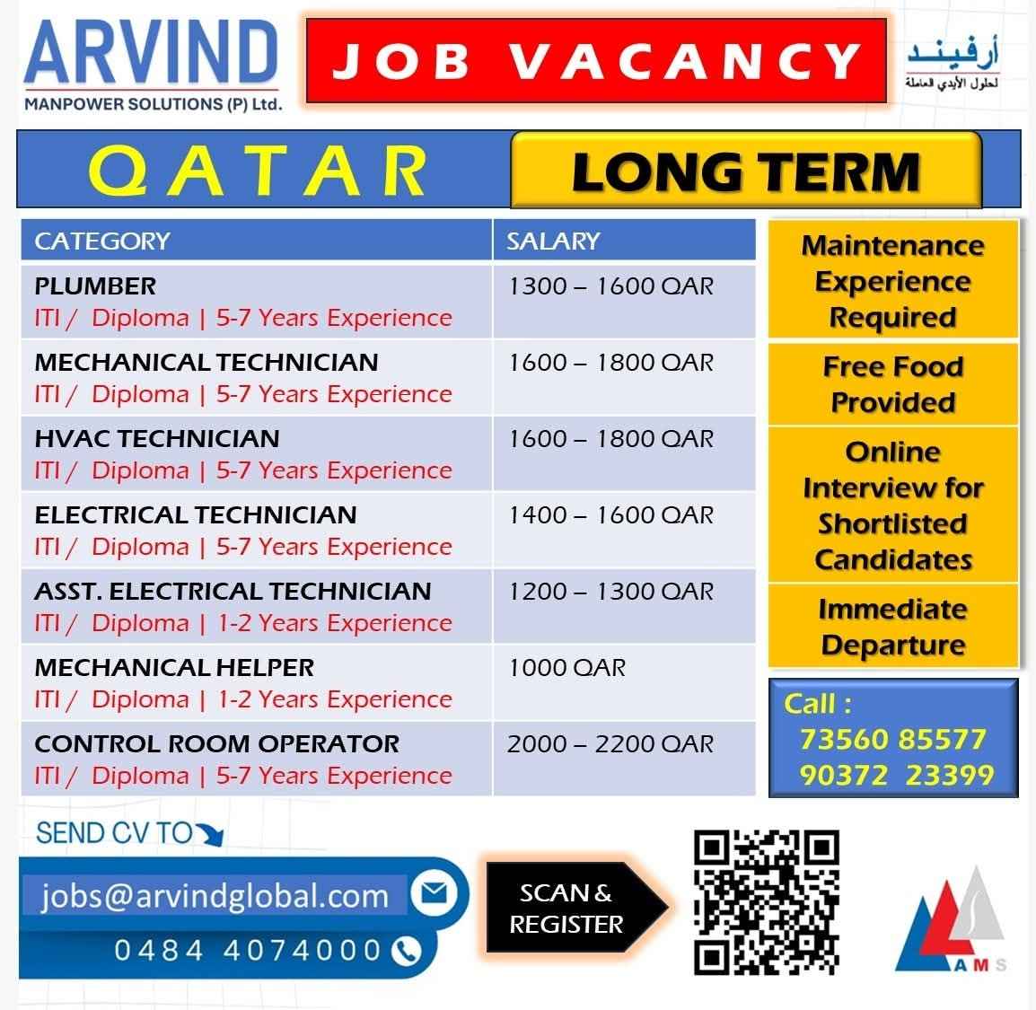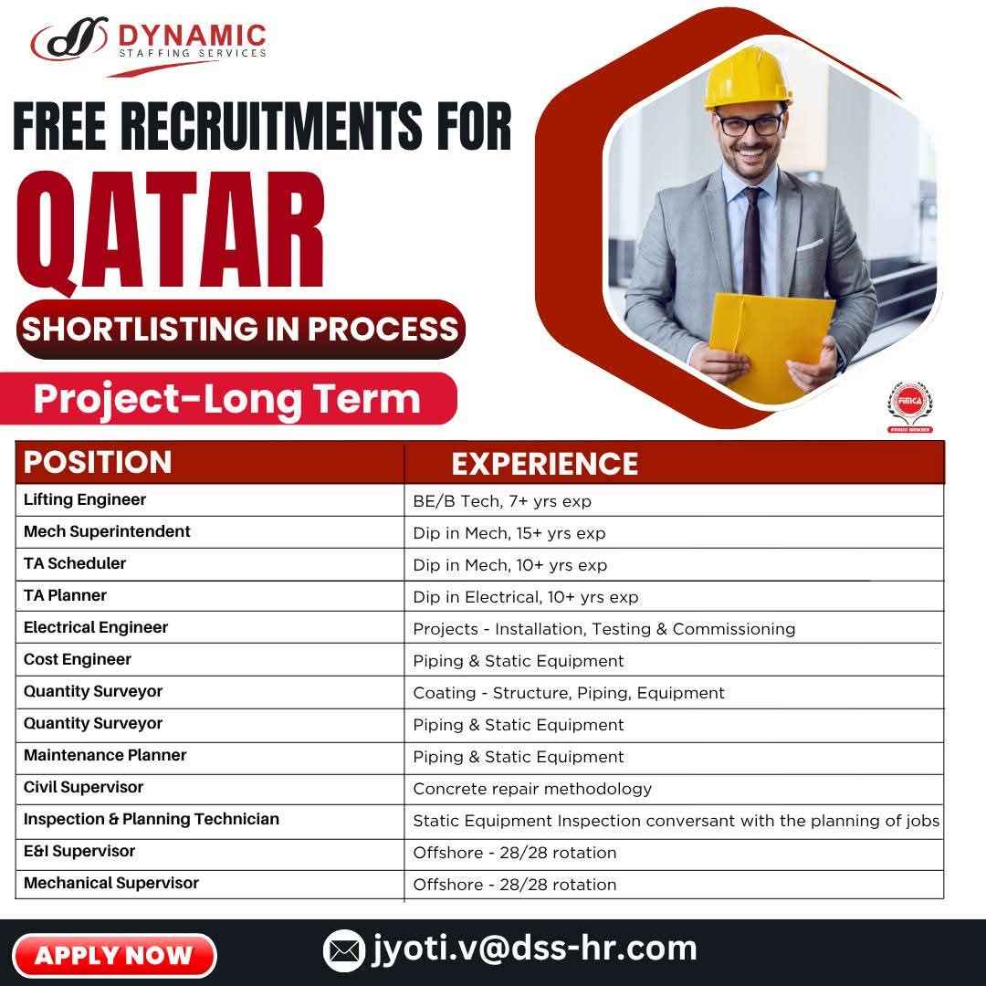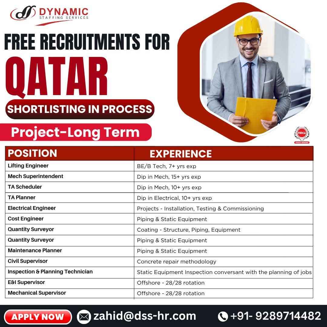 URGENT HIRING! LOCATION - QATAR LONG TERM PROJECT