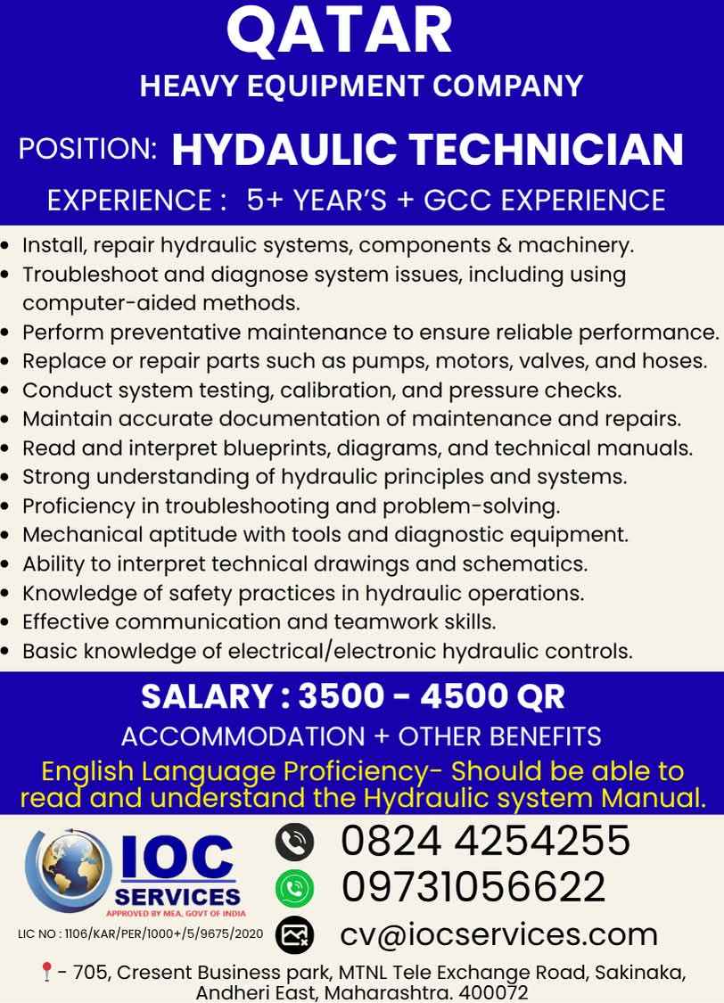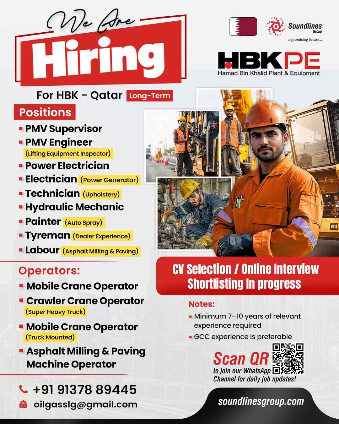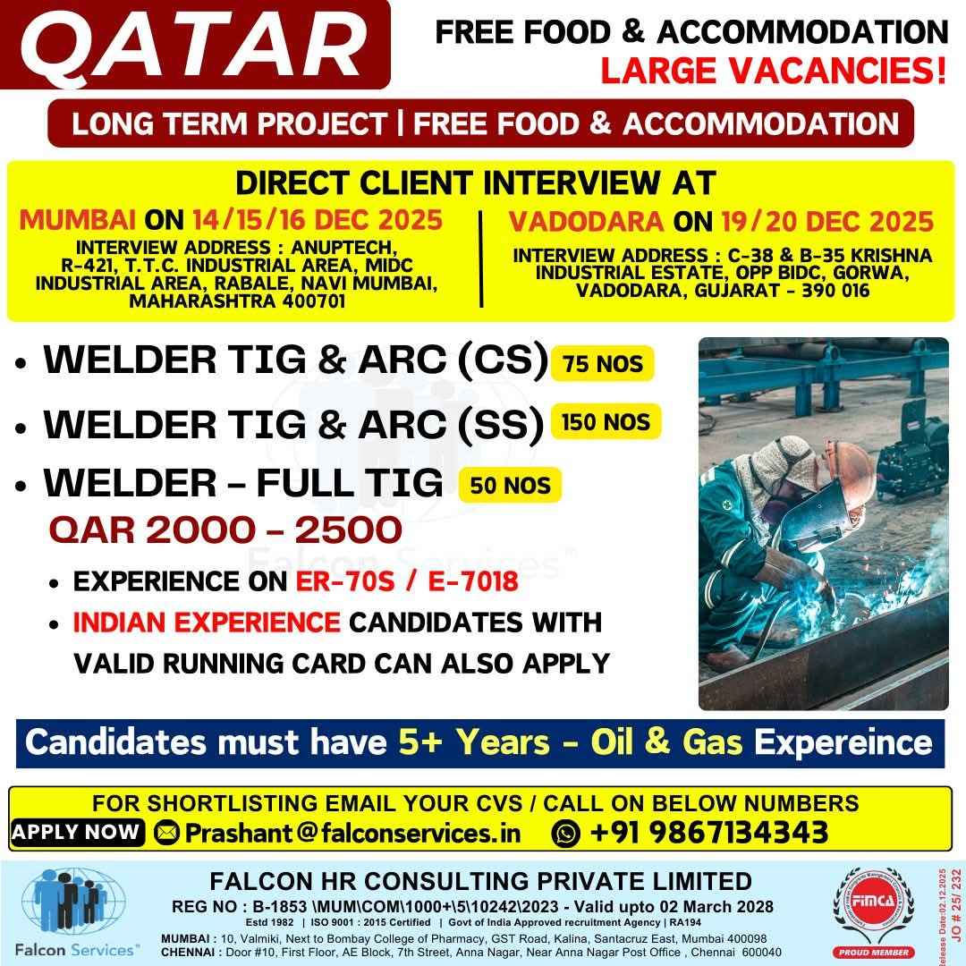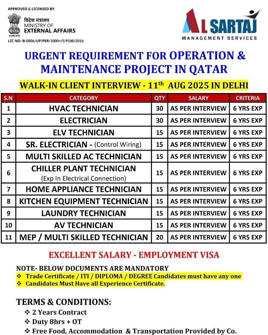 URGENT HIRING! LOCATION - QATAR LONG TERM PROJECT