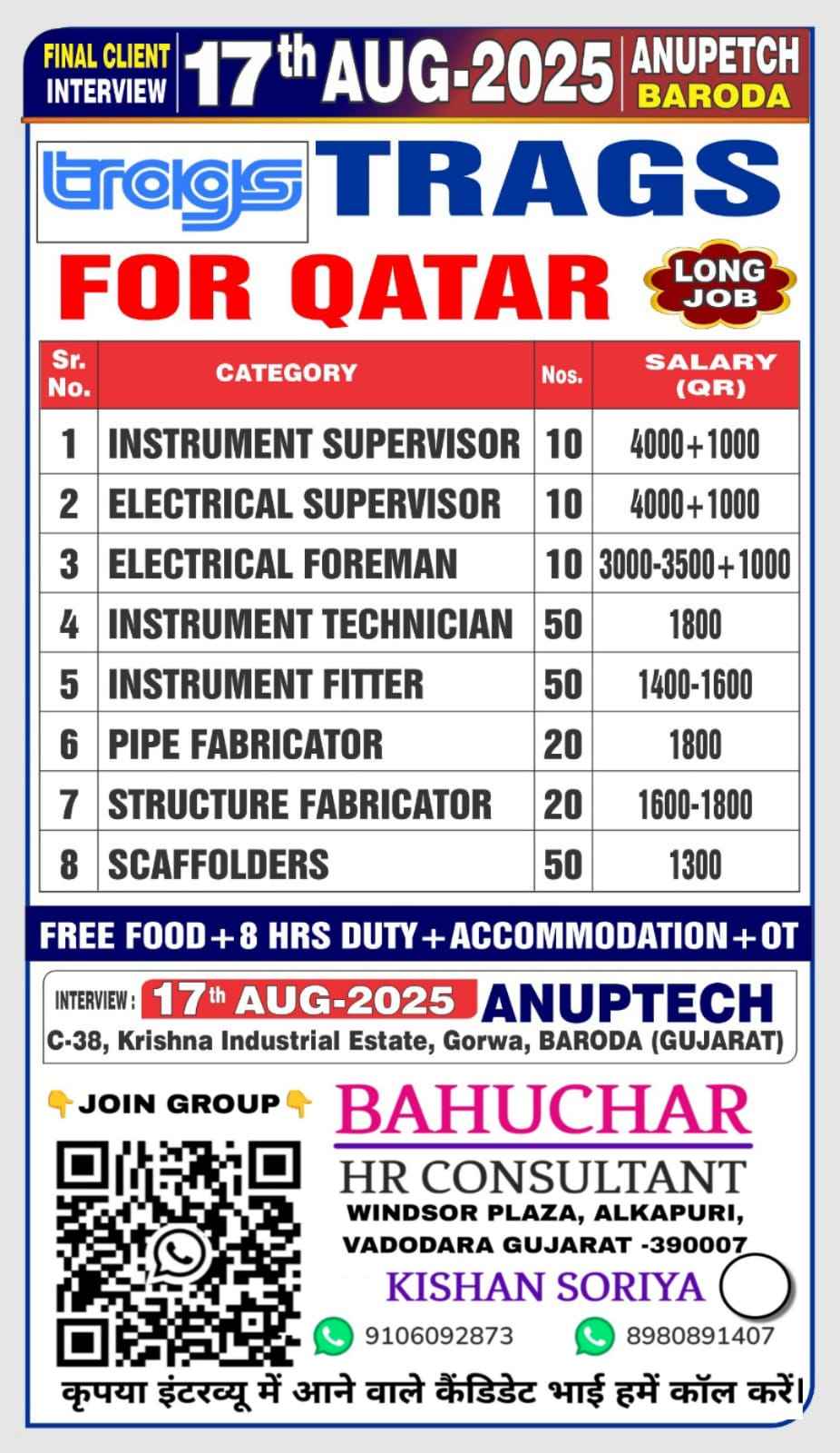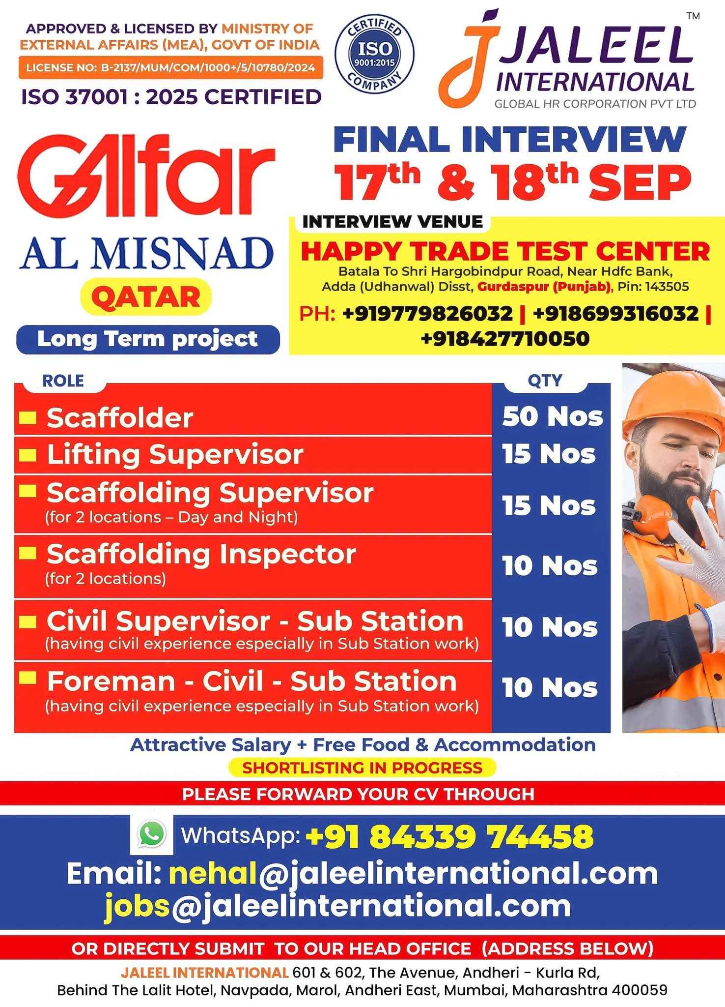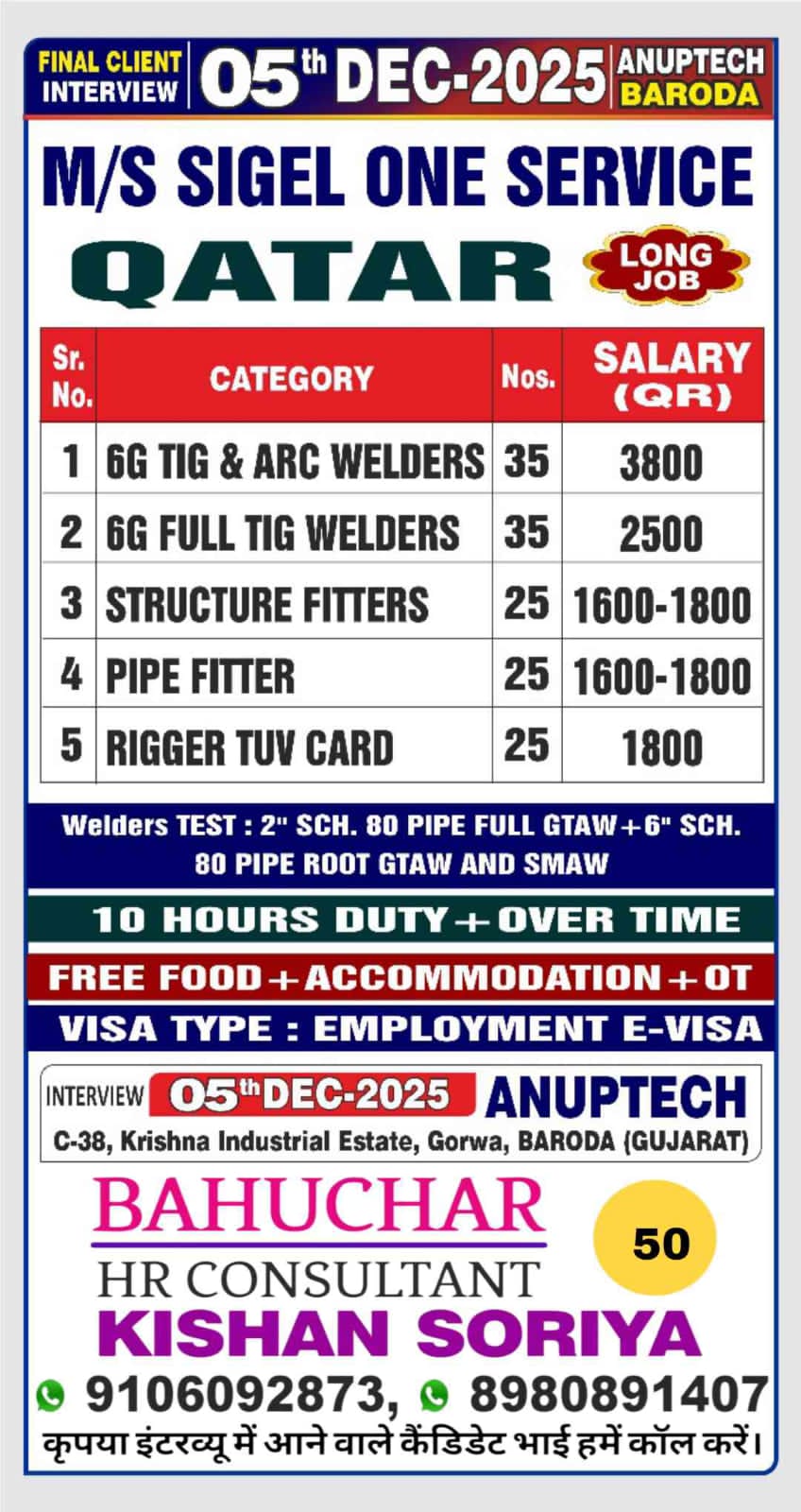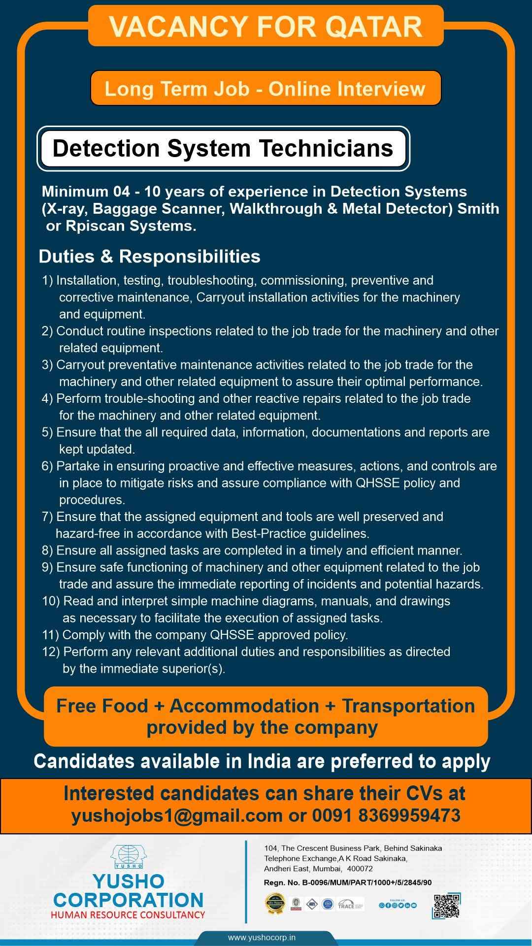 URGENT HIRING! LOCATION - QATAR LONG TERM PROJECT