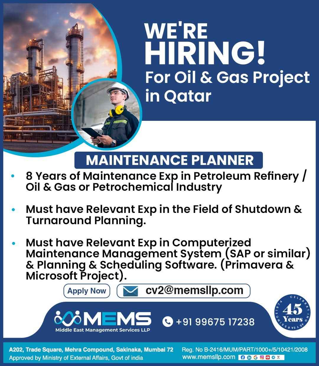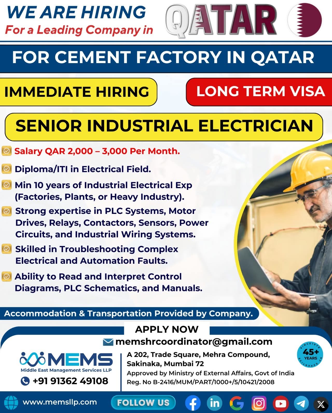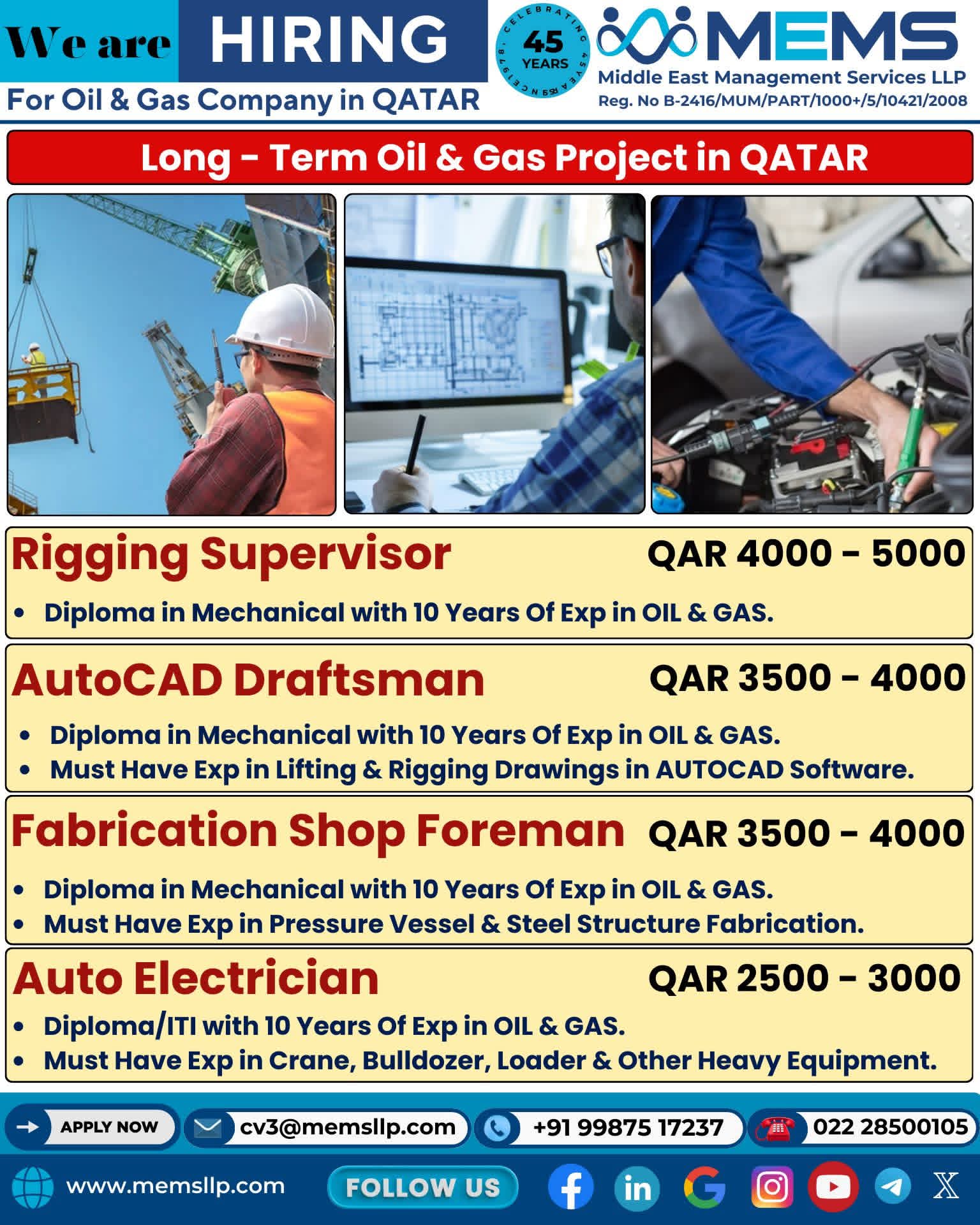 Free Recruitment WE ARE HIRING MEMS Middle East Management Services LLP QATAR SHIPYARD TECHNOLOGY SOLUTIONS For Qatar Shipyard