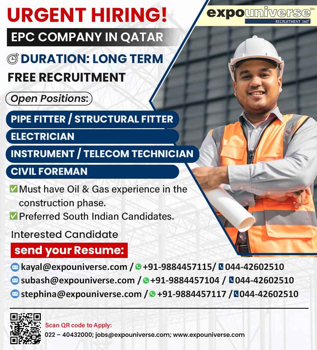 URGENT HIRING! EPC COMPANY IN QATAR