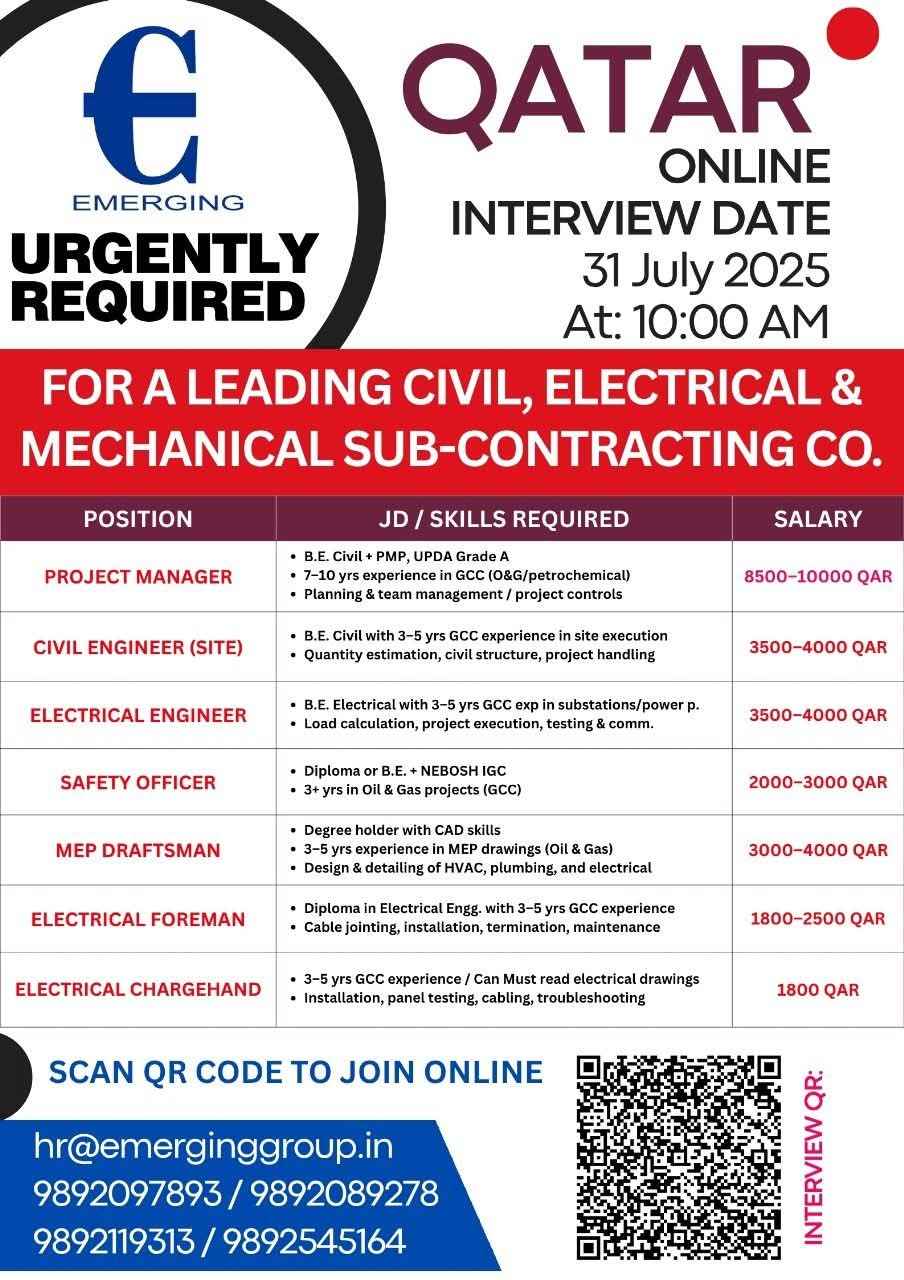 HIRING FOR QATAR Leading Engineering & Construction Company