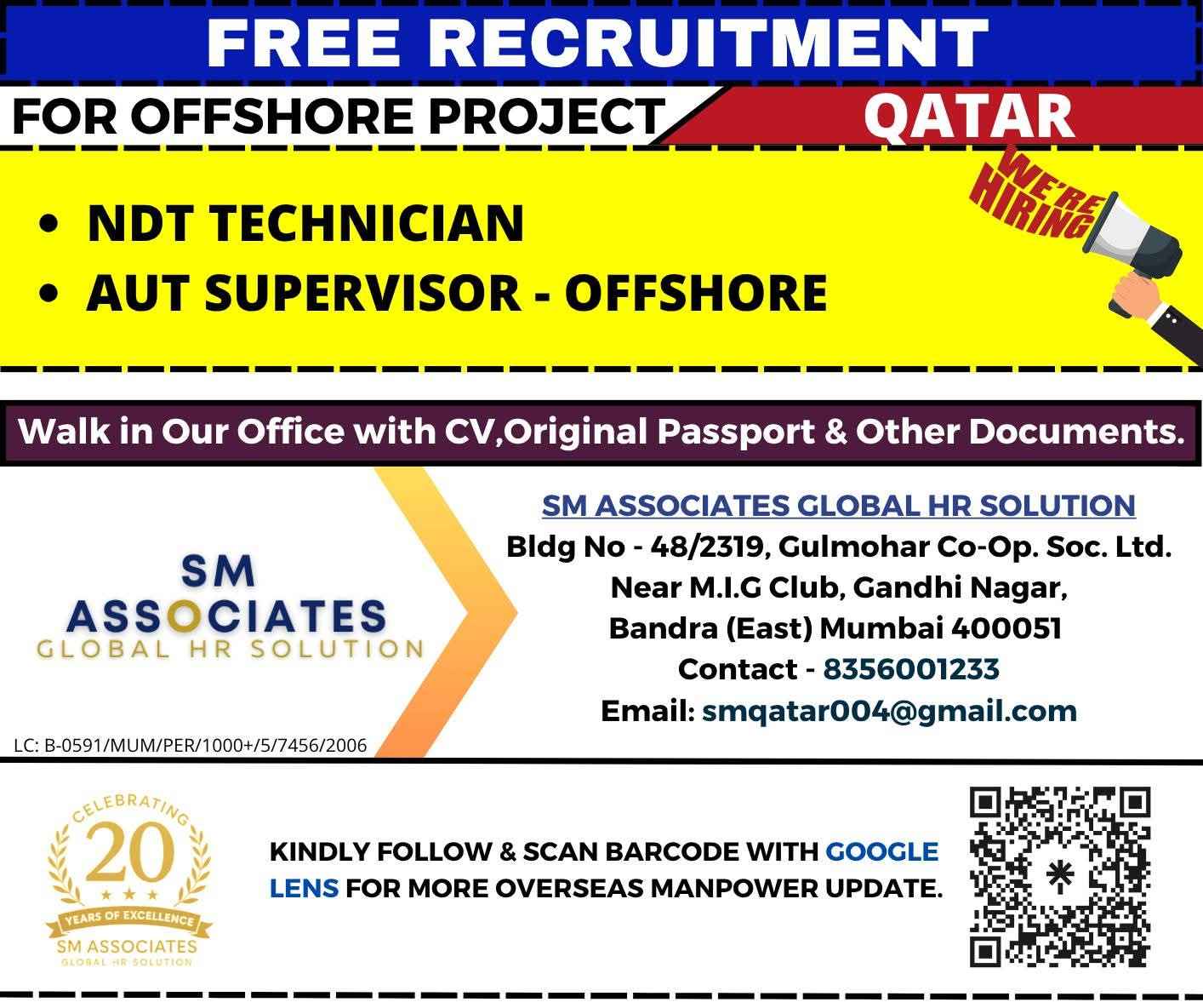 Free Recruitment WE ARE HIRING For Offshore construction Project in Qatar