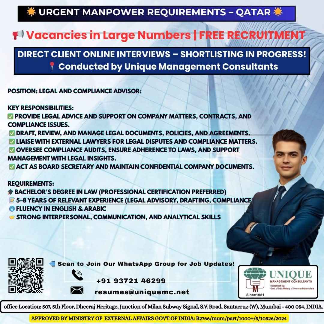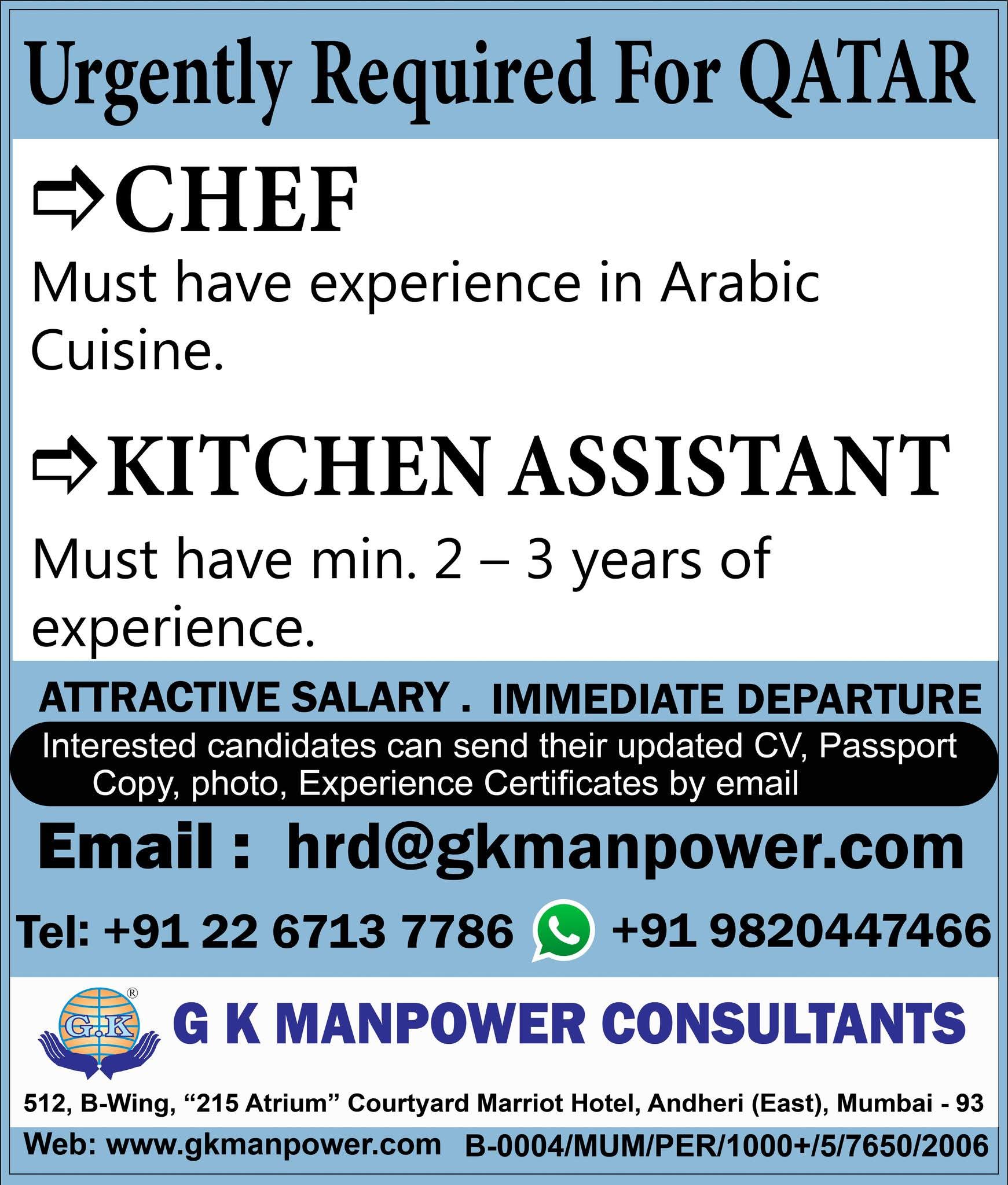 Urgent Requirement For Qatar