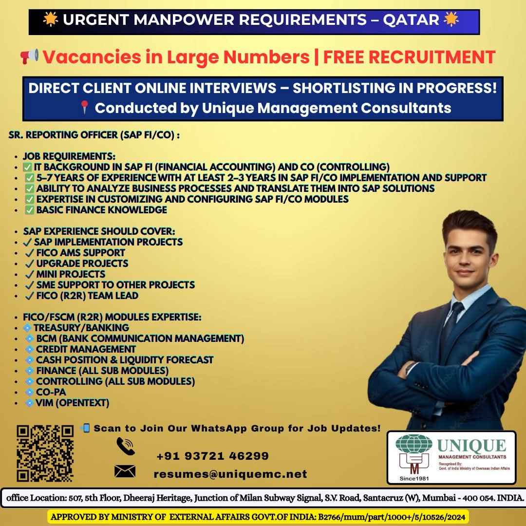 FREE RECRUITMENT | DIRECT RECRUITMENT HR JOB OPPORTUNITY FOR QATAR