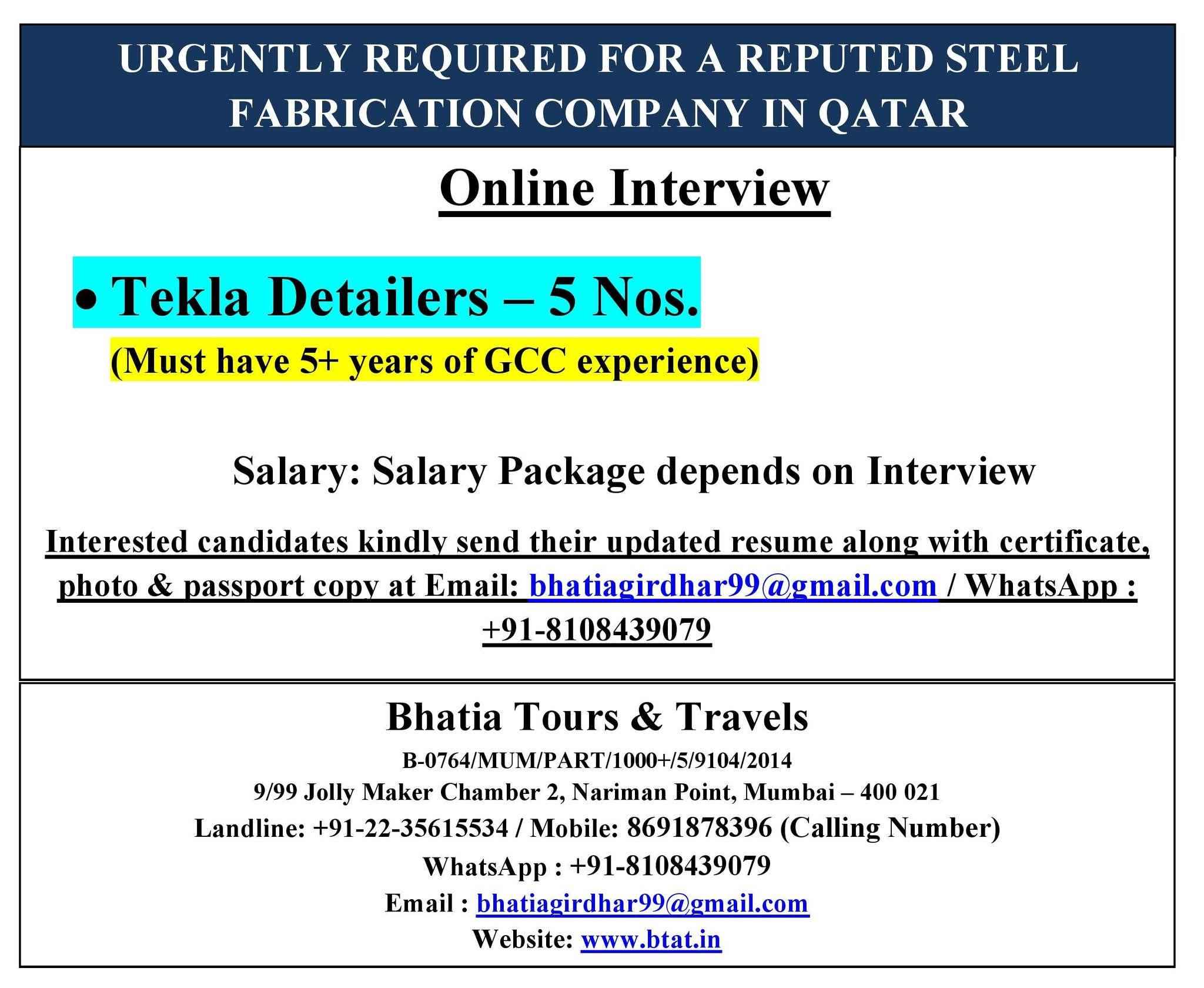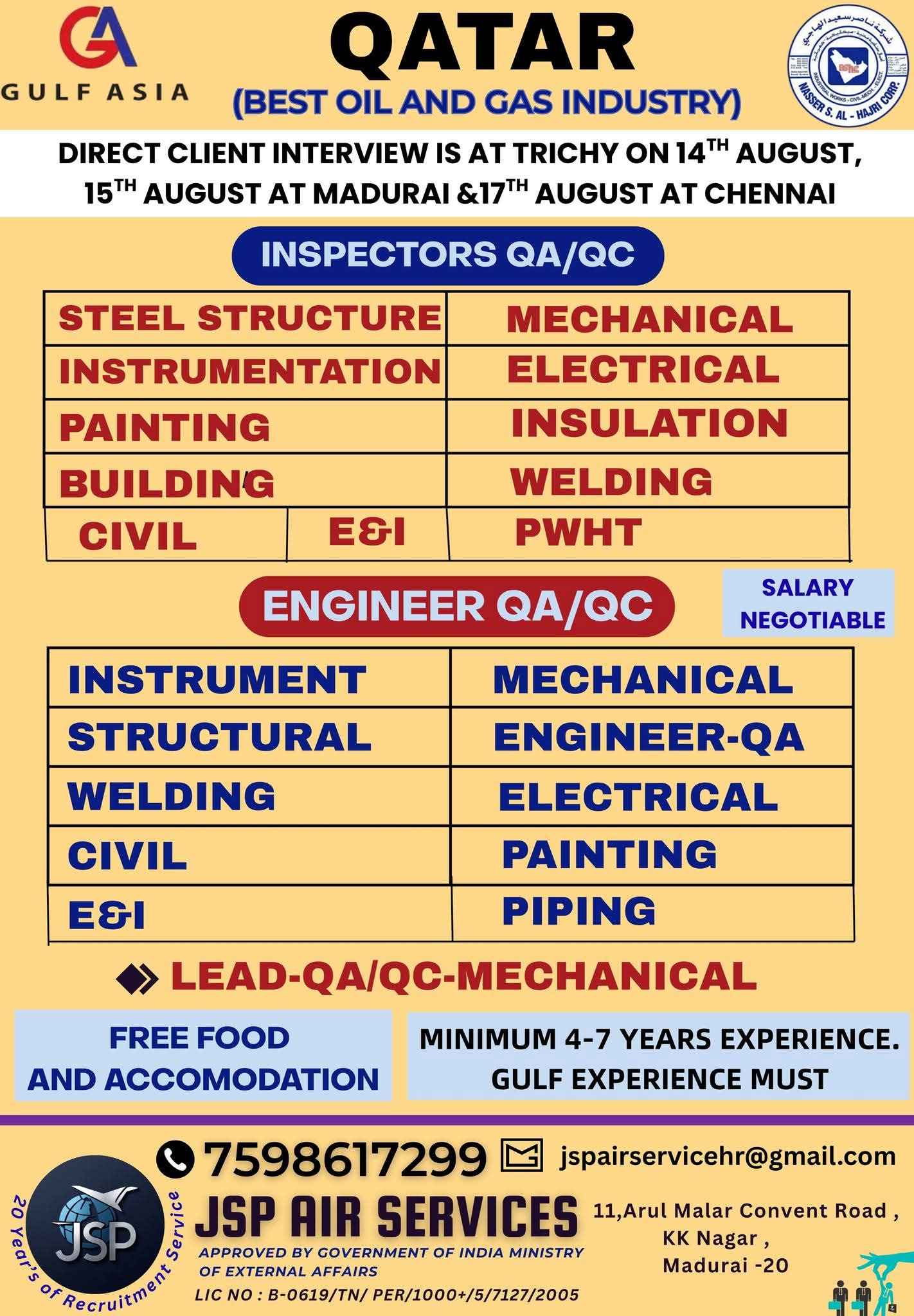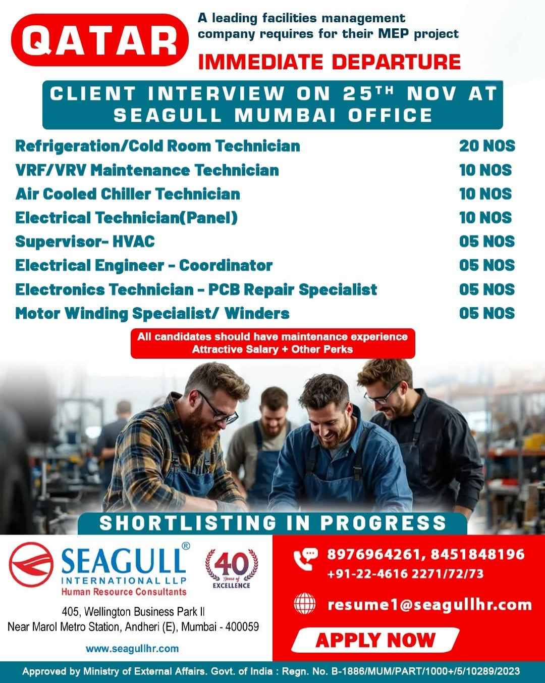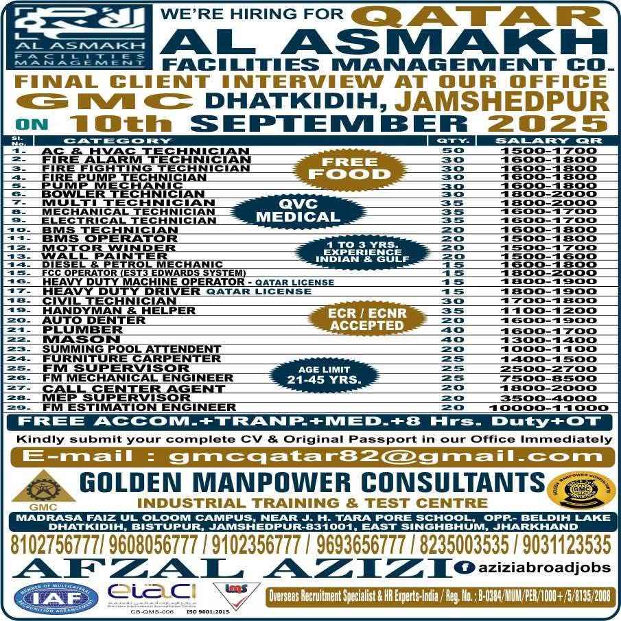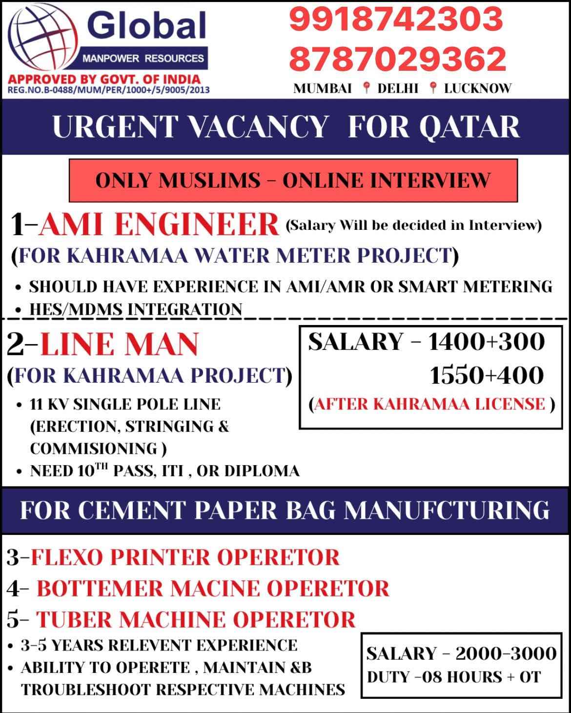URGENT REQUIREMENTS FOR QATAR- GULF ASIA