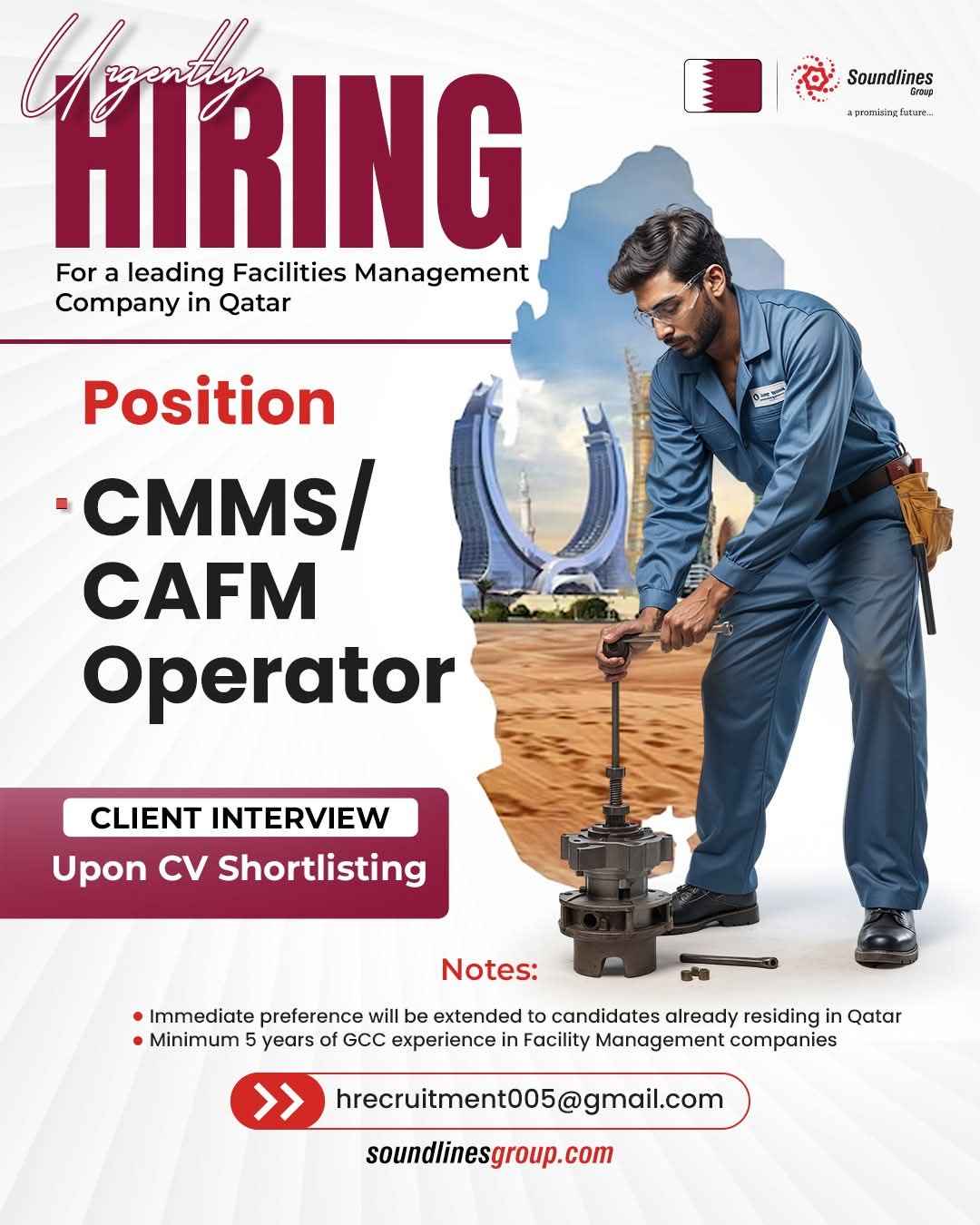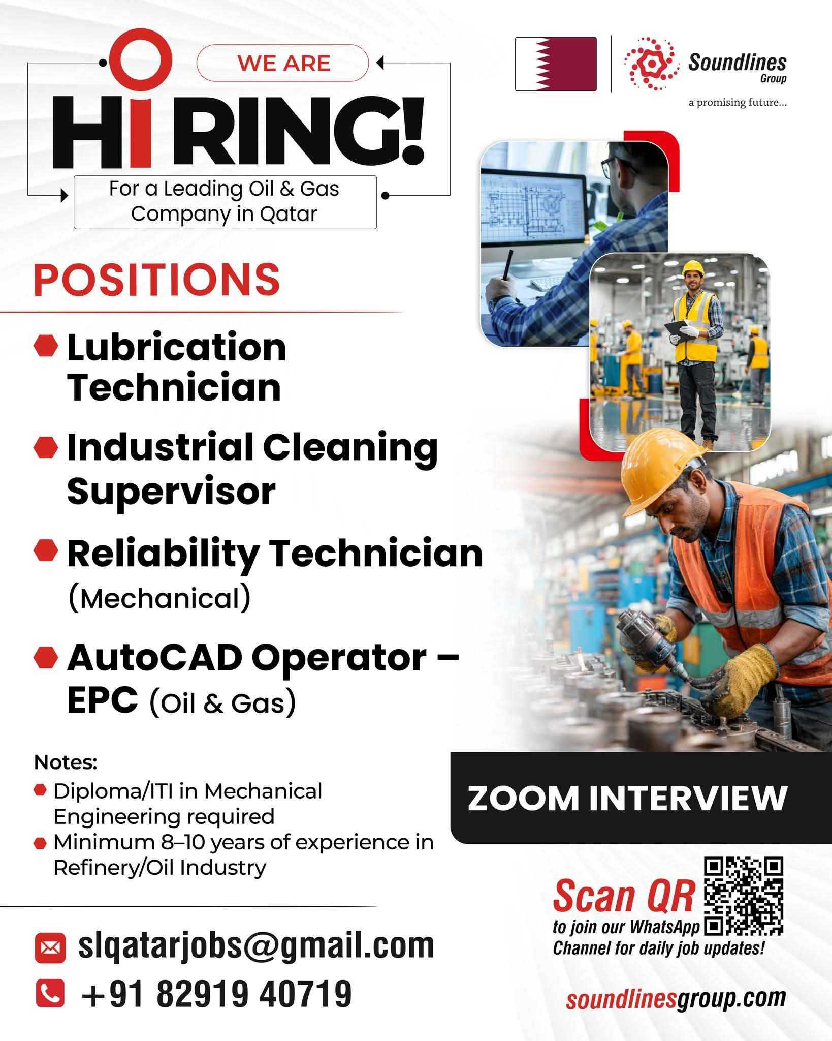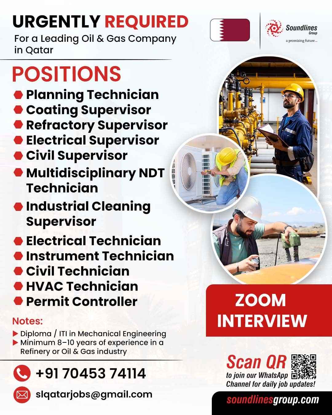 URGENT REQUIREMENT Soundlines Group a promising future... For a Leading Oil & Gas Company in Qatar