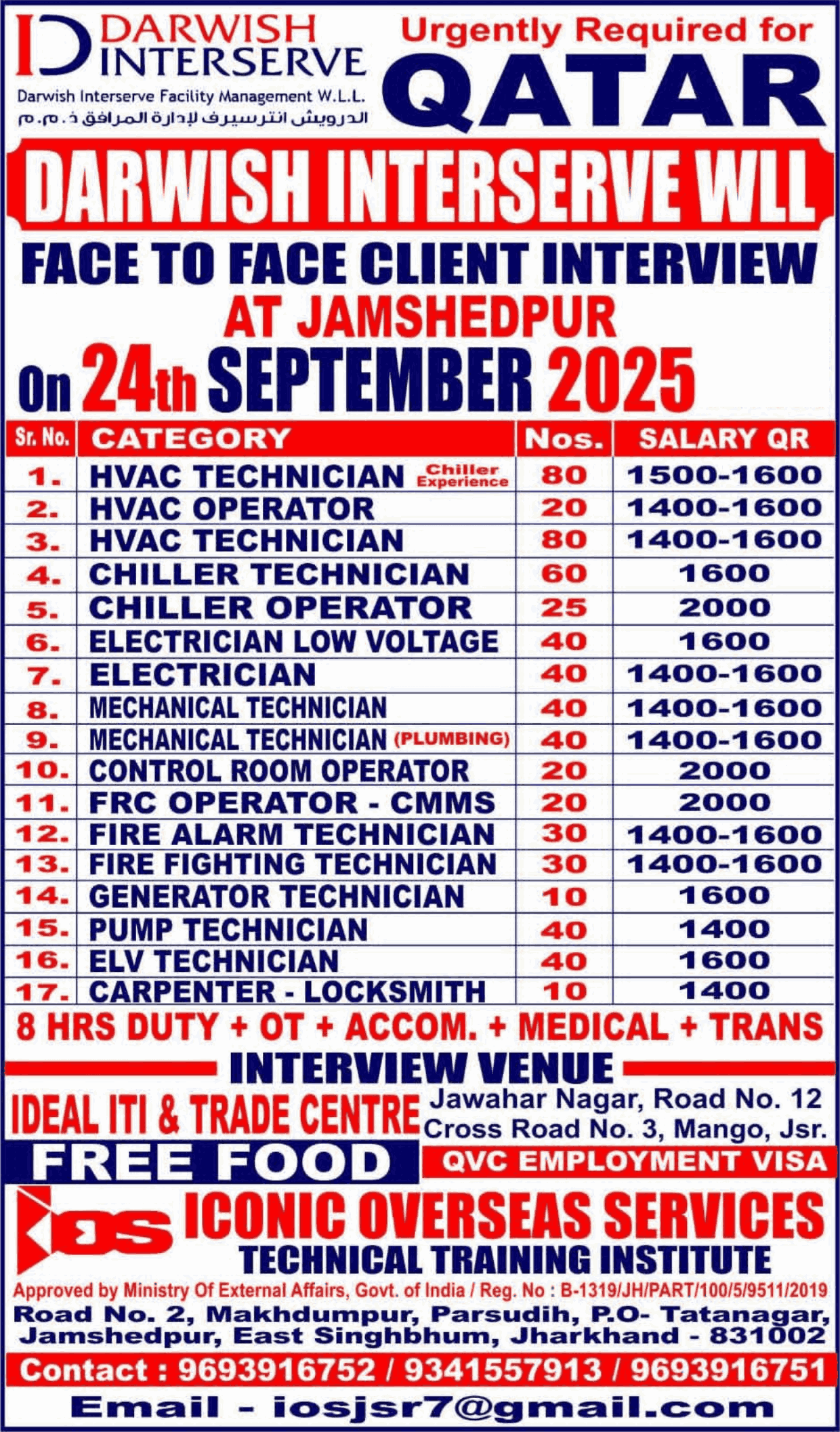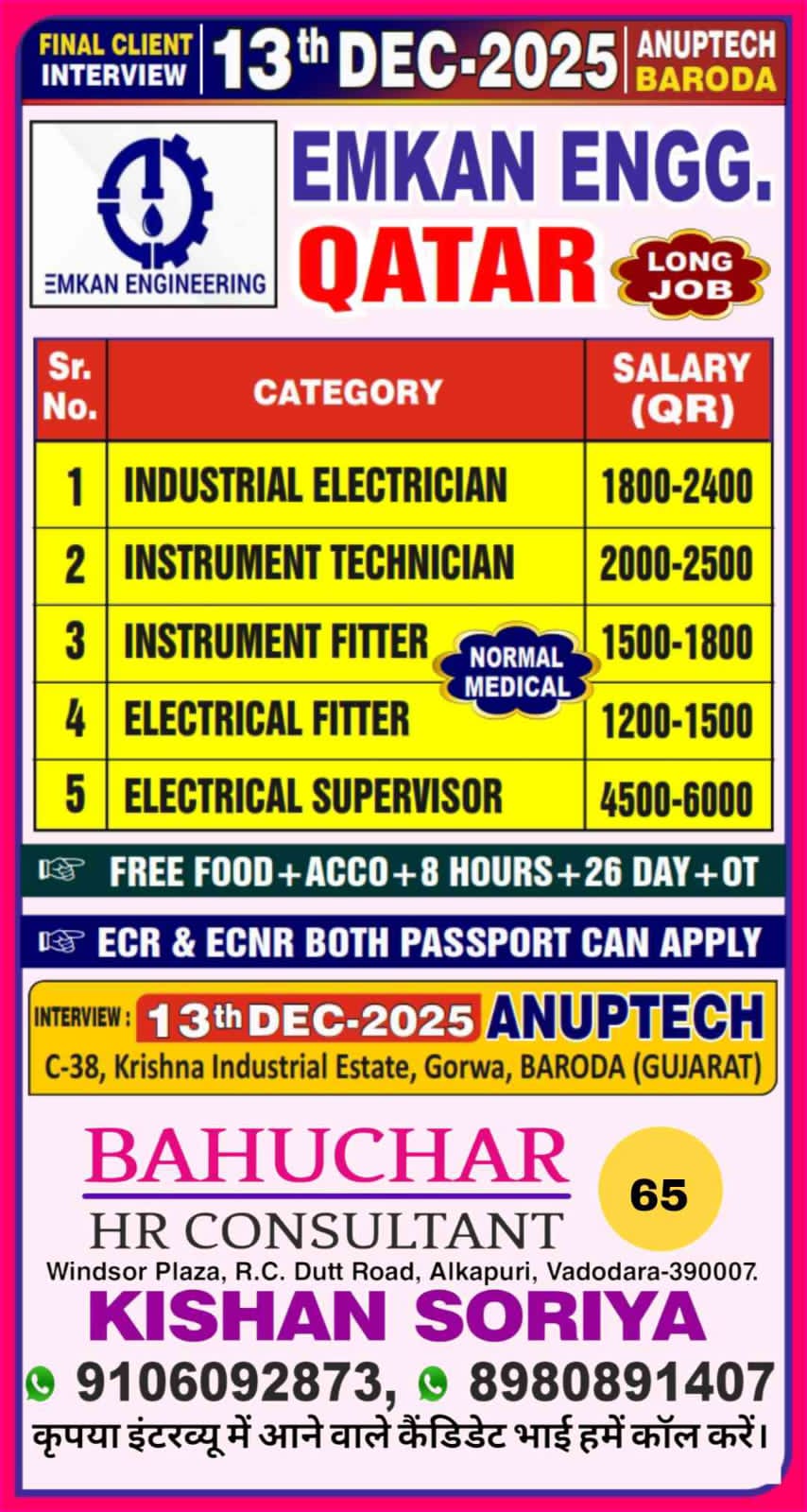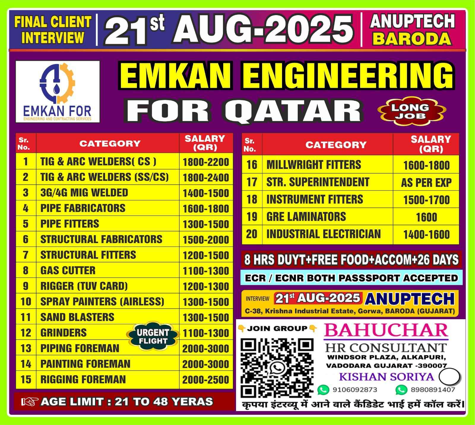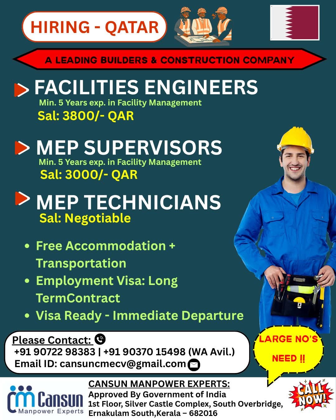 URGENT REQUIREMENT FOR EMKAN ENGG QATAR